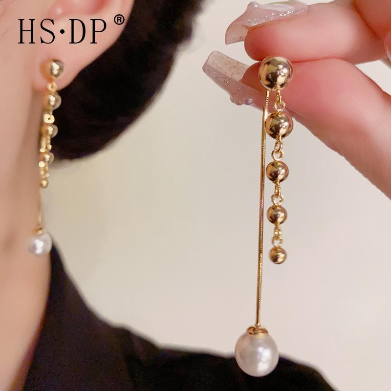 Pendientes franceses retro de perlas, un par de pendientes largos con borlas, elegantes, a la moda, suaves, comodín, con pasador plateado, venta al por mayor
