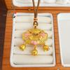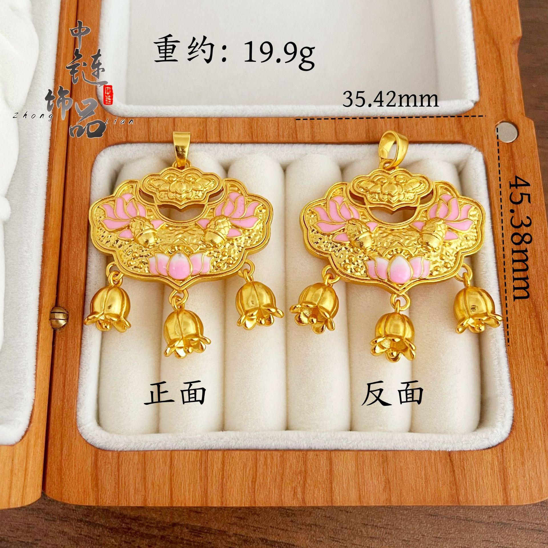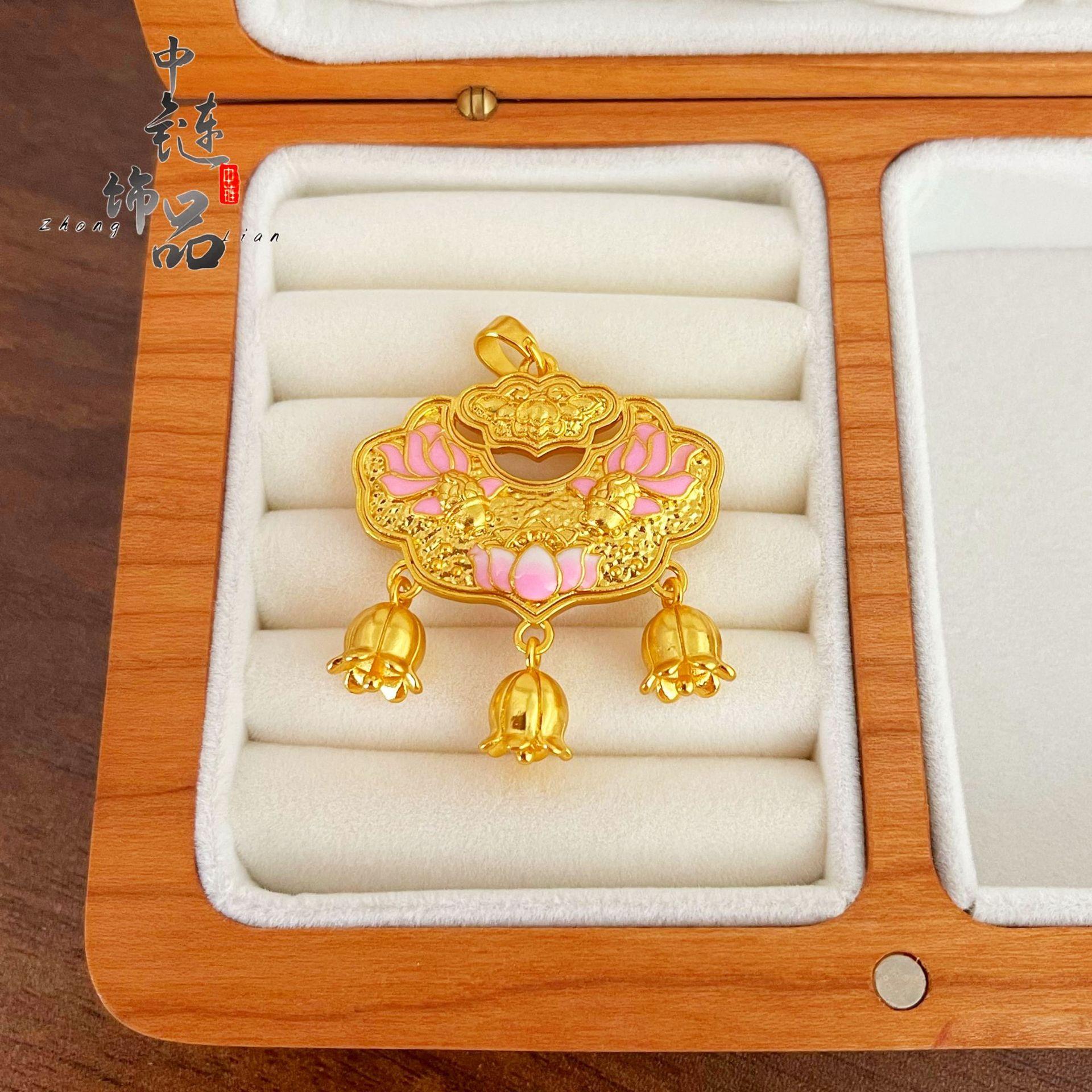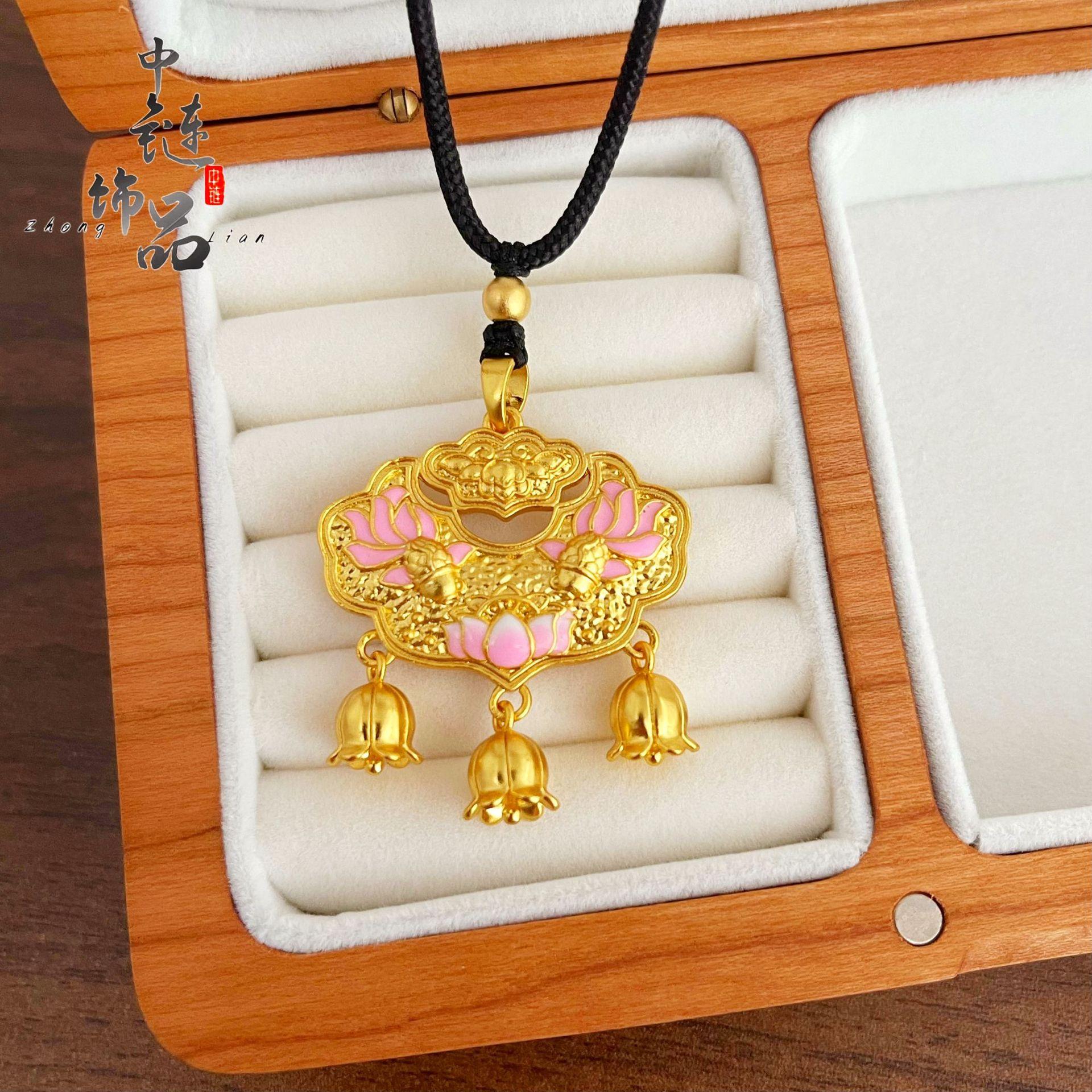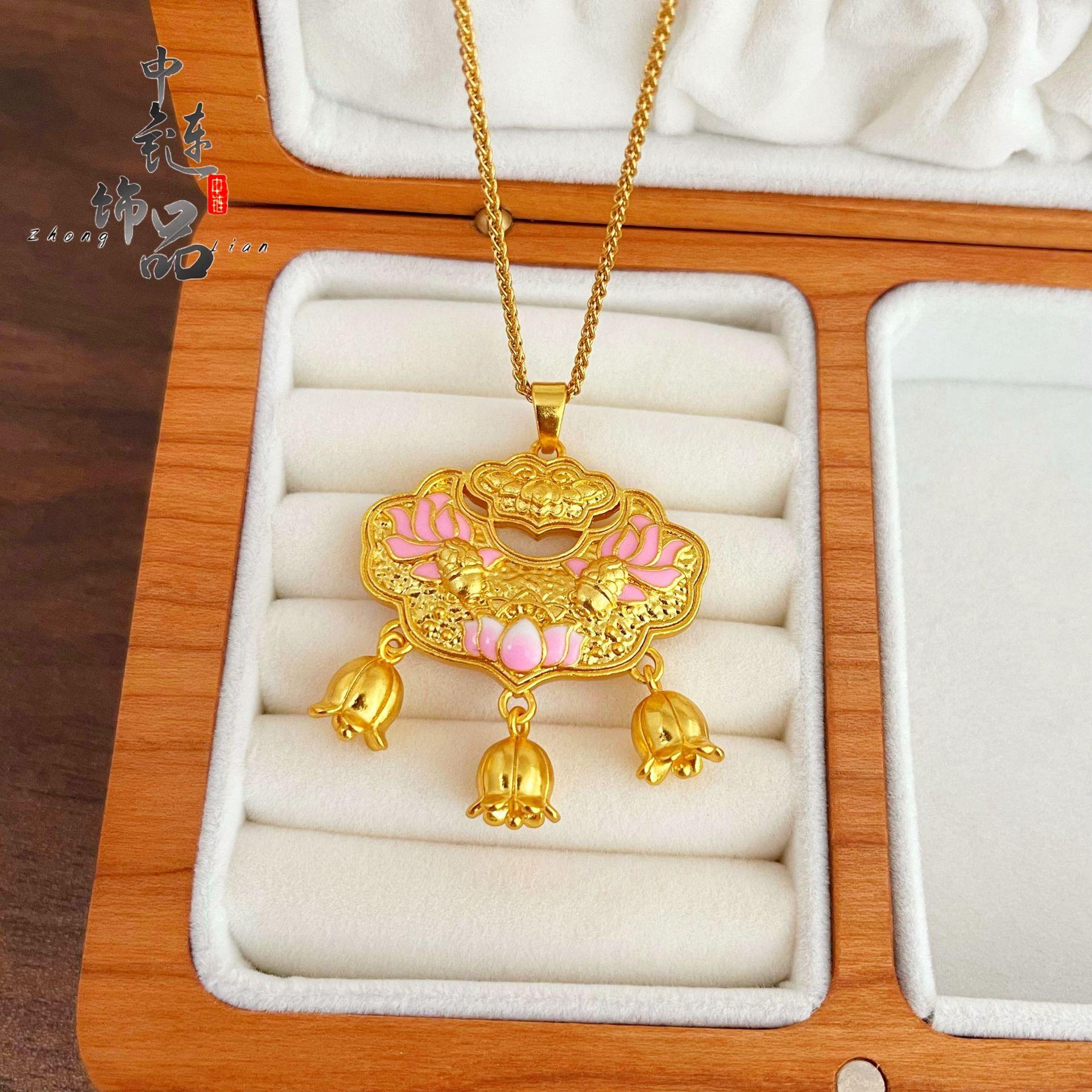 Tienda de oro con colgante antiguo de esmalte dorado, lirio rosa lirio rosa Piscis, candado de loto, colgante candado de lirio