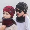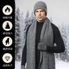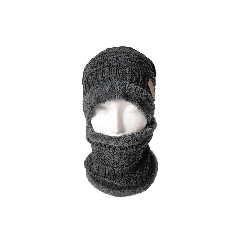Gray hat + scarf, Black hat + scarf, Blue hat + scarf