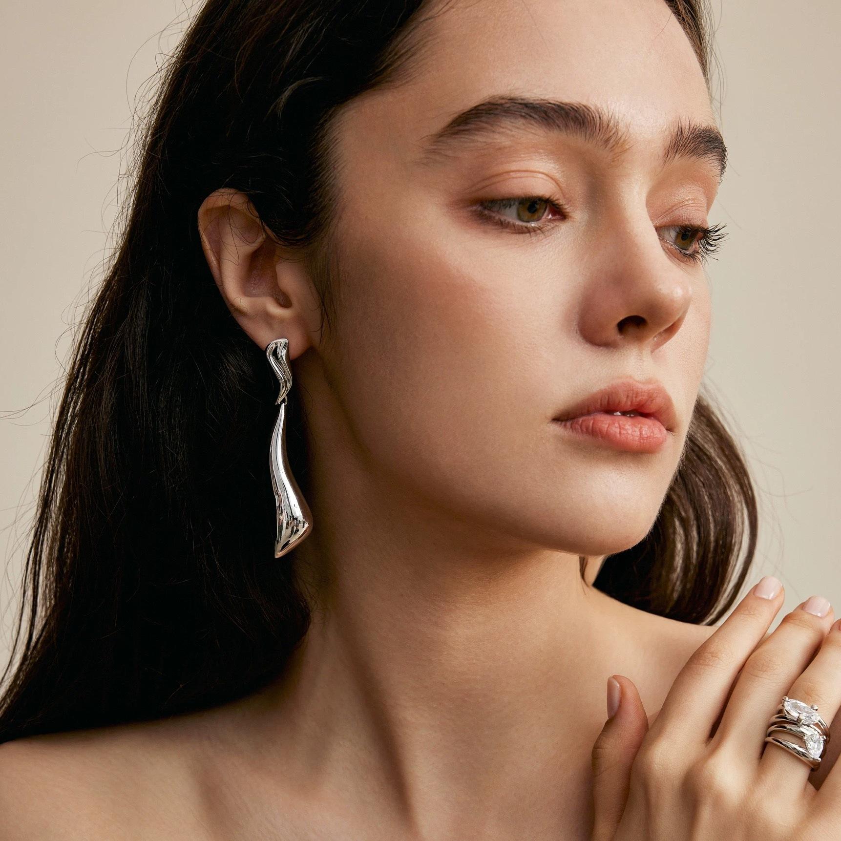 Pendientes largos con borlas irregulares, pendientes de diseño de nicho para mujer, pendientes sencillos de alta gama para uso diario y de moda.