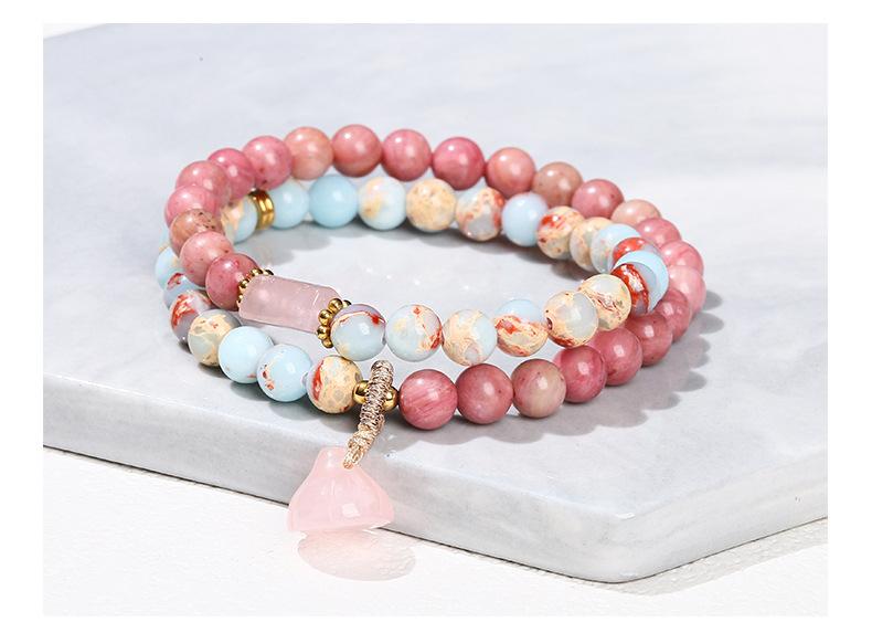 Compra Pulsera de doble círculo con piedra Shoushan de piedra roja natural de Jingde Jewelry, diseño de nicho para mujer, pulsera con colgante de loto, venta al por mayor al por mayor en Joom.pro