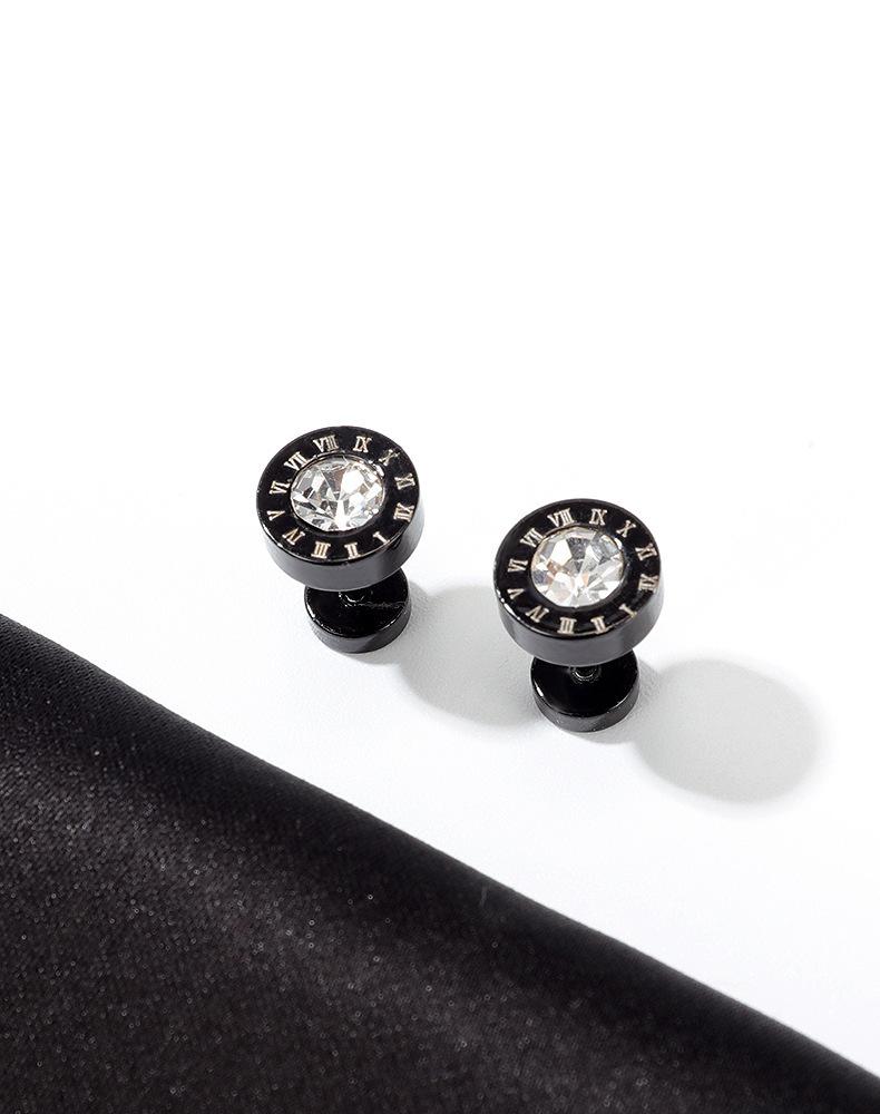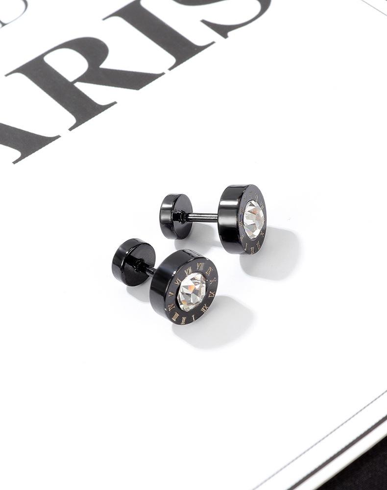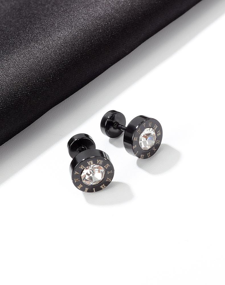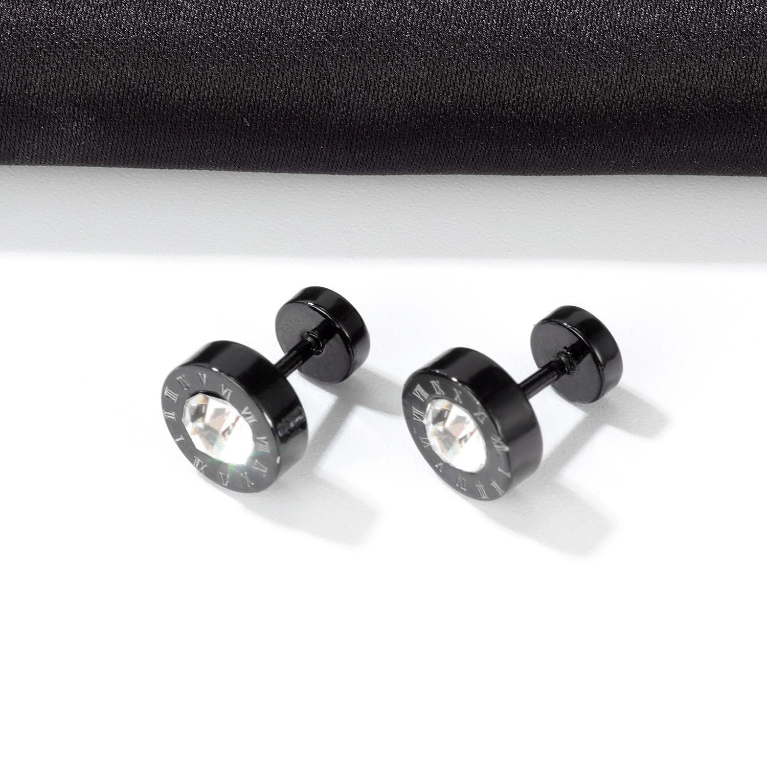 Aretes de Hombre Transfronterizos Estilo Punk Distintivos Aretes de Acero de Titanio Negro Hip-hop de Alta Gama Modernos Aretes de Números Romanos para Hombre