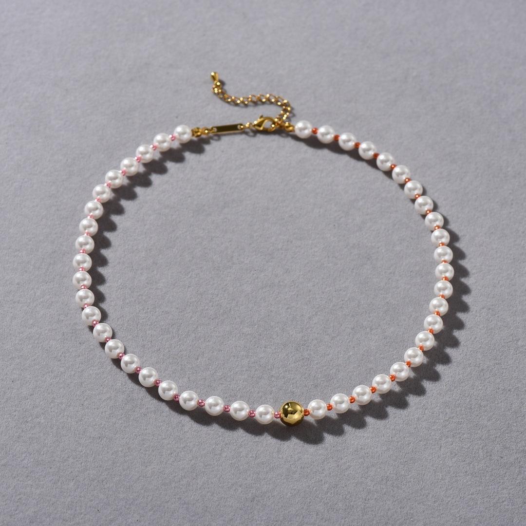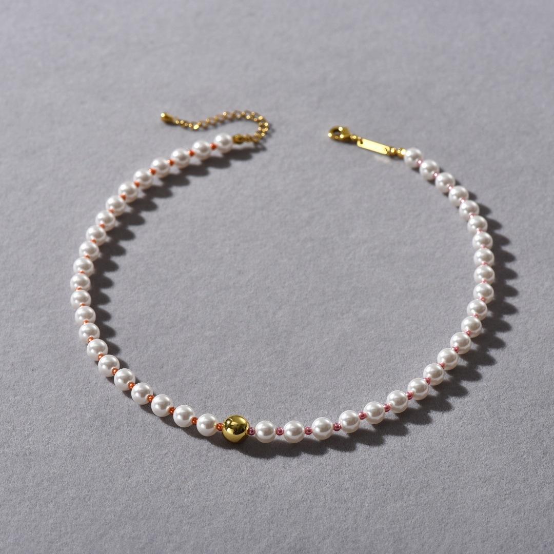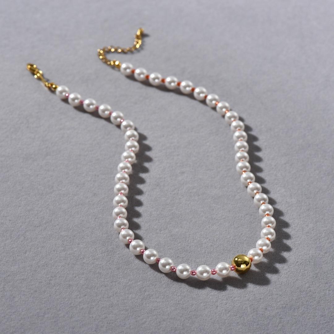 Compra Colgante de oro auténtico de 18 quilates bañado en cobre de alta calidad, estilo retro, ligero, de lujo, con perla blanca en polvo, cadena de clavícula, elegante collar europeo y americano. al por mayor en Joom.pro