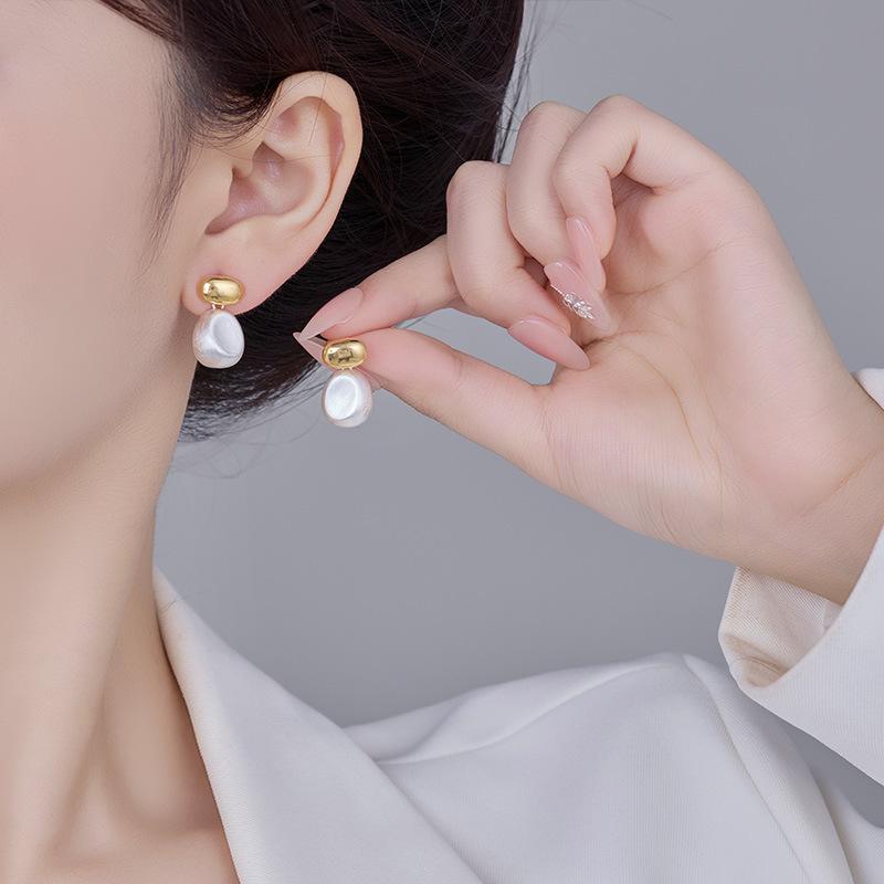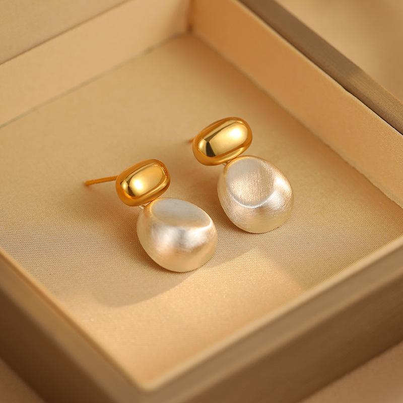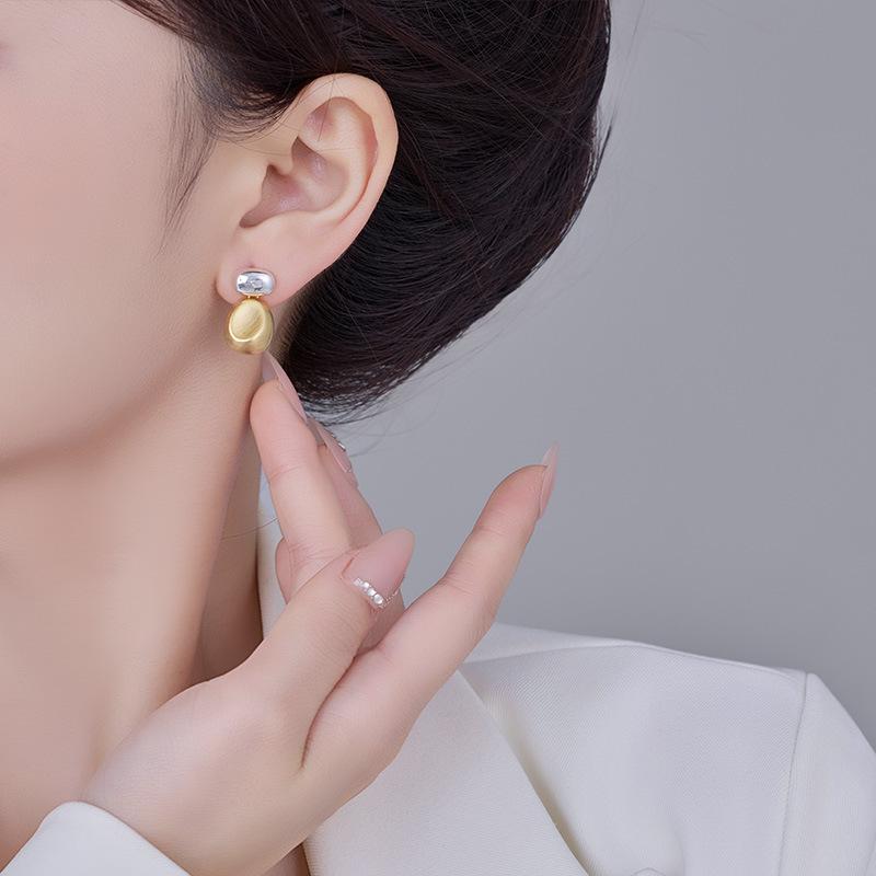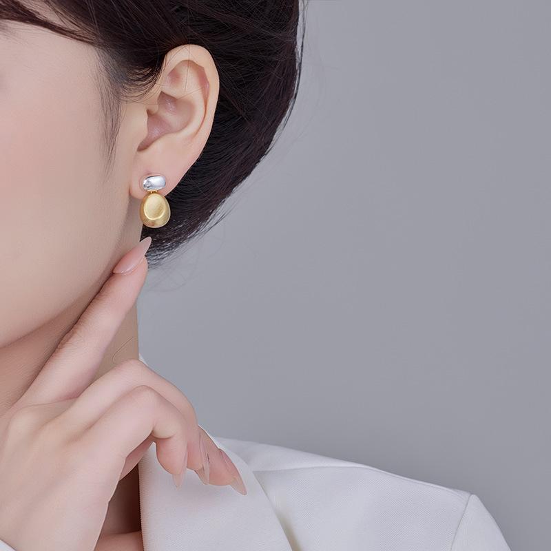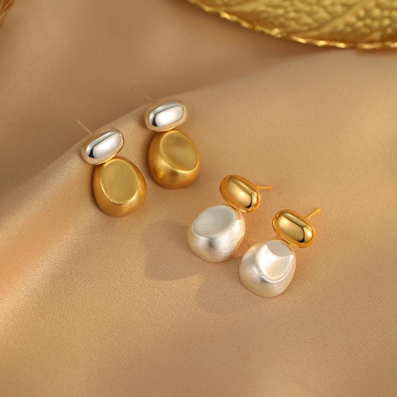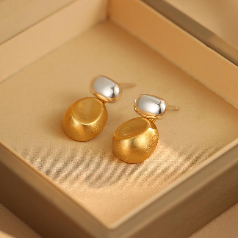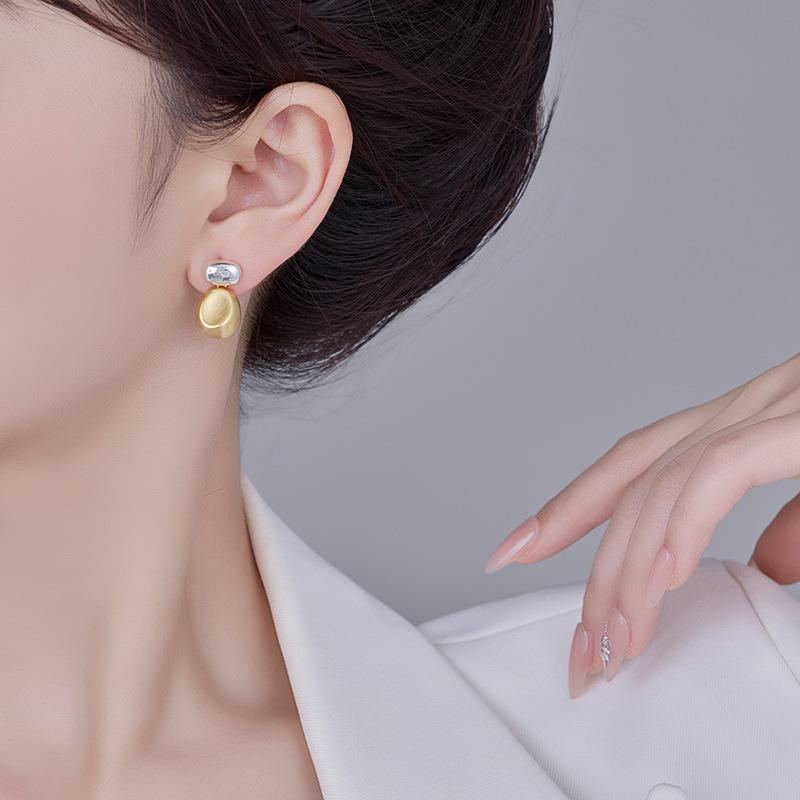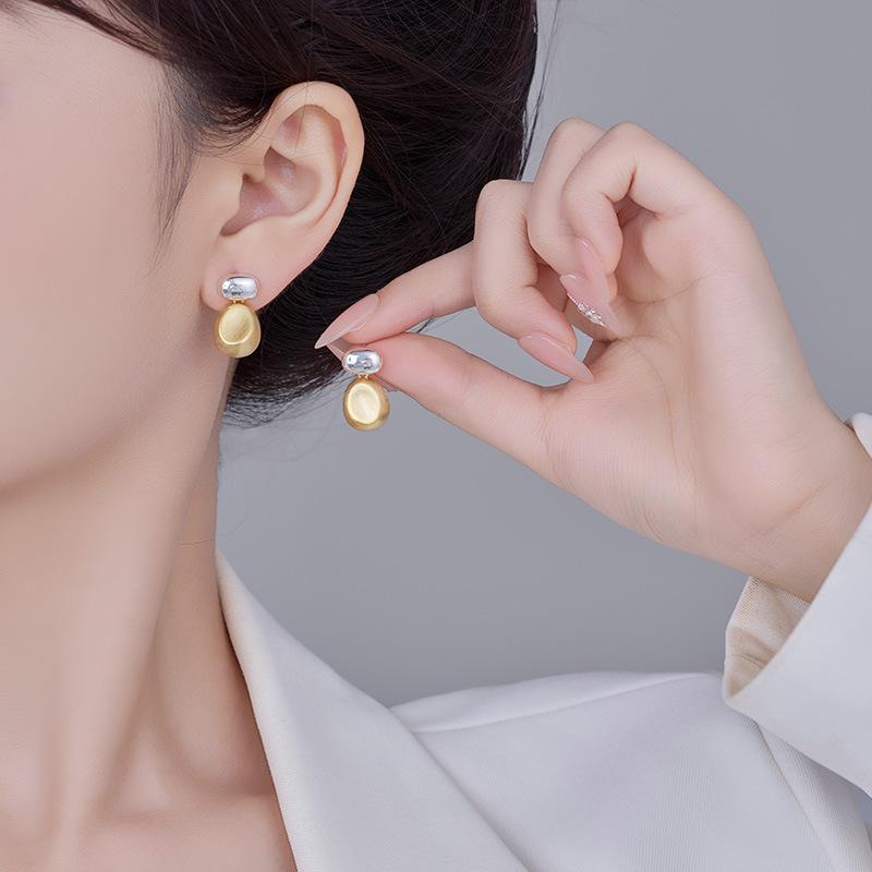 Pendientes de lujo ligeros de alta gama con un toque de color dorado y plateado cepillado con alambre, elegantes y con personalidad, nuevos pendientes de estilo frío.