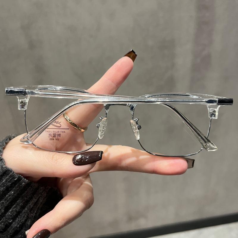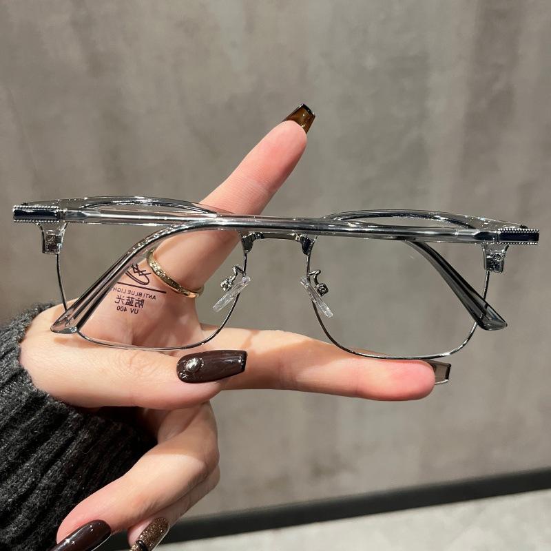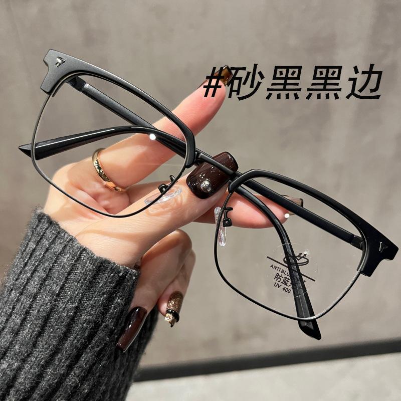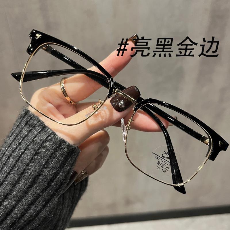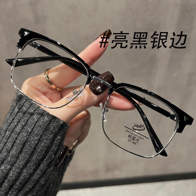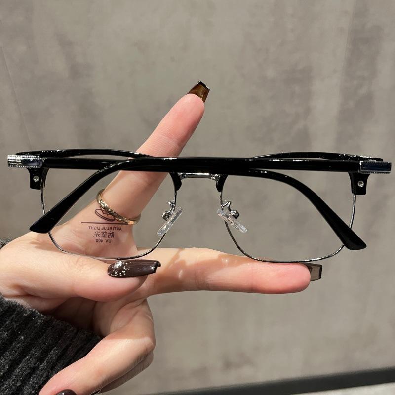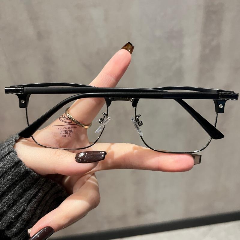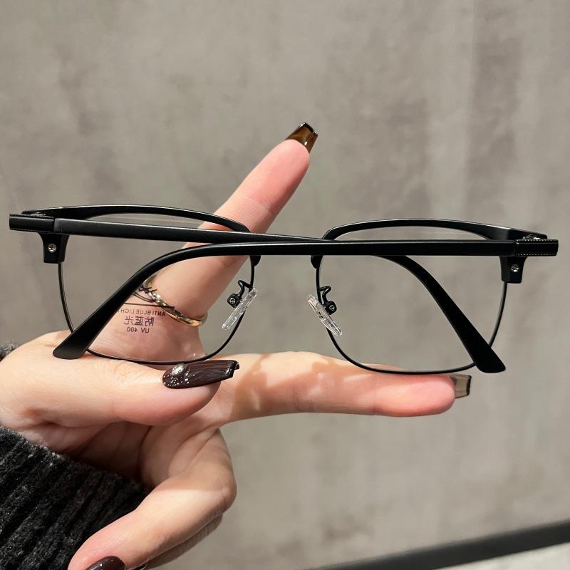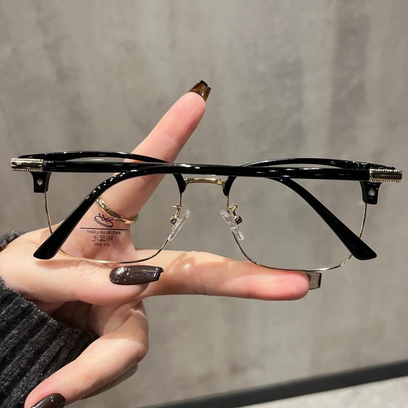 Montura de Gafas Ultraligera Tr90 Media Montura para Mujer Gafas Planas Pueden Equiparse con Miopía con Receta para Hombre Moderno Negocios Retro Luz Azul Antireflejo Ojos