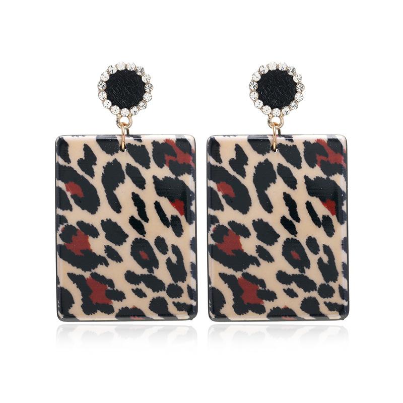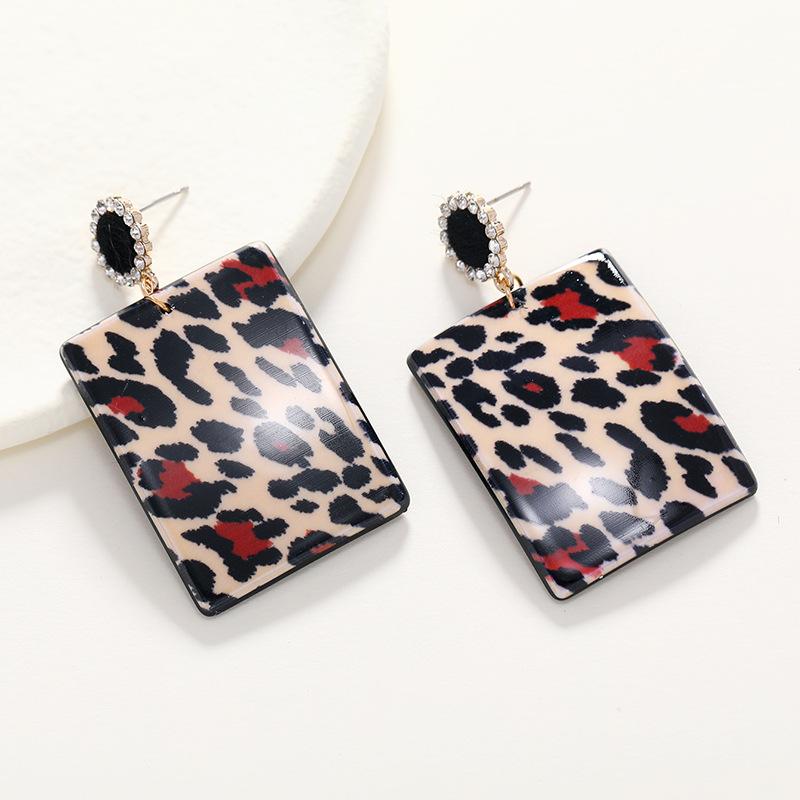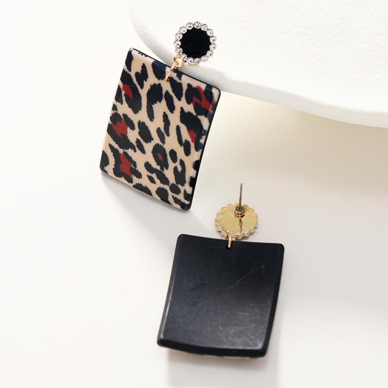 Aretes acrílicos rectangulares con diseño creativo personalizado de estampado de leopardo, moda simple japonesa y coreana, aretes nuevos elegantes y modernos