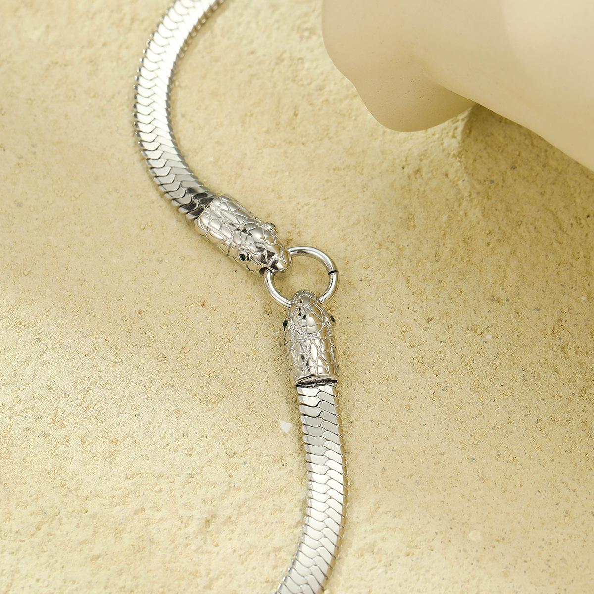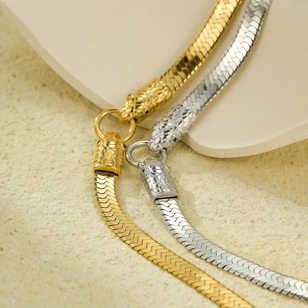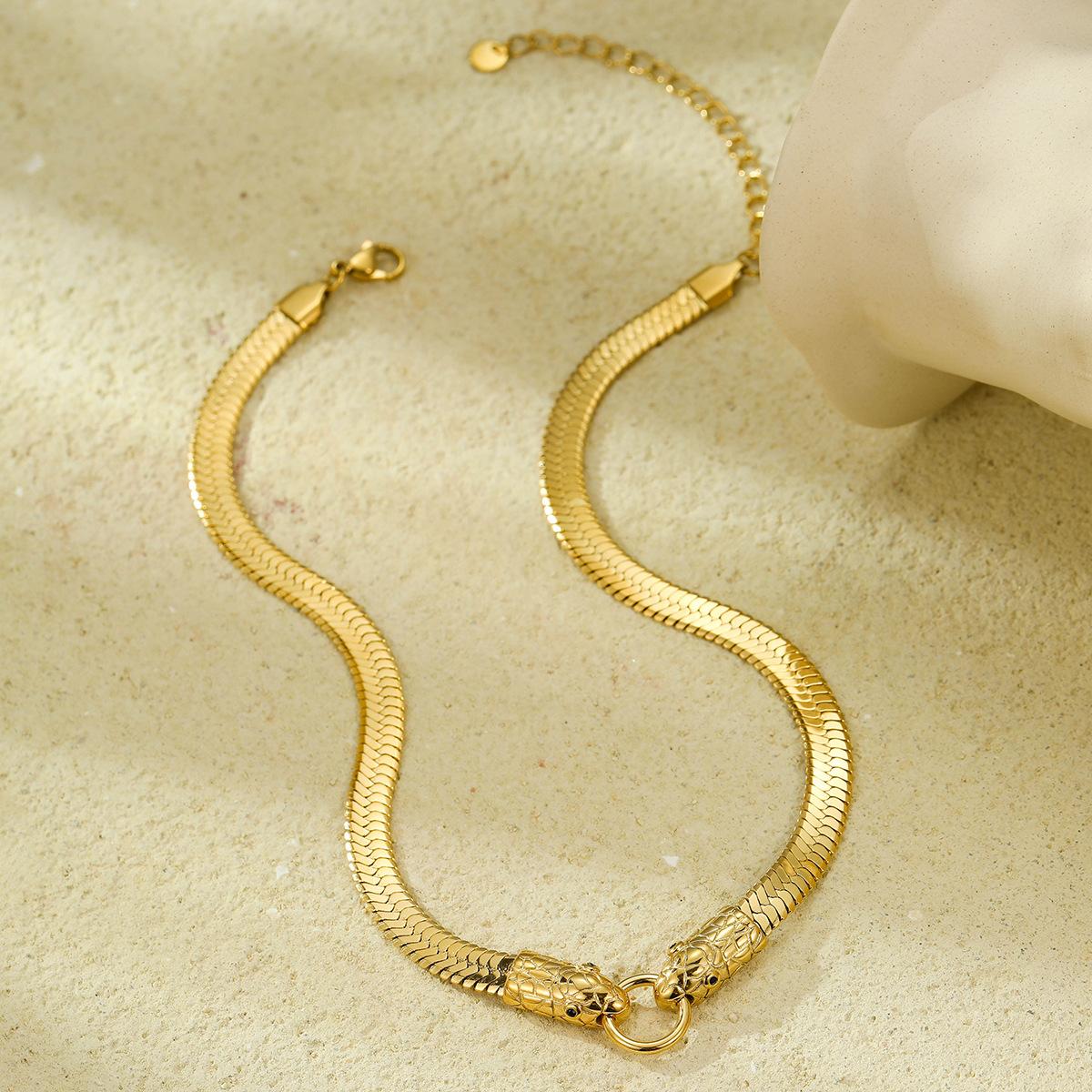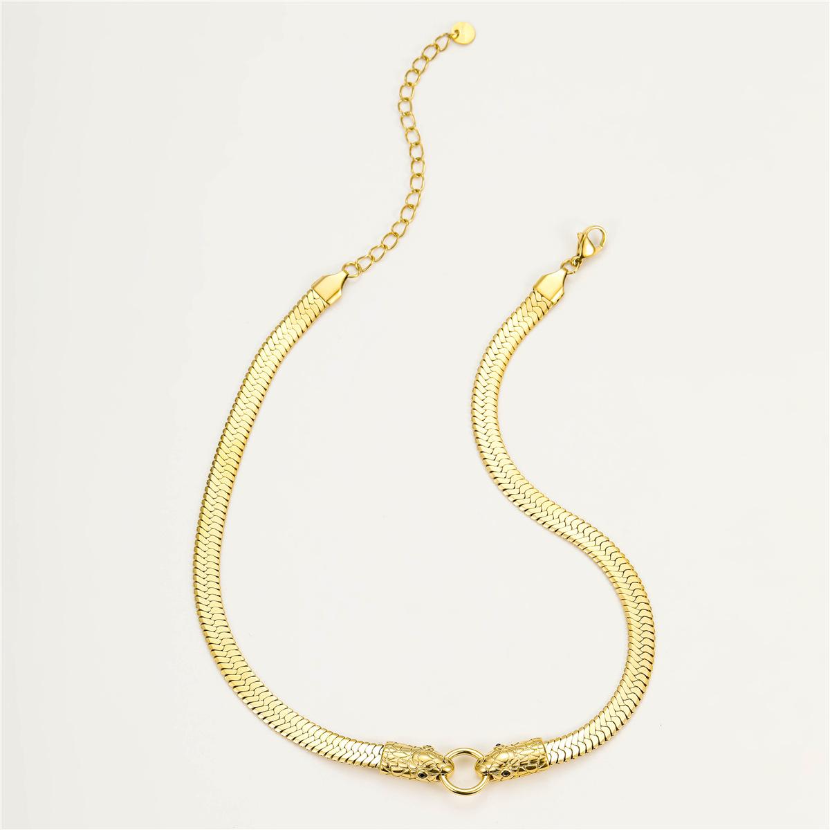 Collar de Clavícula Europeo y Americano Ins Nicho de Acero Inoxidable de Alta Gama con Cadena de Serpiente Plana con Forma de Serpiente Metal Estilo Frío Oro de 18K