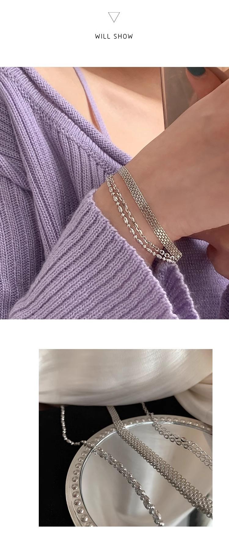 Nuevo Estilo Simple Cadena Simple Pulsera de Novia Estilo Ins Diseño Nicho Nicho Retro Apilada Plateada Pulsera de Cara Ancha