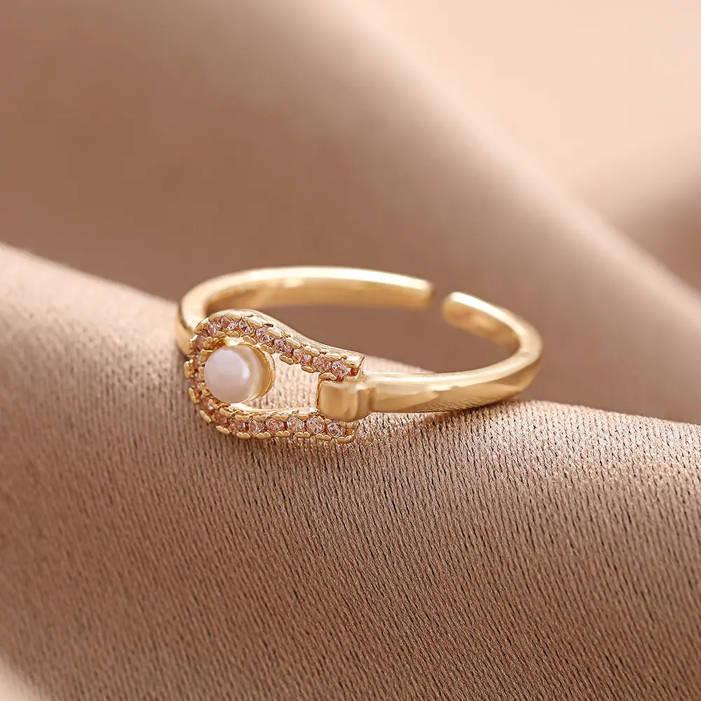 Moda Elegante Imitación Perla Incrustada Zircón Anillo de Dedo Estilo Ins Anillo Abierto Anillo Lujo Ligero Regalos para Novia