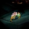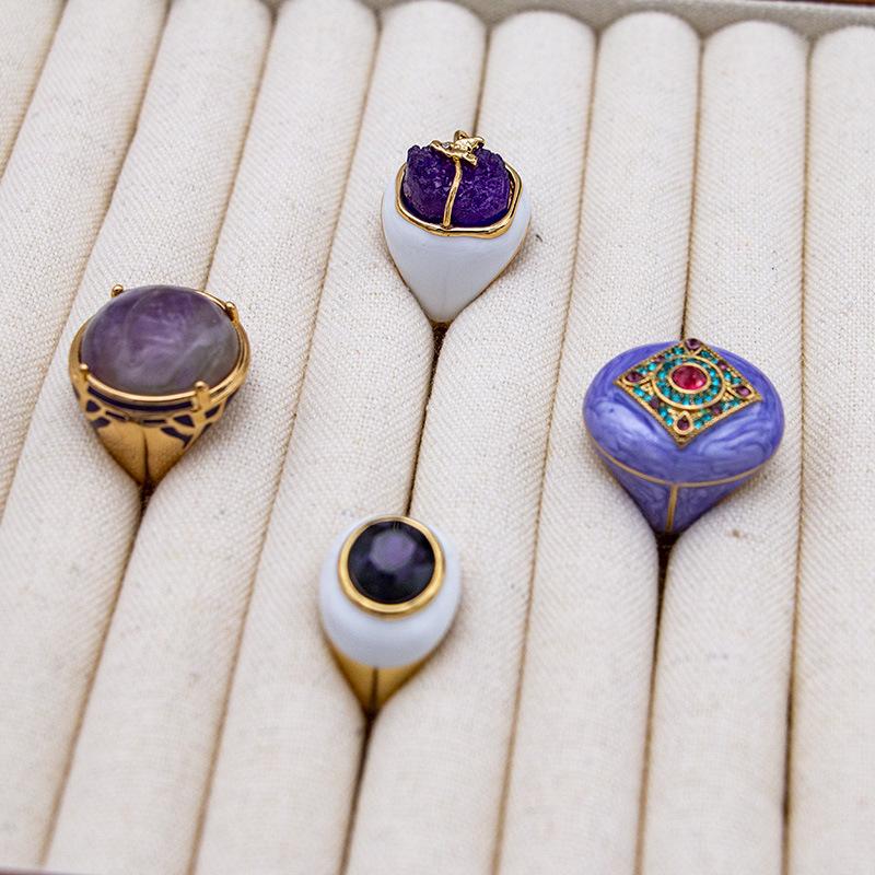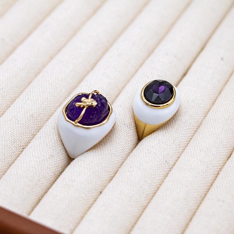 Anillo de circonita chapado en oro con esmalte de nicho, estilo retro de alta gama, de estilo antiguo medio, para otoño e invierno, de nueva variedad, para mujer.