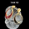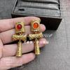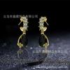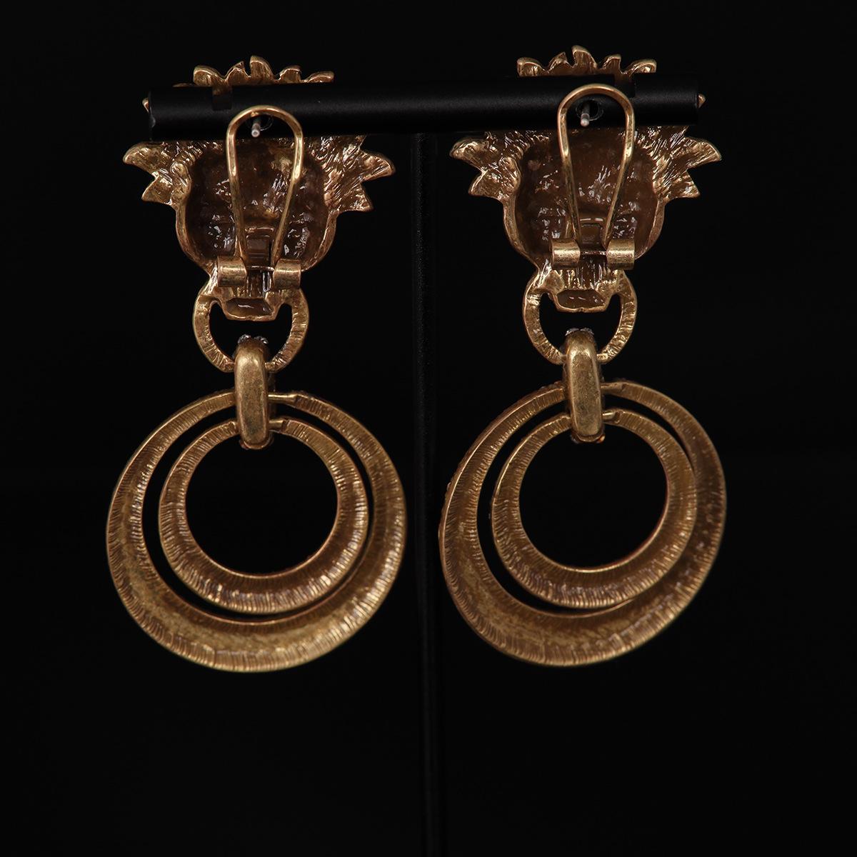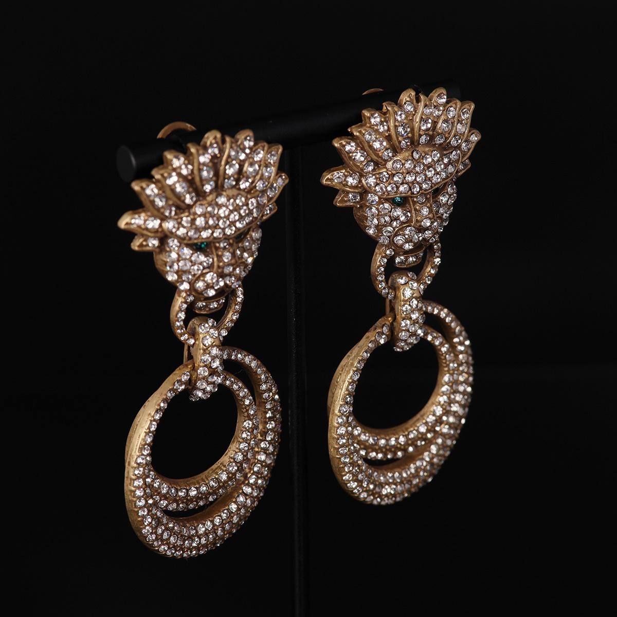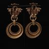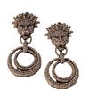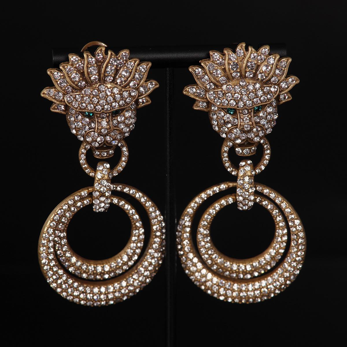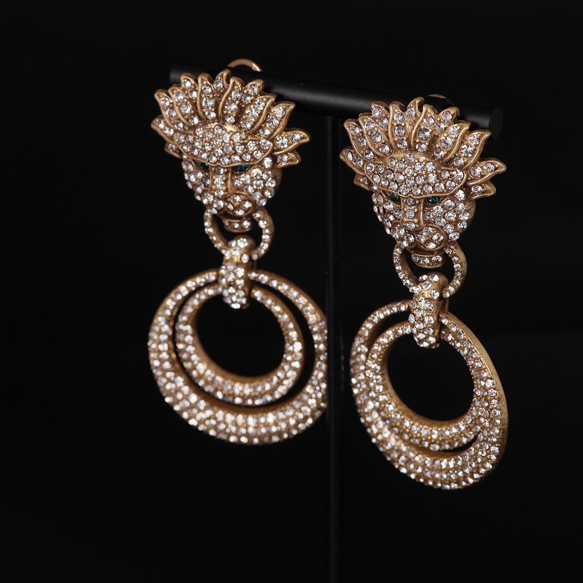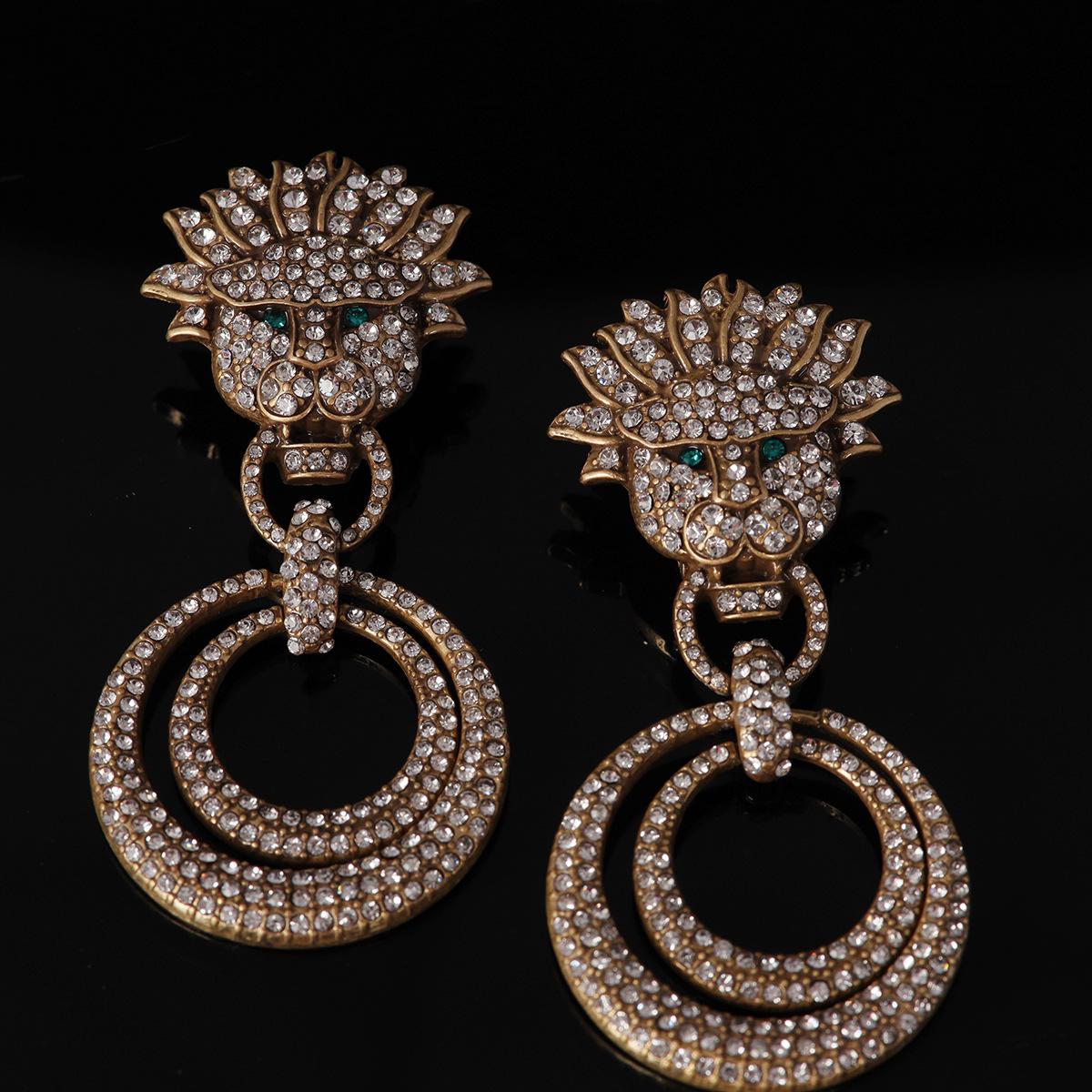 Pendientes de Aro con Cabeza de León de Diamante, Estilo Europeo Occidental y Americano Antiguo Medieval, Sensación de Alta Gama, Chapado en Cobre, Oro Viejo