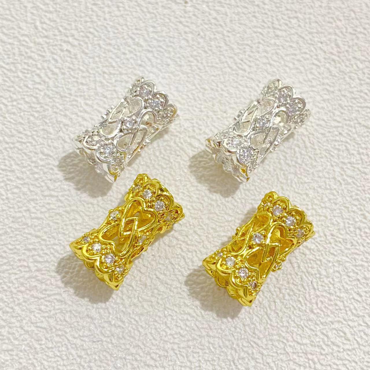 Cuentas de cubo de circonita con incrustaciones de plata y oro de 18 quilates bañadas en cobre de alto color, accesorios para pulseras y collares.
