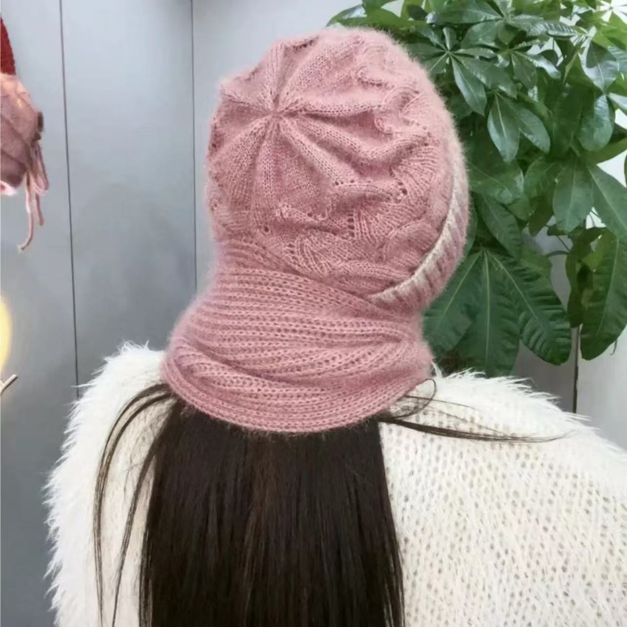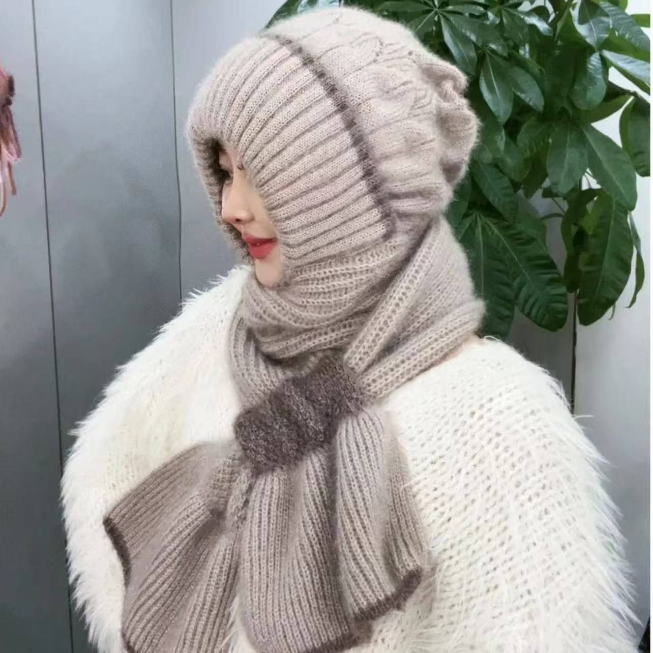 Sombrero para Mujer Nuevo Forrado de Felpa Bufanda Engrosada Integrada Gorro de Nieve Otoño e Invierno Ciclismo Sombrero de Lana Cálido Sombrero Rojo de Internet