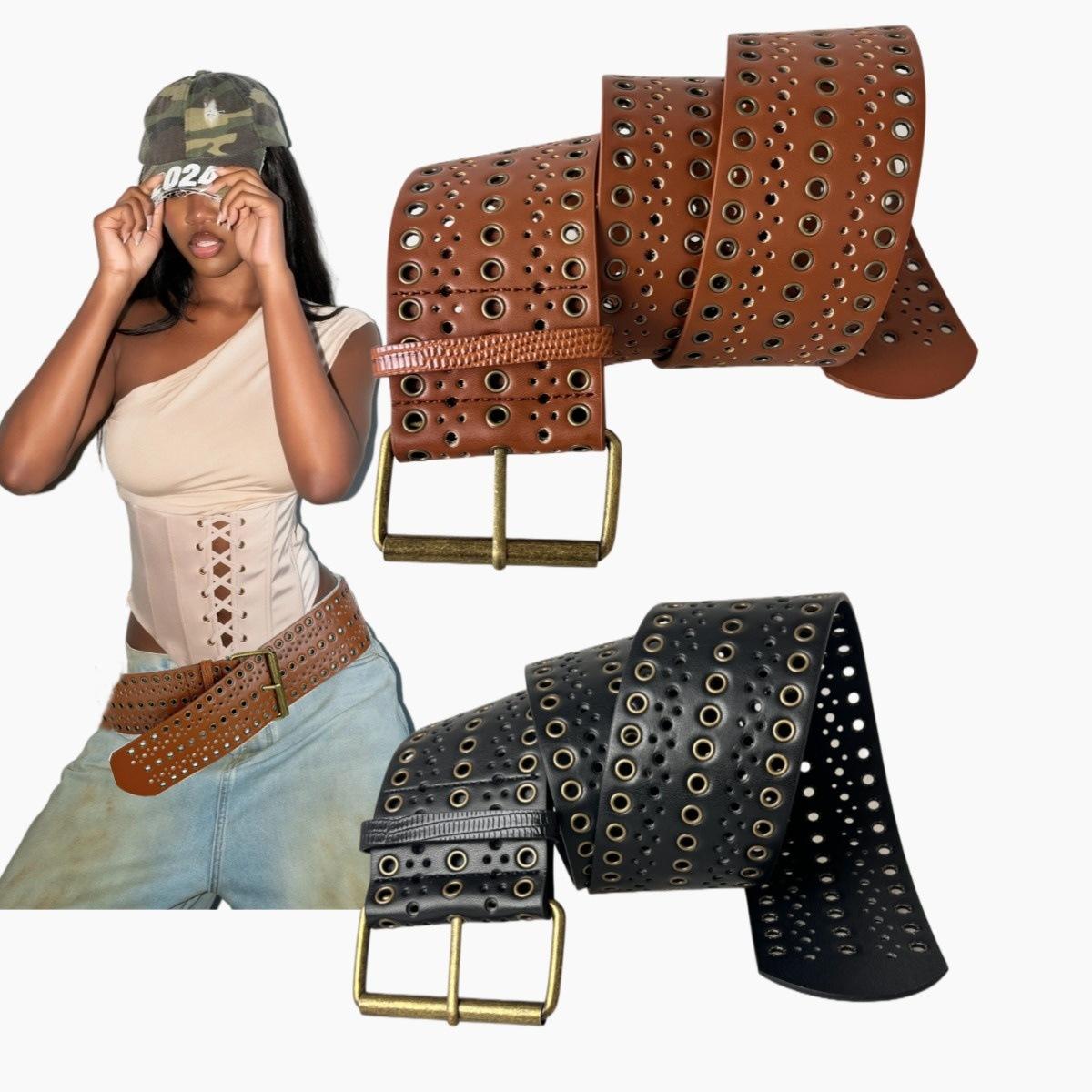 Black hollow air eye wide belt, Brown hollow air eye wide belt