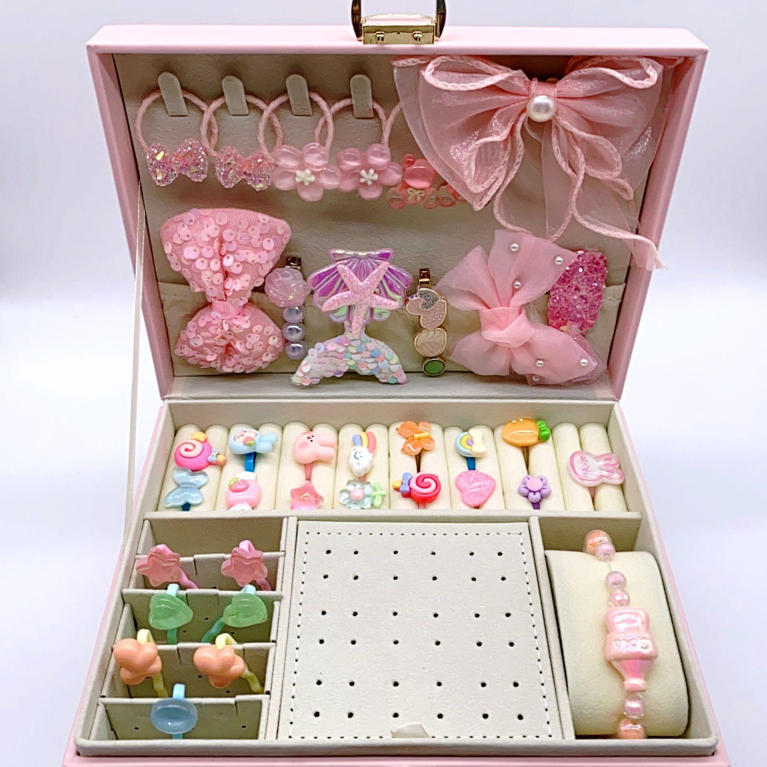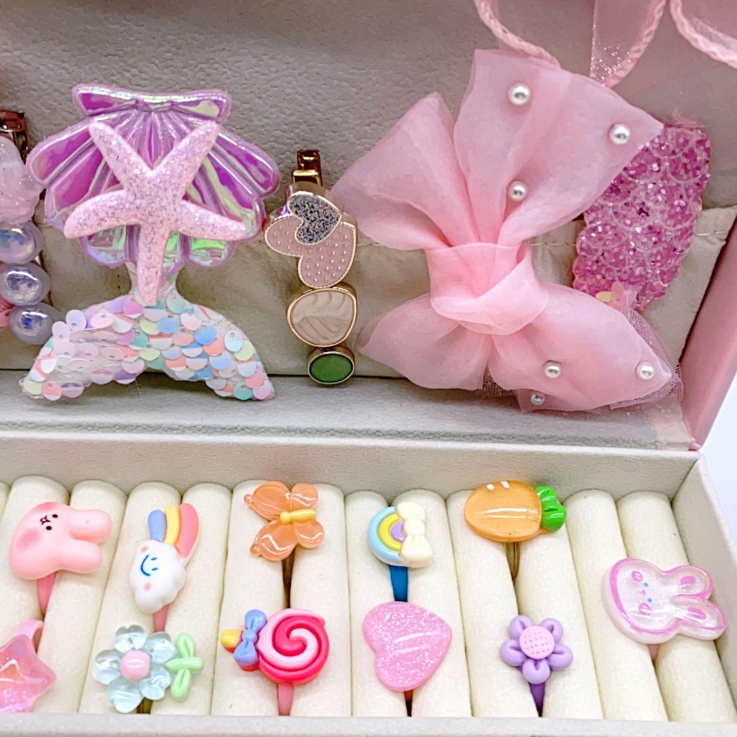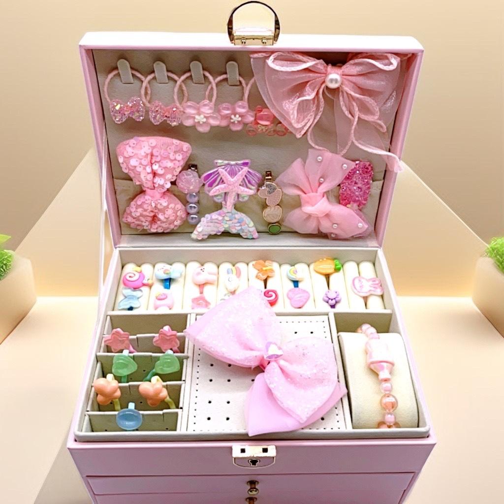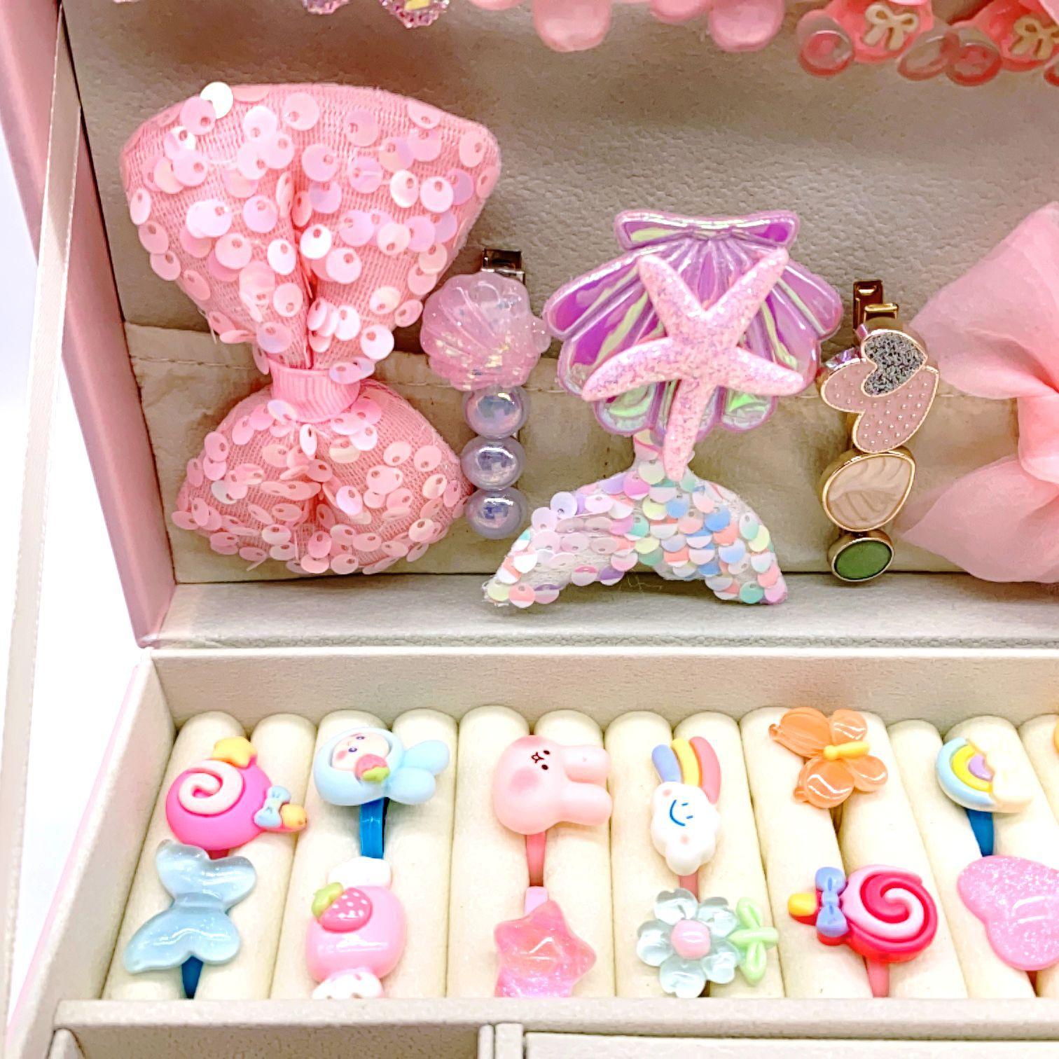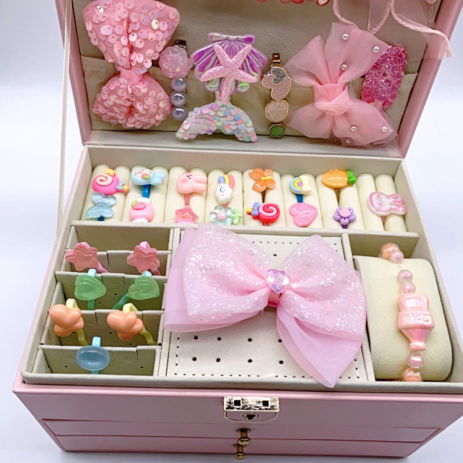 Set de Accesorios para el Cabello para Niñas Caja de Regalo Cumpleaños Diadema Pasador Banda Elástica Tocado Princesita Lindo Joyero Venta al por Mayor