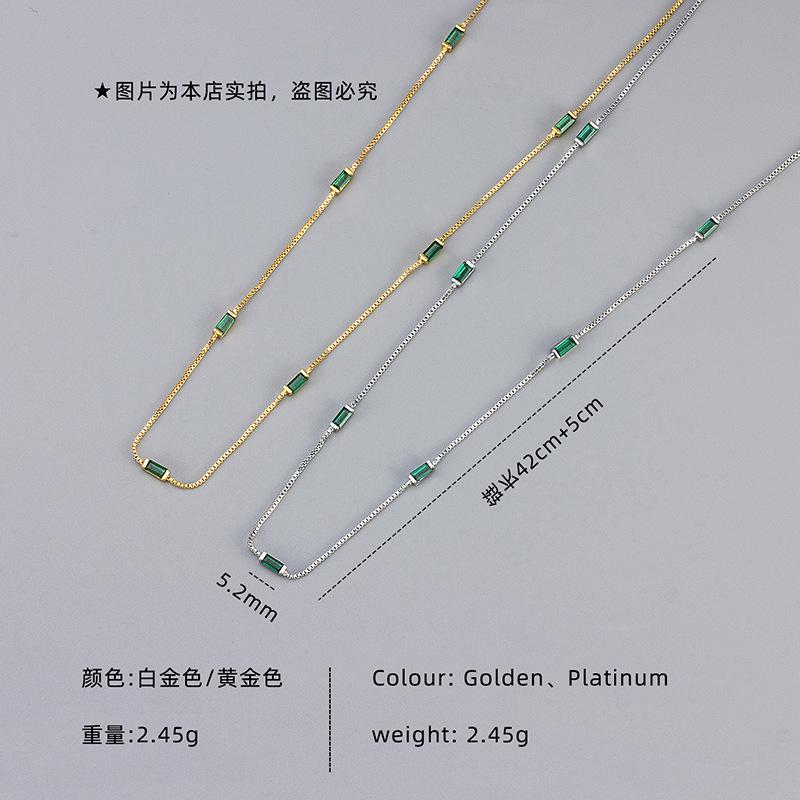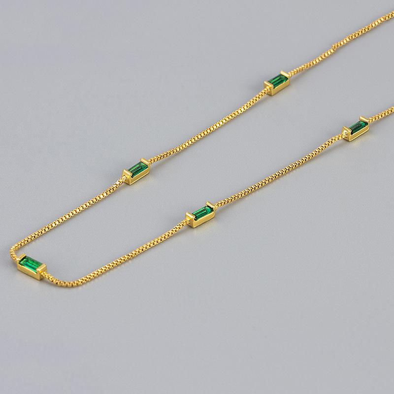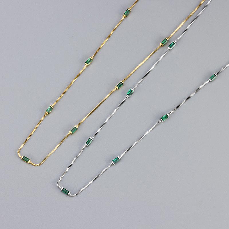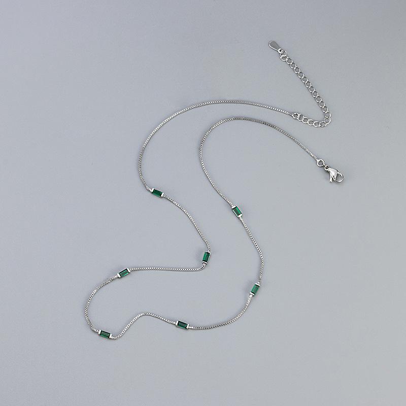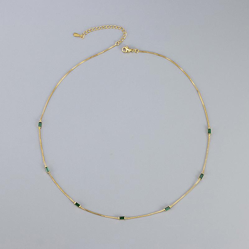 Collar de cadena fina y sencilla con circonitas esmeralda, estilo transfronterizo, ligero y lujoso, para clavícula, de alta gama, para mujer europea y americana.