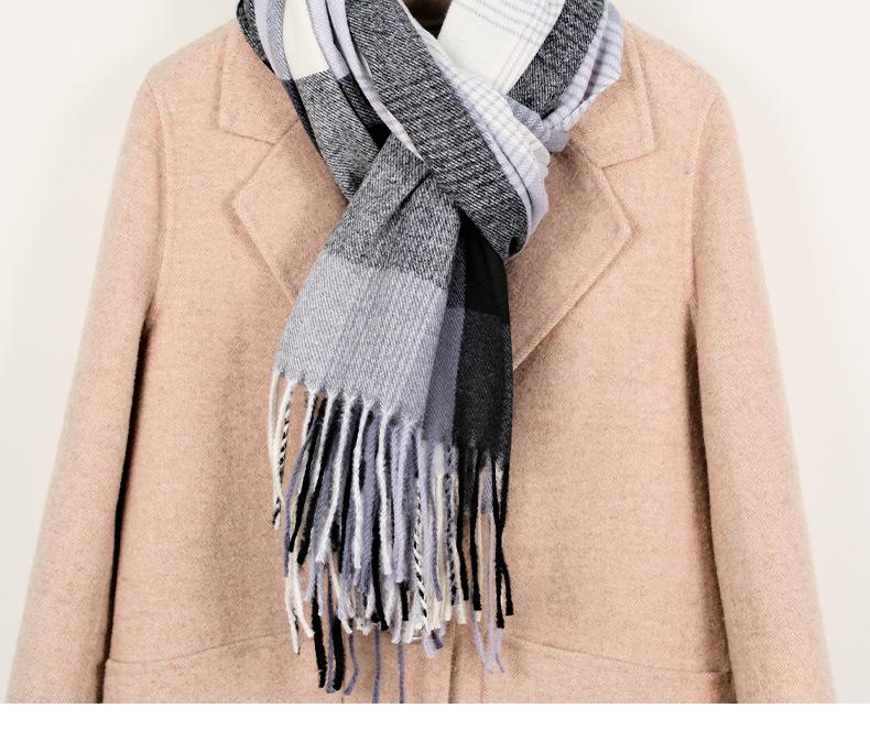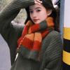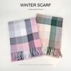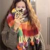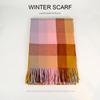 Otoño e Invierno Nuevo Bufanda de Cachemira a Cuadros de Color Contraste Arcoíris Ropa Exterior de Moda para Mujer Estilo Coreano Cálida Bufanda con Borlas Chal