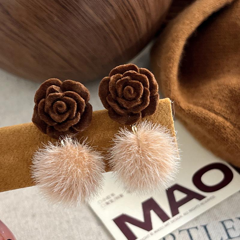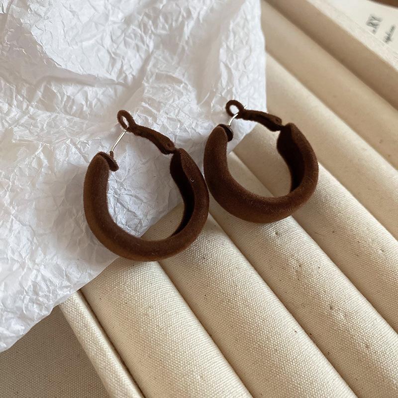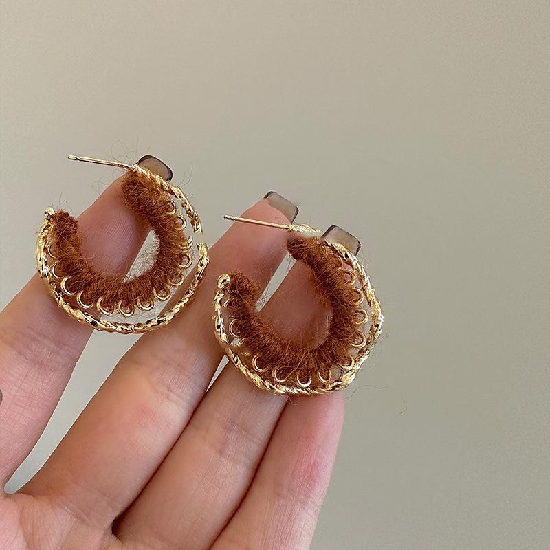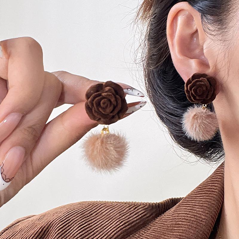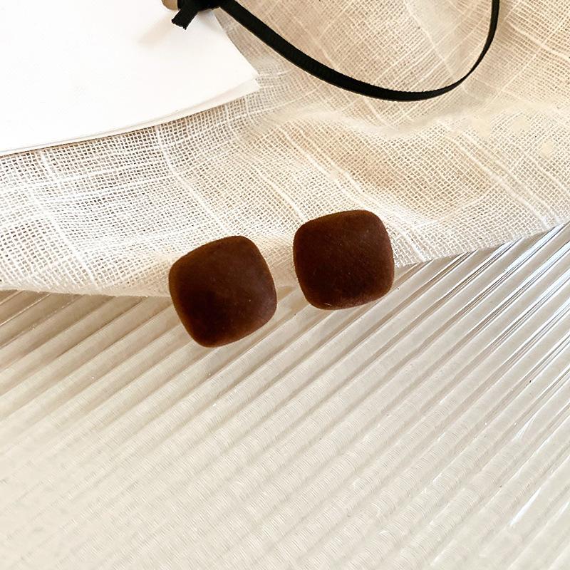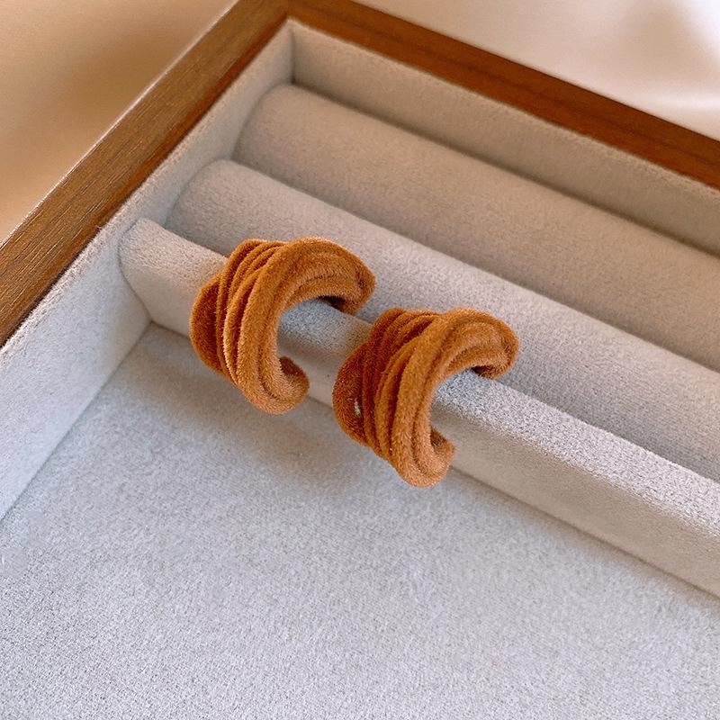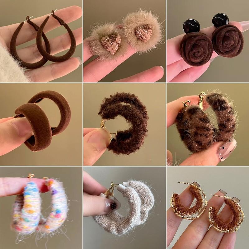 Pendientes coreanos de lana marrón con personalidad retro, pendientes de Joker dulces, temperamento ligero, pendientes de lujo de alta calidad, venta al por mayor