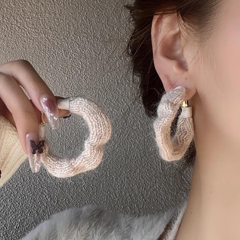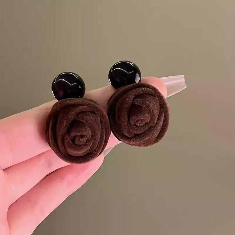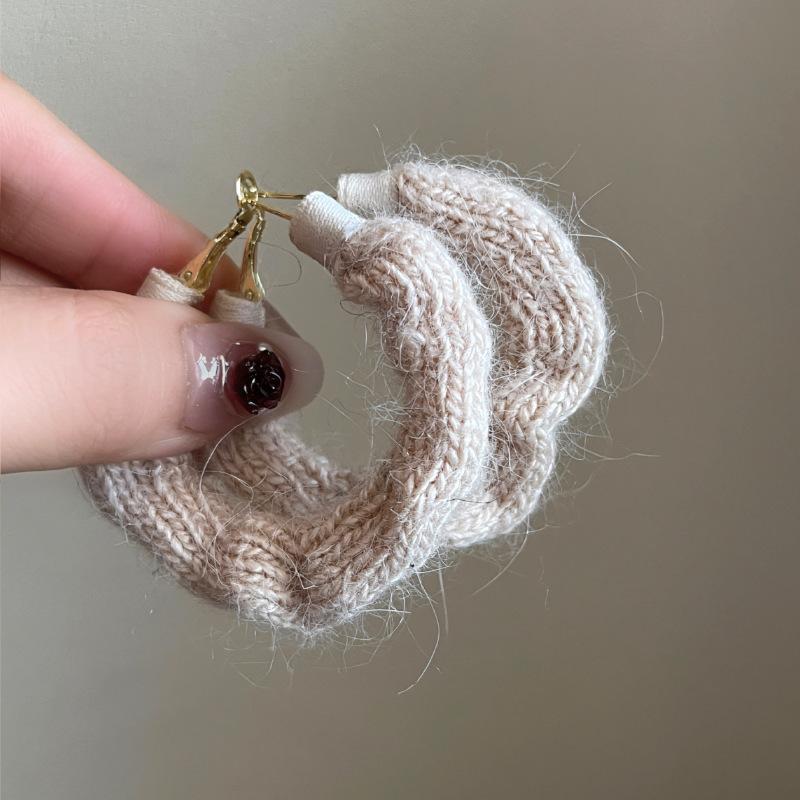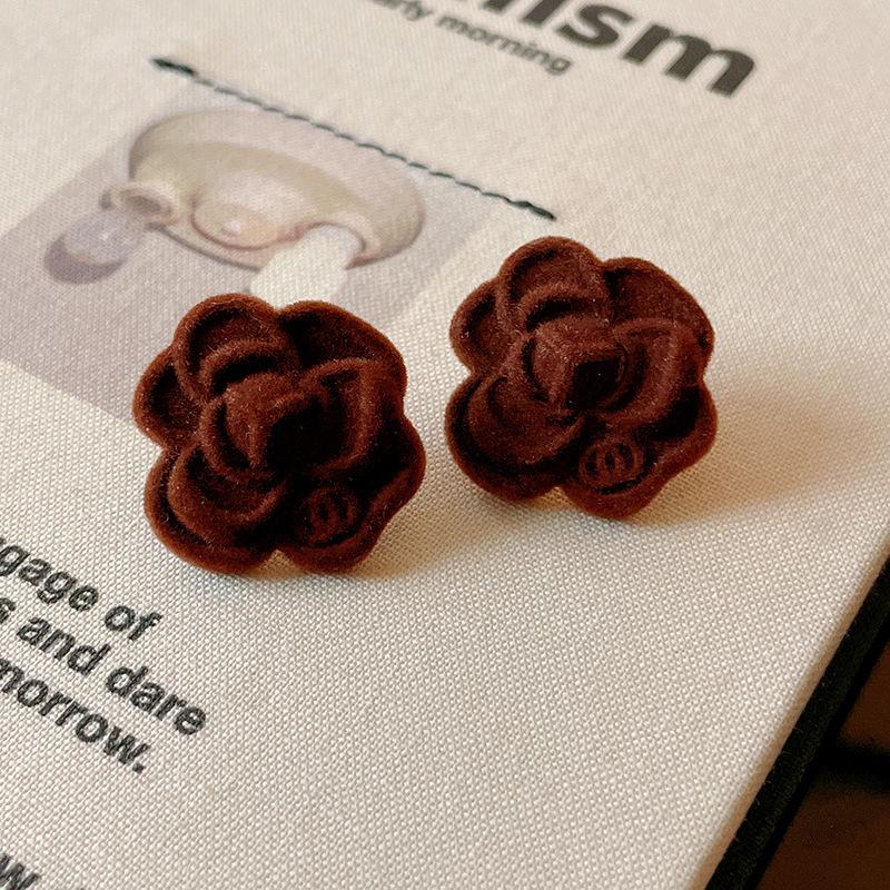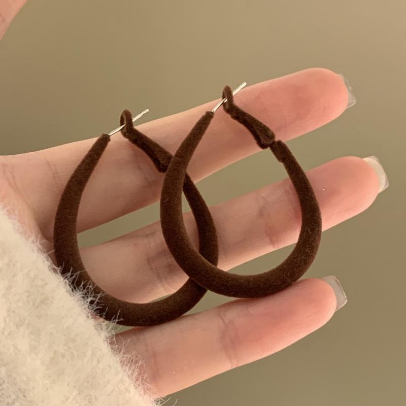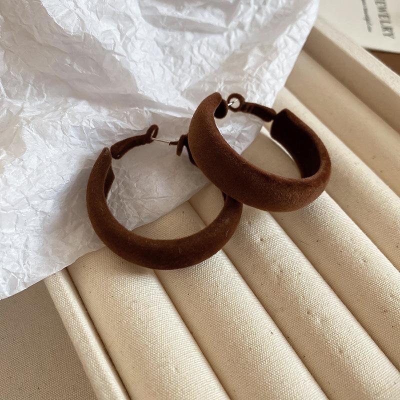 Pendientes coreanos de lana marrón con personalidad retro, pendientes de Joker dulces, temperamento ligero, pendientes de lujo de alta calidad, venta al por mayor
