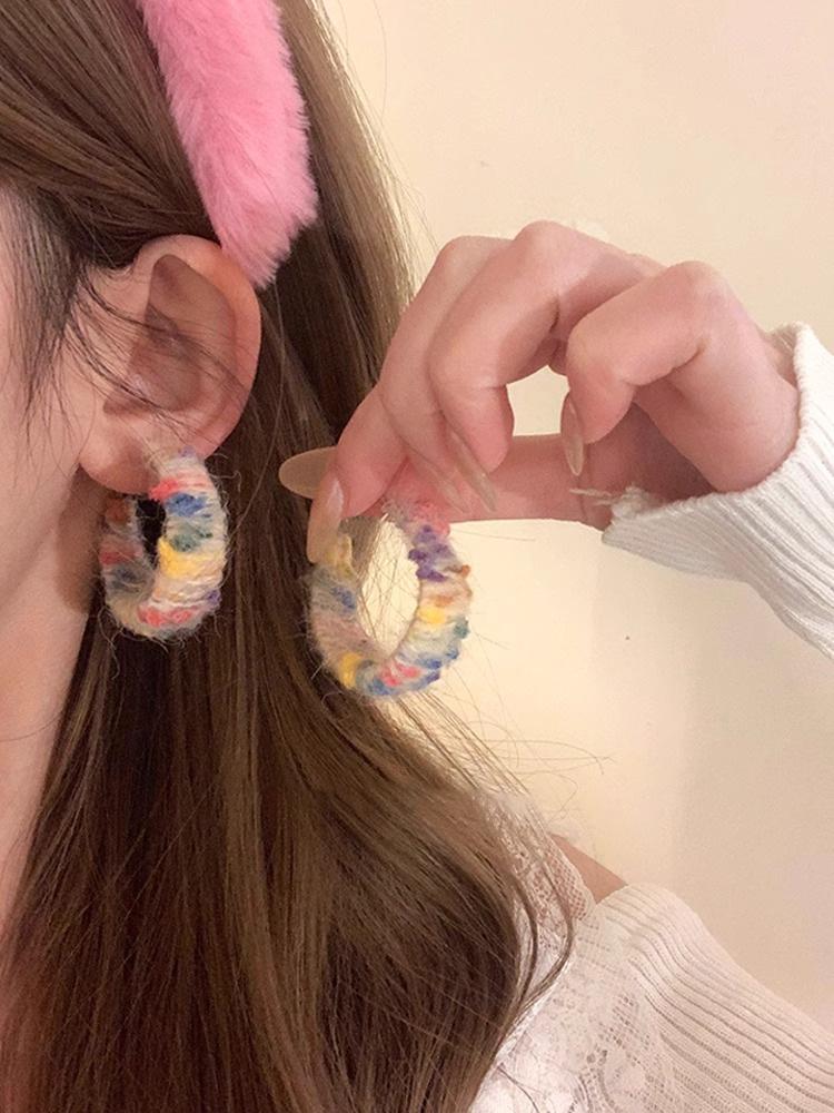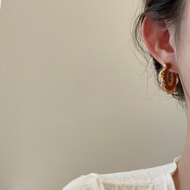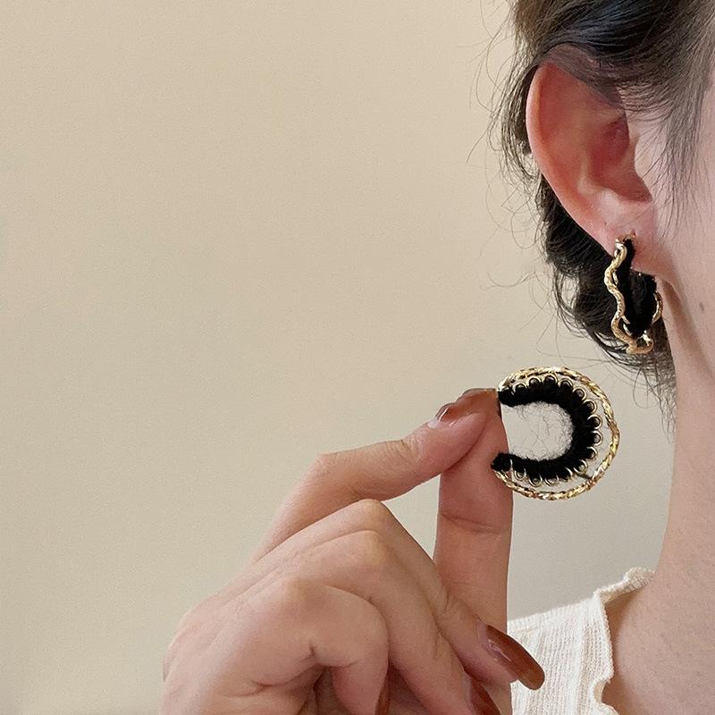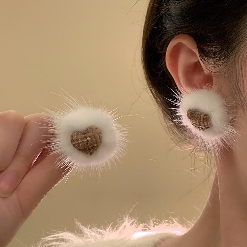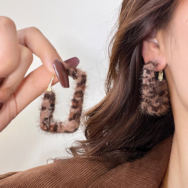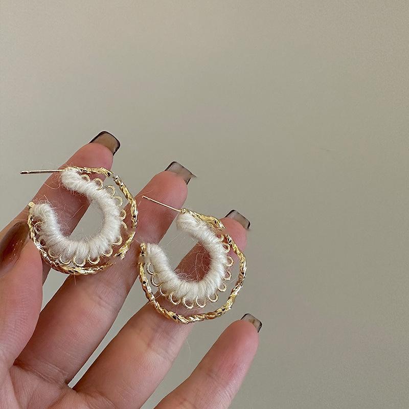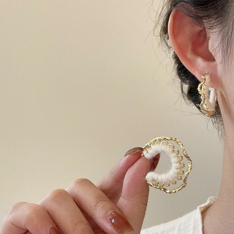 Pendientes coreanos de lana marrón con personalidad retro, pendientes de Joker dulces, temperamento ligero, pendientes de lujo de alta calidad, venta al por mayor