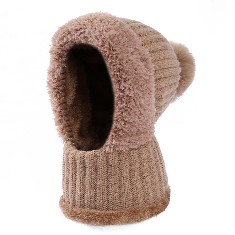 Nuevo Gorro de Lana con Forro Polar para Mujer Bufanda de Moda Gorro de Punto con Capucha Invierno Exterior Protección para los Oídos a Prueba de Frío Cálido Gorro Transfronterizo