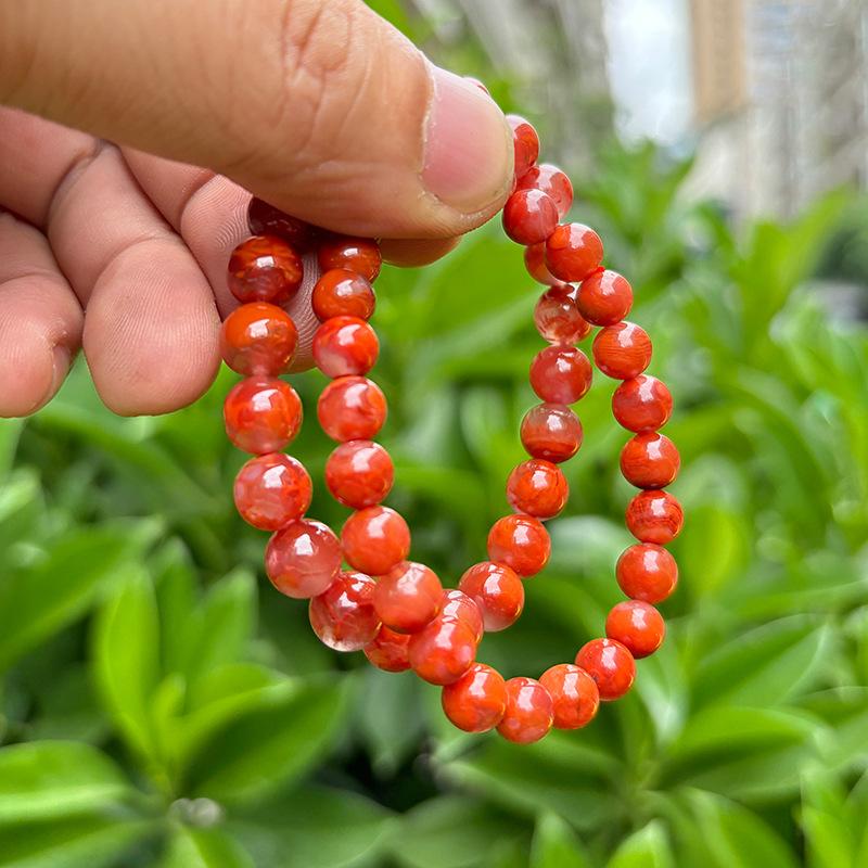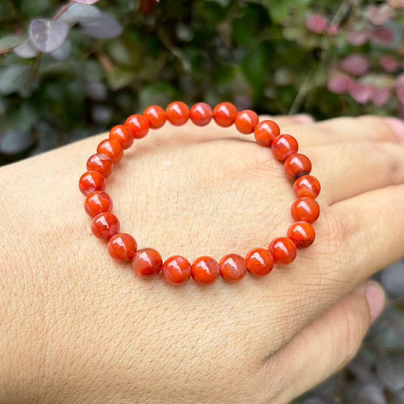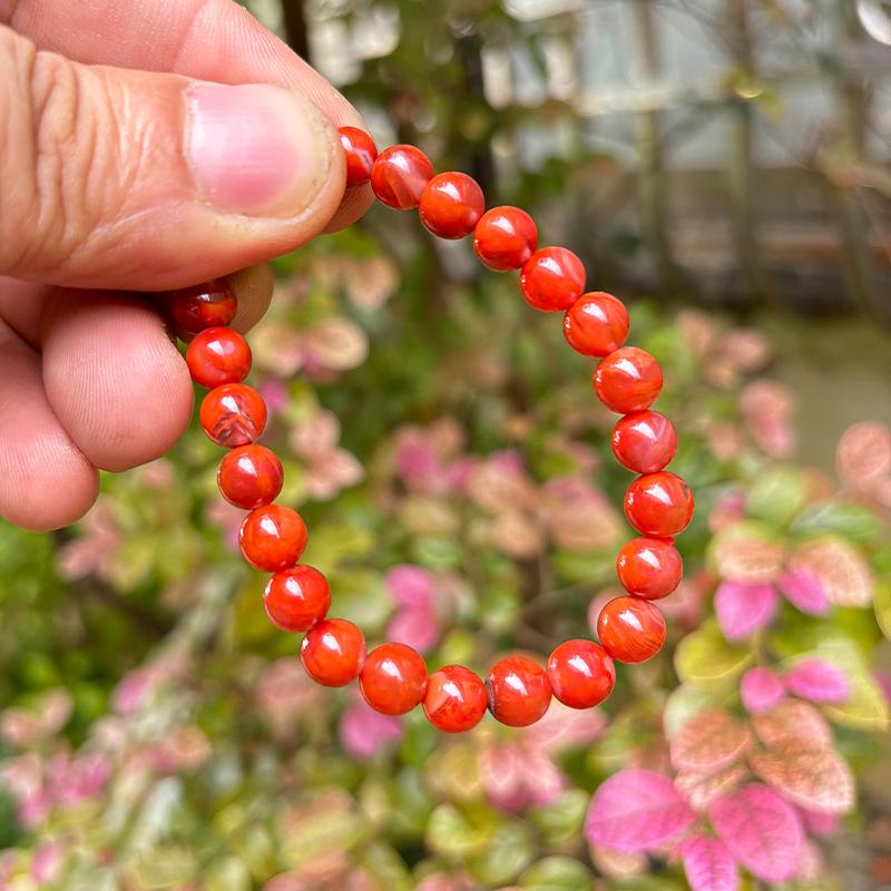 Pulsera de Cuentas Redondas de Ágata Roja del Sur Natural Color Rojo Llama Pulsera de Cuentas Terminada