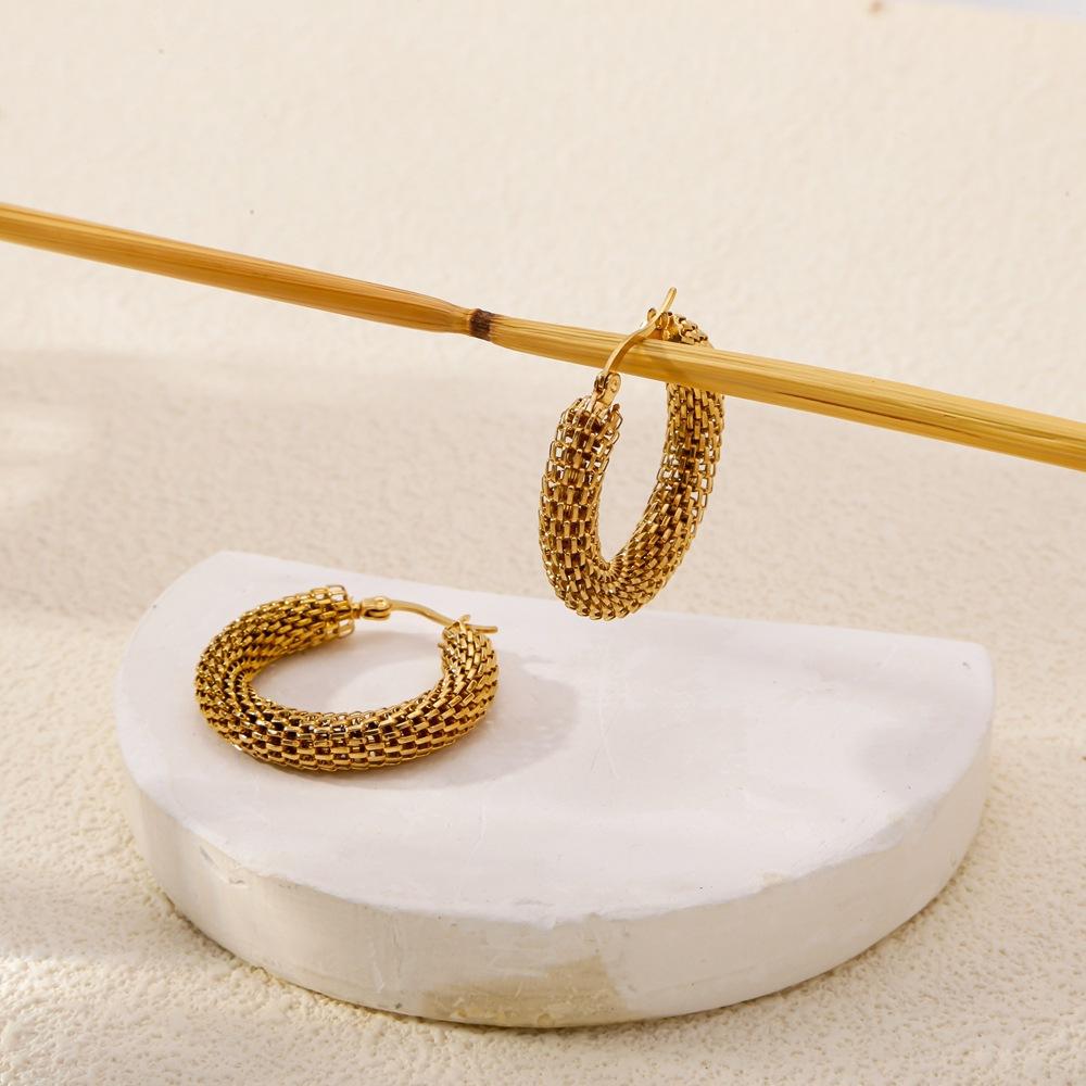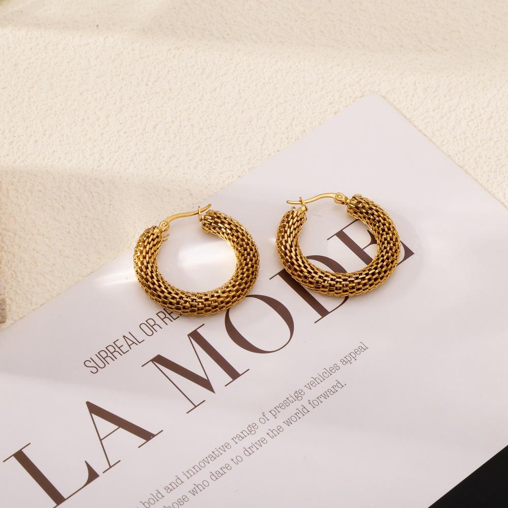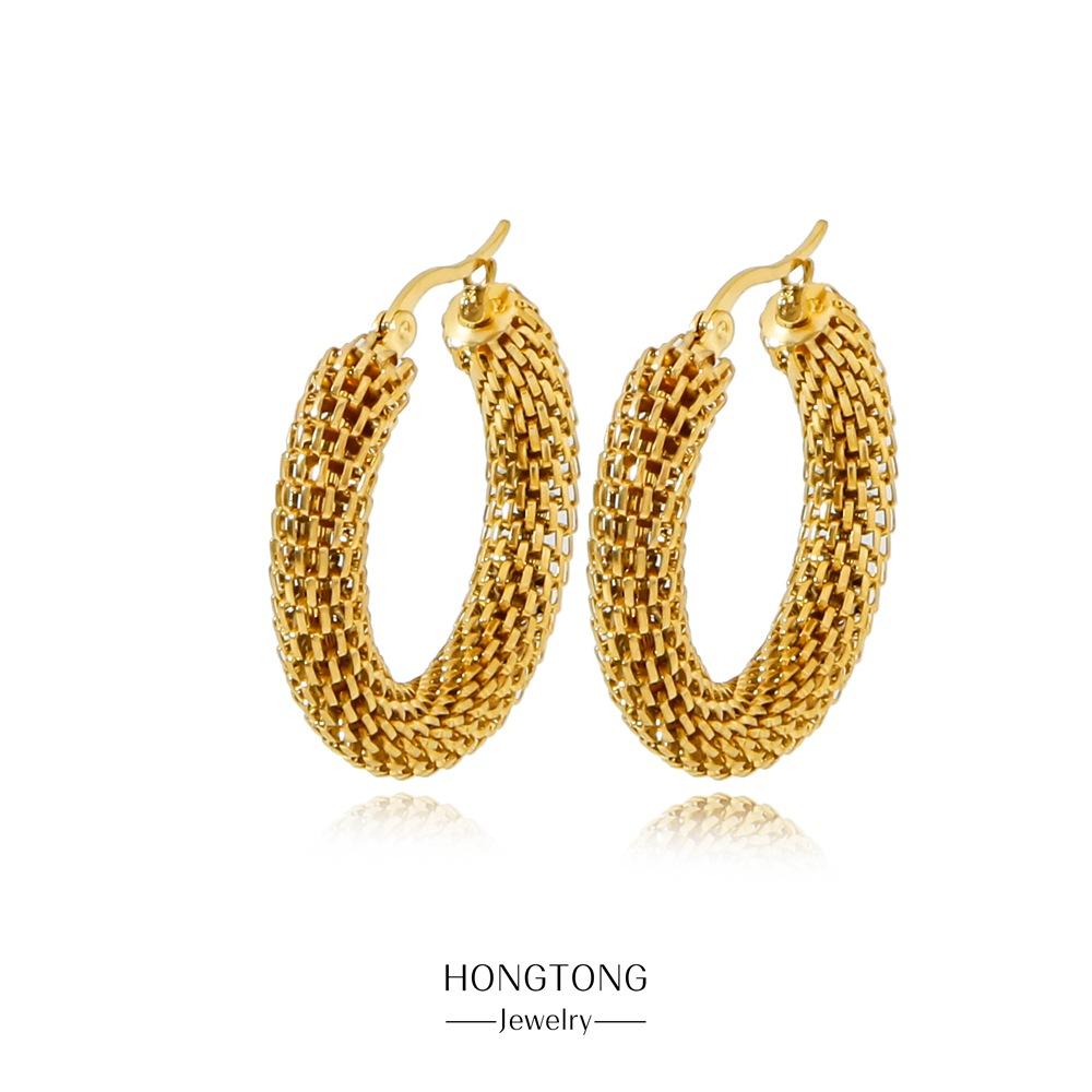 Pendientes huecos de acero inoxidable exagerados retro, venta caliente transfronteriza, pendientes con hebilla de oreja de anillo cerrado, fabricante de joyas de acero de titanio en stock