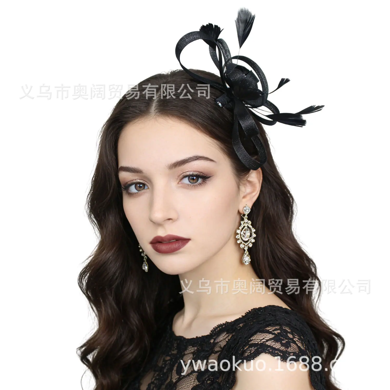 Compra Tocado de plumas de moda europea y americana, tocado de novia, vestido de novia con flores, accesorios para el cabello, pasarela de baile, tocado de malla vintage al por mayor en Joom.pro