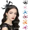 Tocado de plumas de moda europea y americana, tocado de novia, vestido de novia con flores, accesorios para el cabello, pasarela de baile, tocado de malla vintage