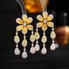 Aretes de temperamento elegante de moda de lujo ligero, aretes de flor de circonita de alta gama para vestido de fiesta con adelgazamiento facial