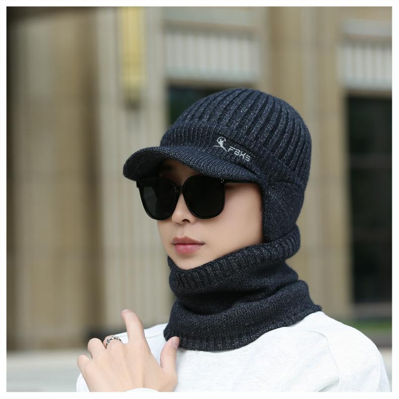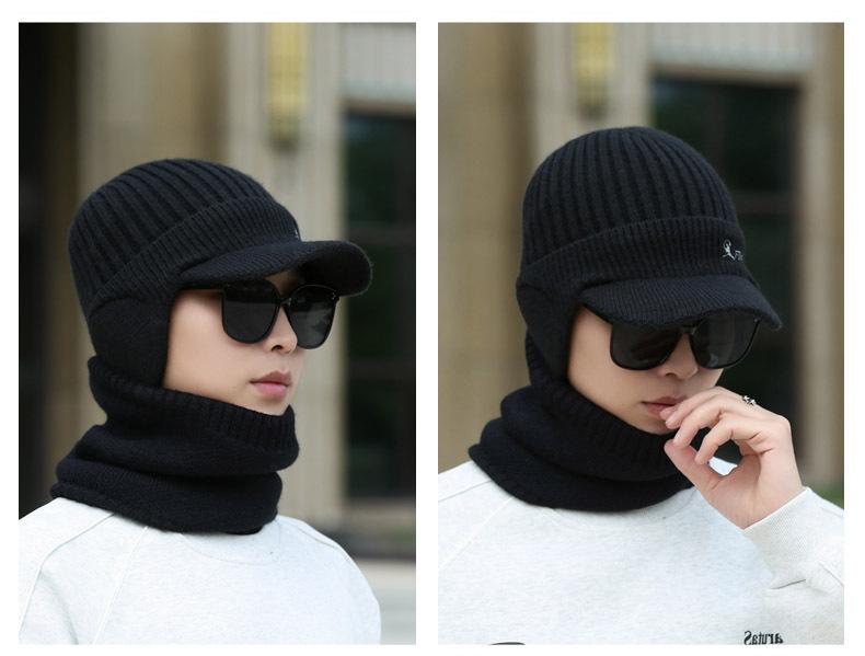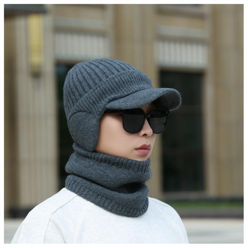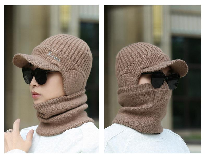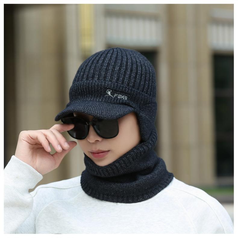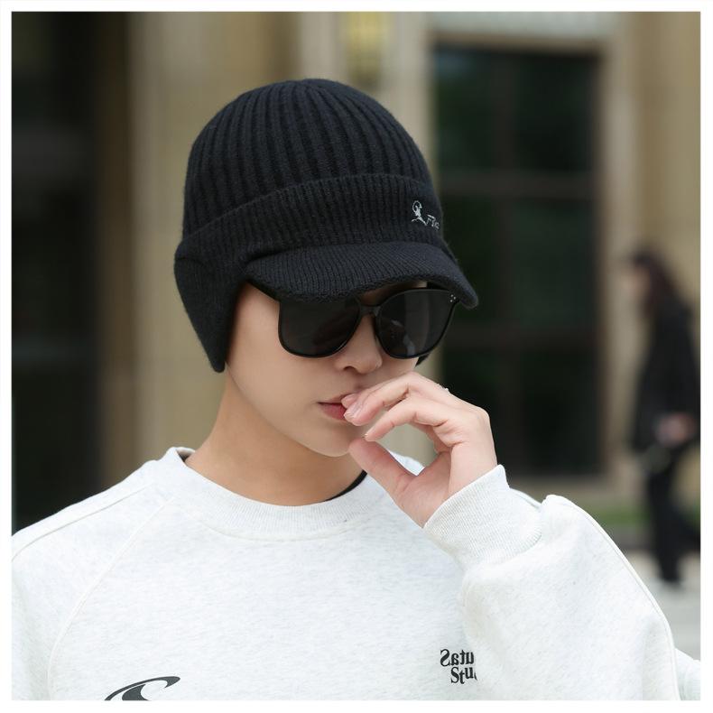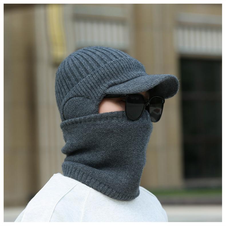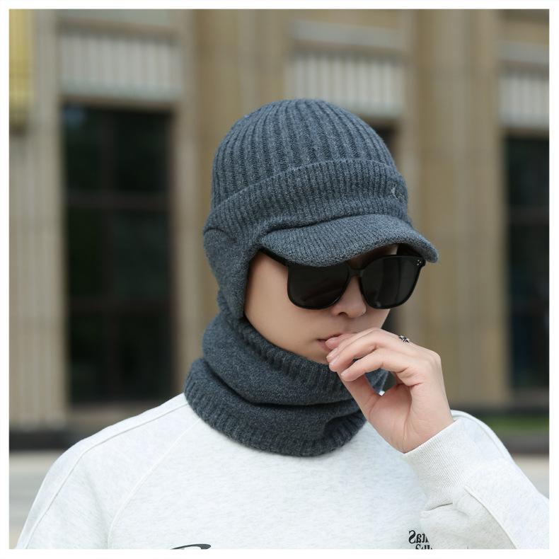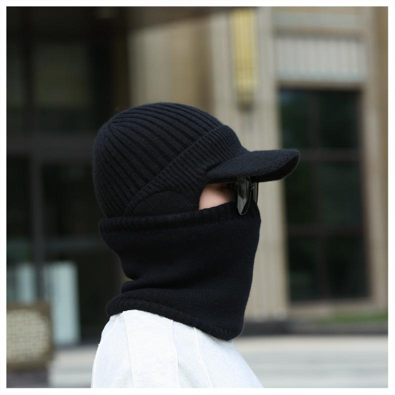 Gorro de punto para hombre con protección para las orejas forrado de polar, otoño e invierno, cálido a prueba de frío, para ciclismo, bufanda de lana, forrado de polar, exterior, tipo pulóver, con visera de pato