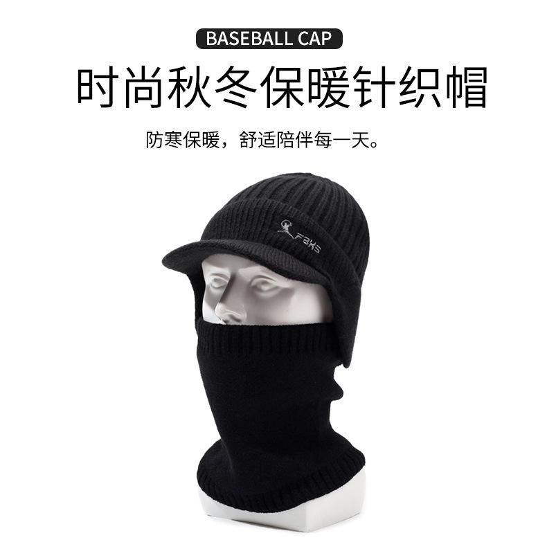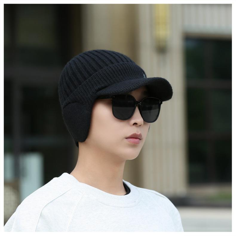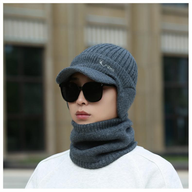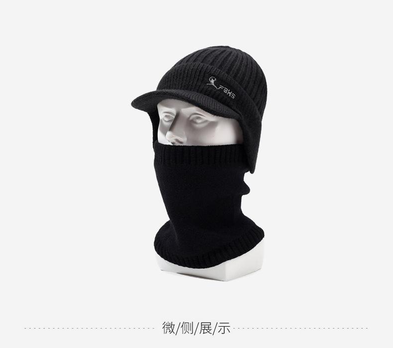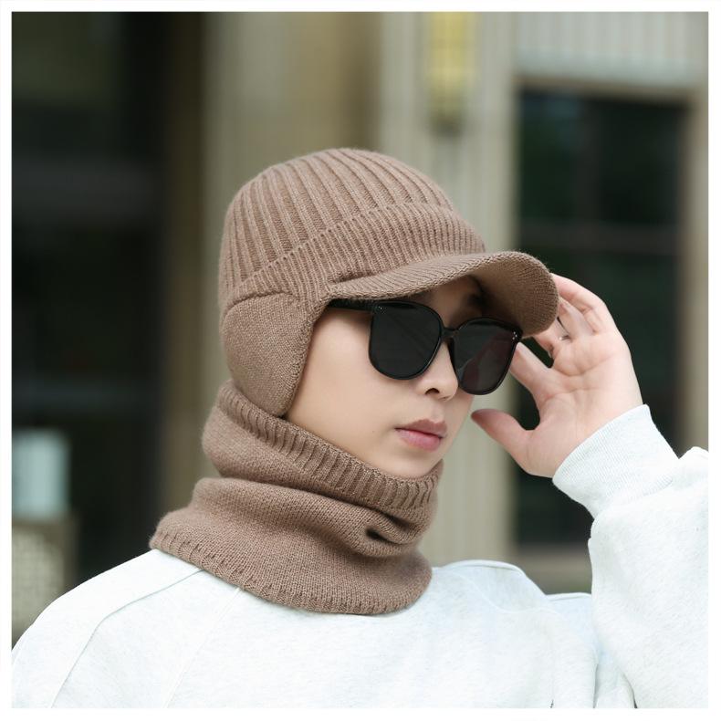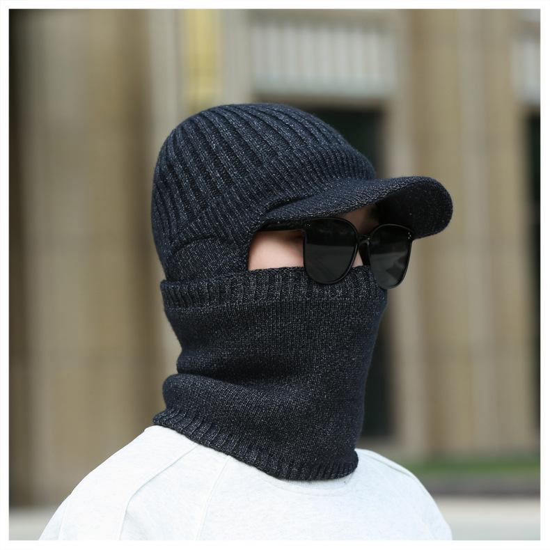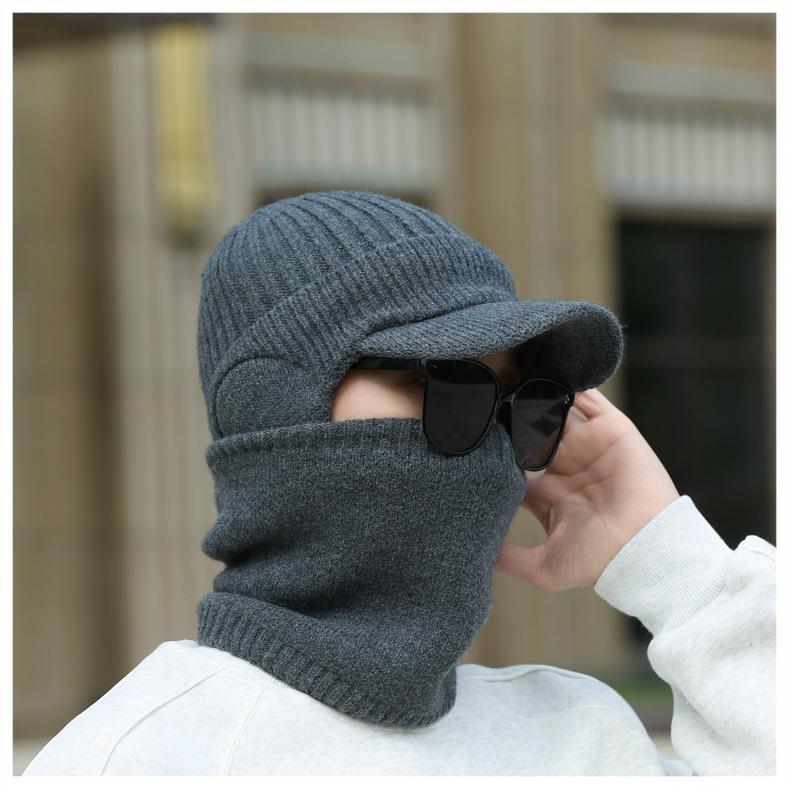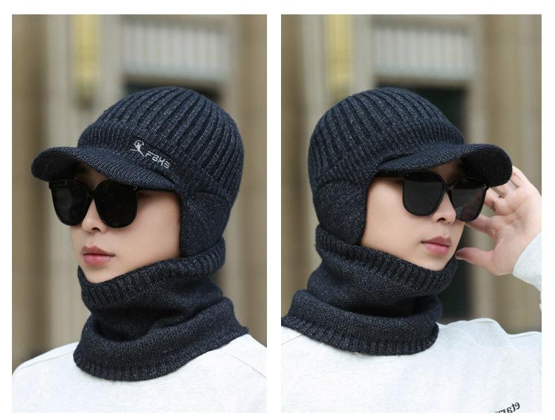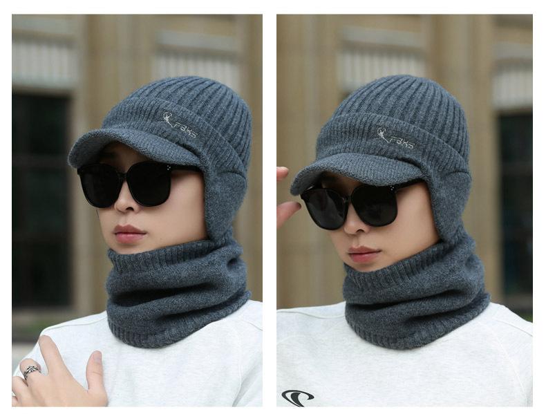 Gorro de punto para hombre con protección para las orejas forrado de polar, otoño e invierno, cálido a prueba de frío, para ciclismo, bufanda de lana, forrado de polar, exterior, tipo pulóver, con visera de pato