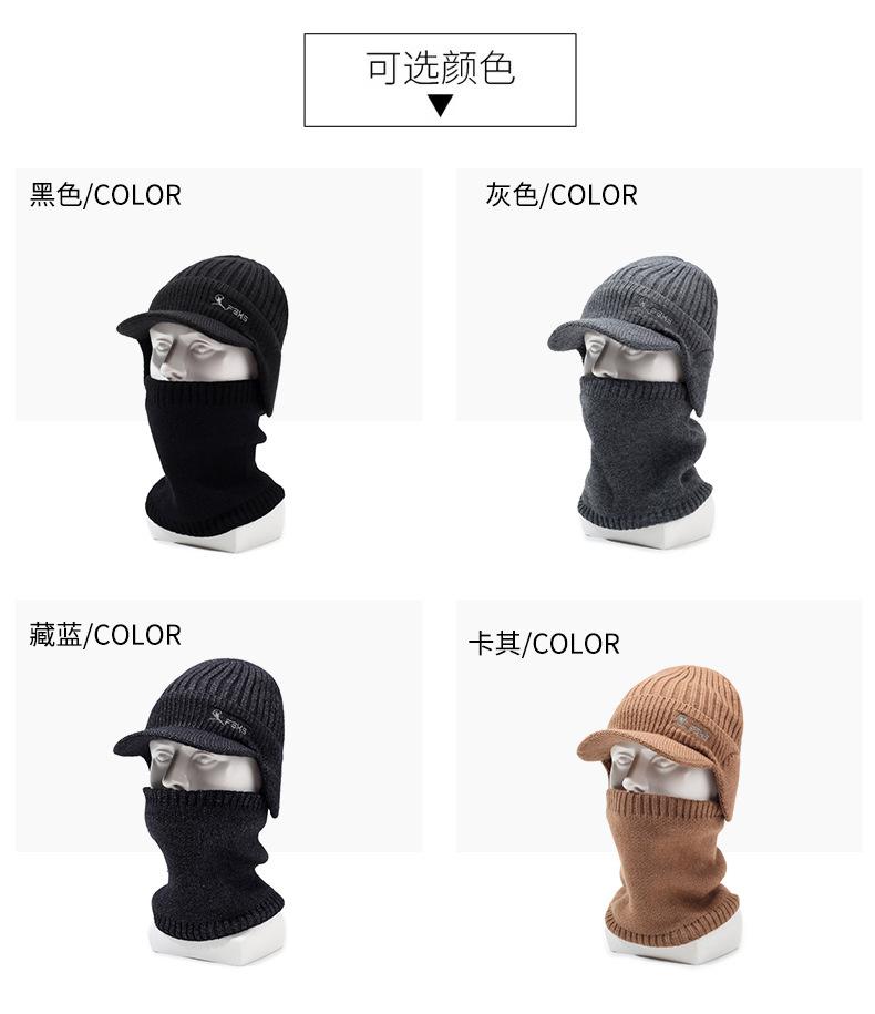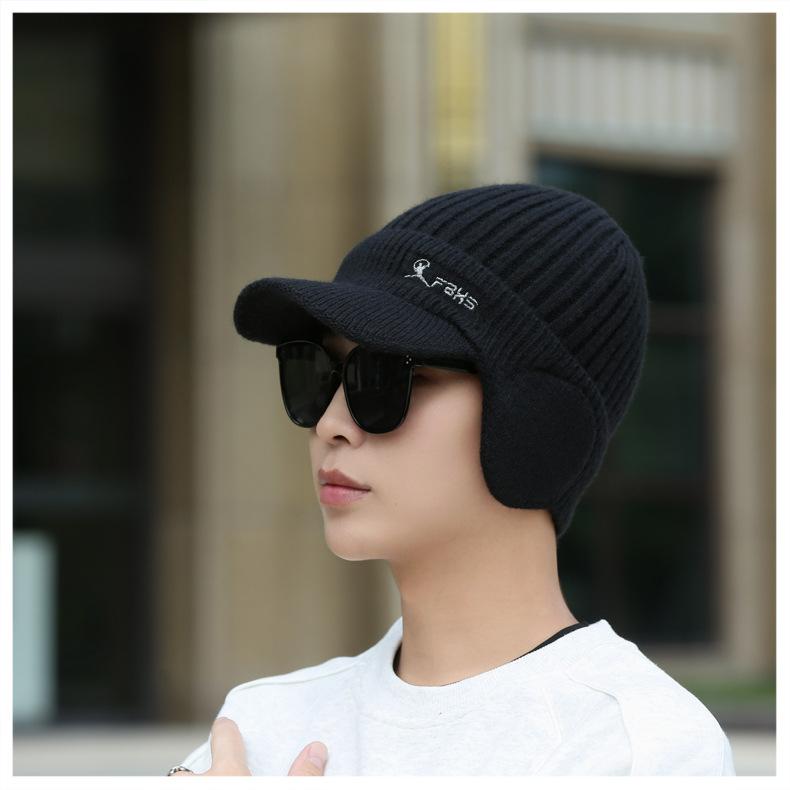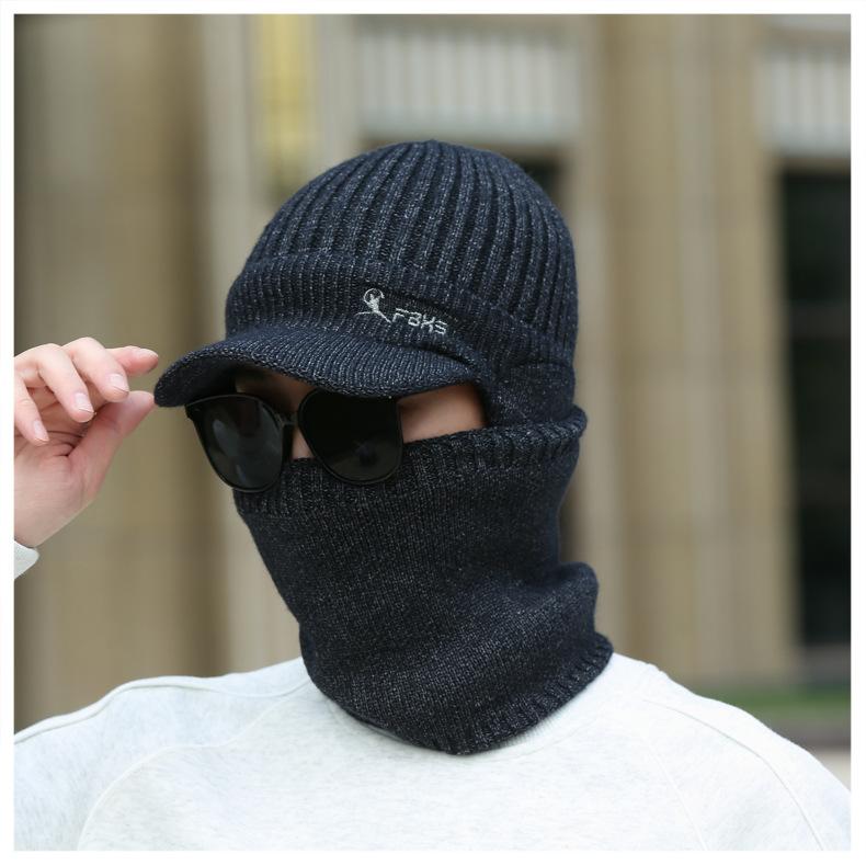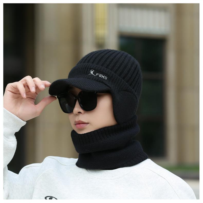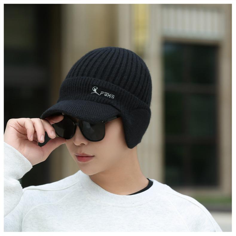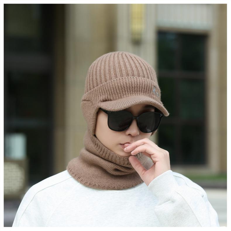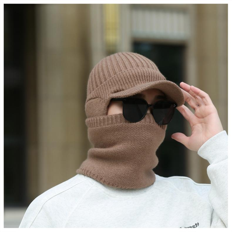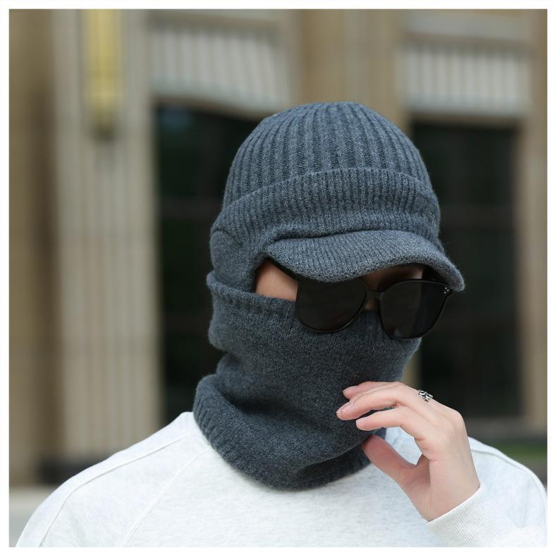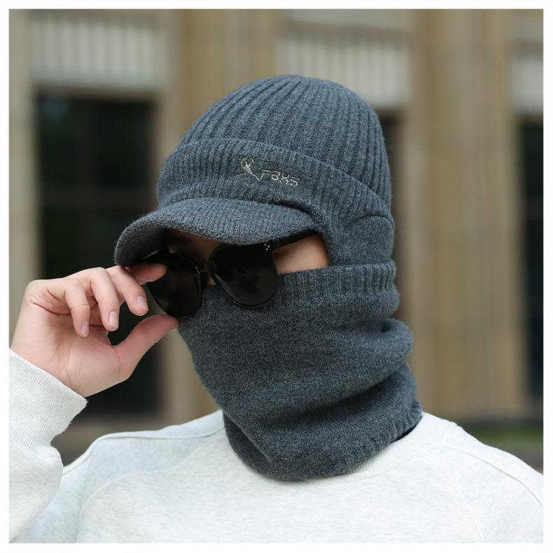 Gorro de punto para hombre con protección para las orejas forrado de polar, otoño e invierno, cálido a prueba de frío, para ciclismo, bufanda de lana, forrado de polar, exterior, tipo pulóver, con visera de pato