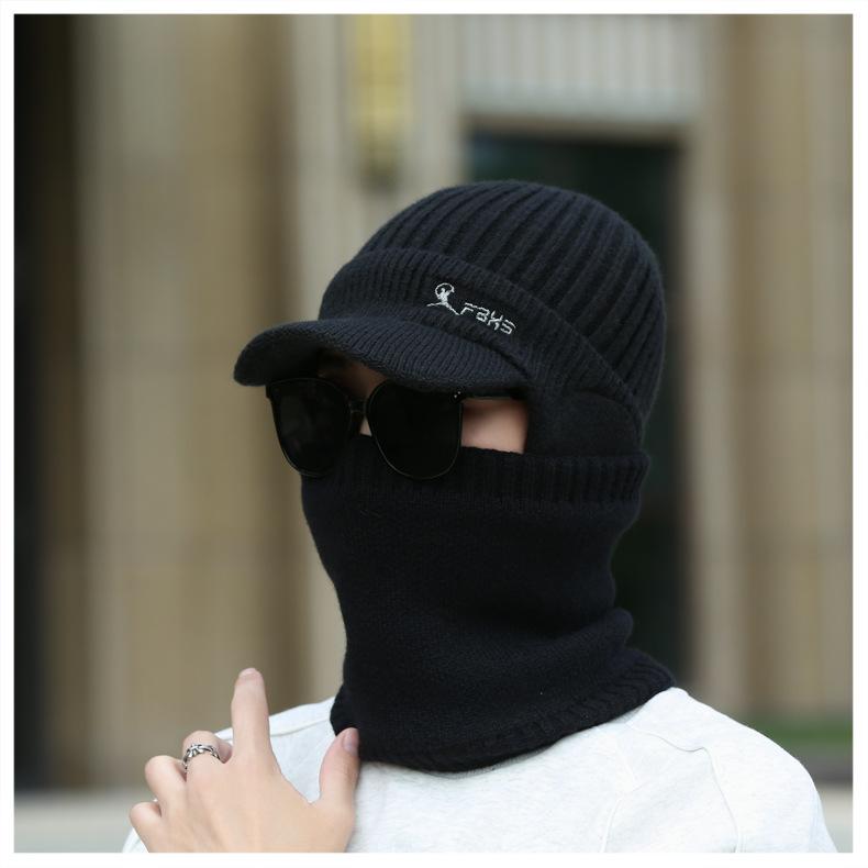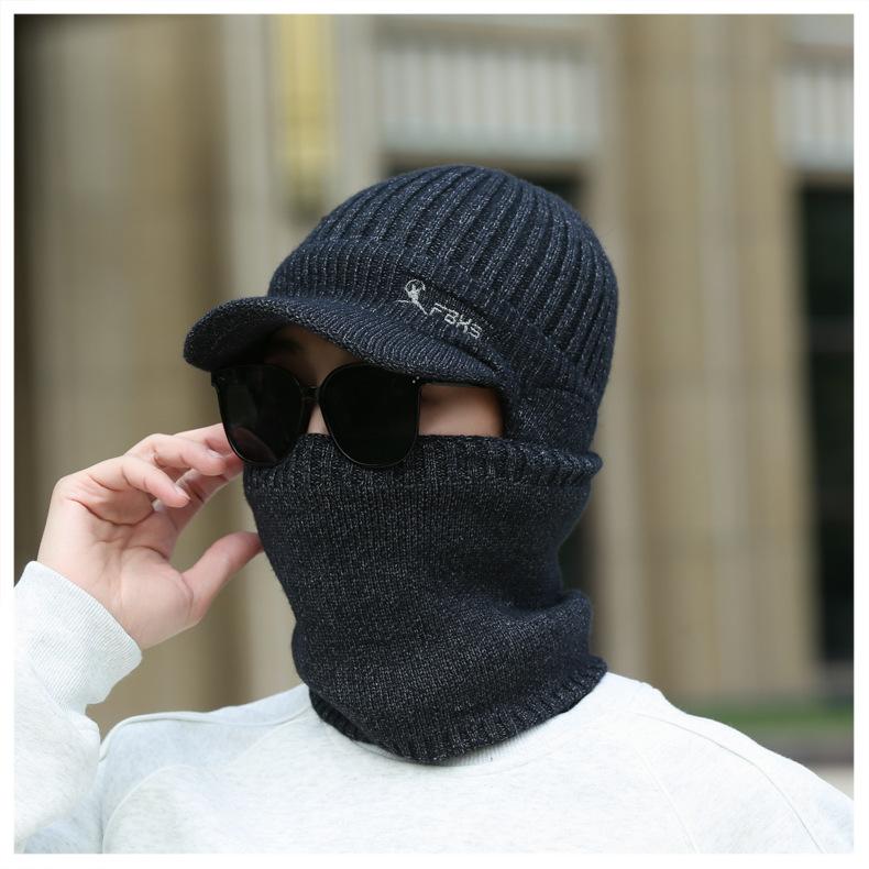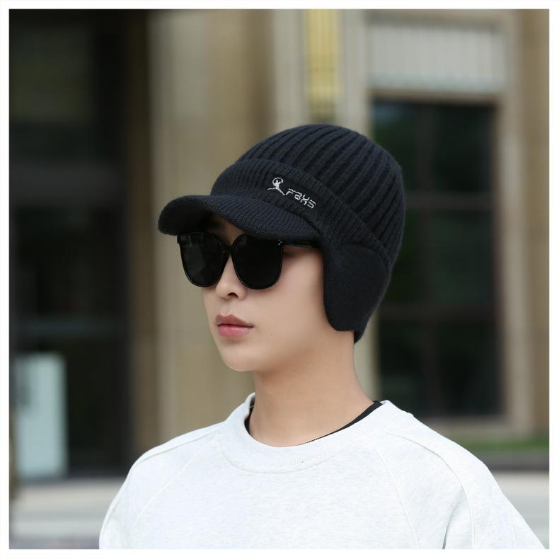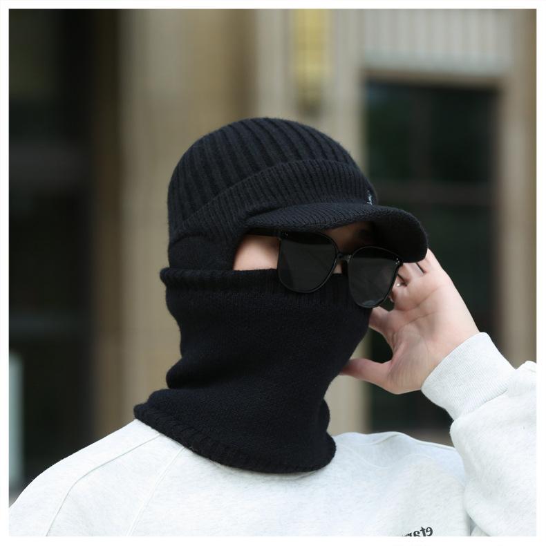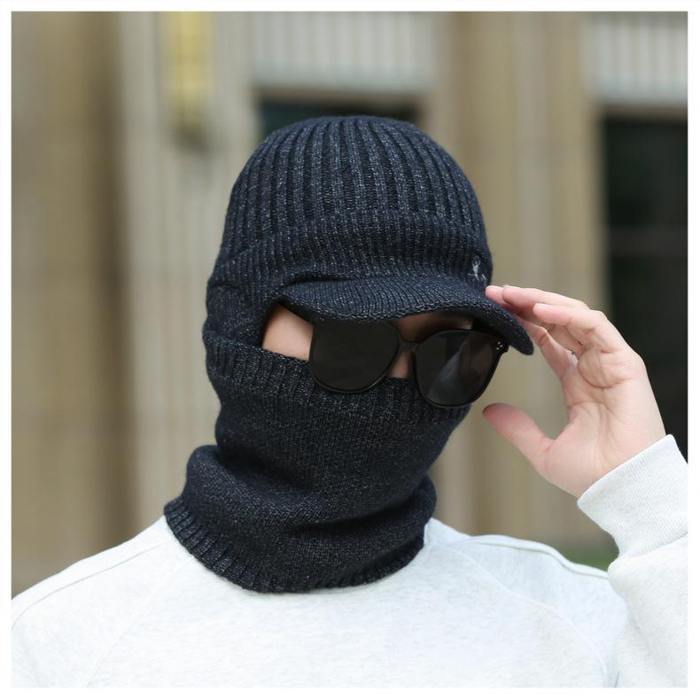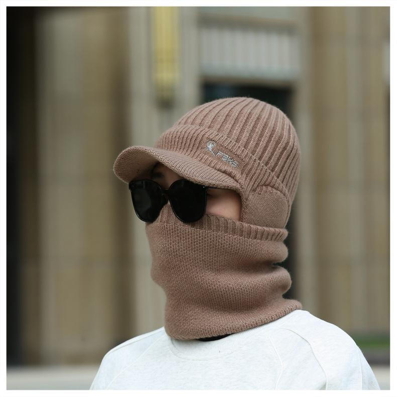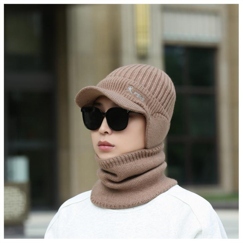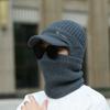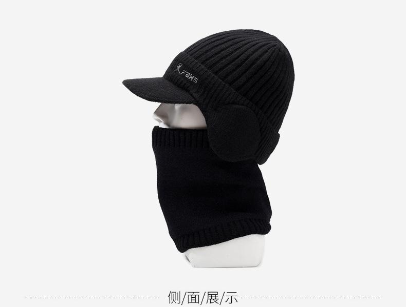 Gorro de punto para hombre con protección para las orejas forrado de polar, otoño e invierno, cálido a prueba de frío, para ciclismo, bufanda de lana, forrado de polar, exterior, tipo pulóver, con visera de pato