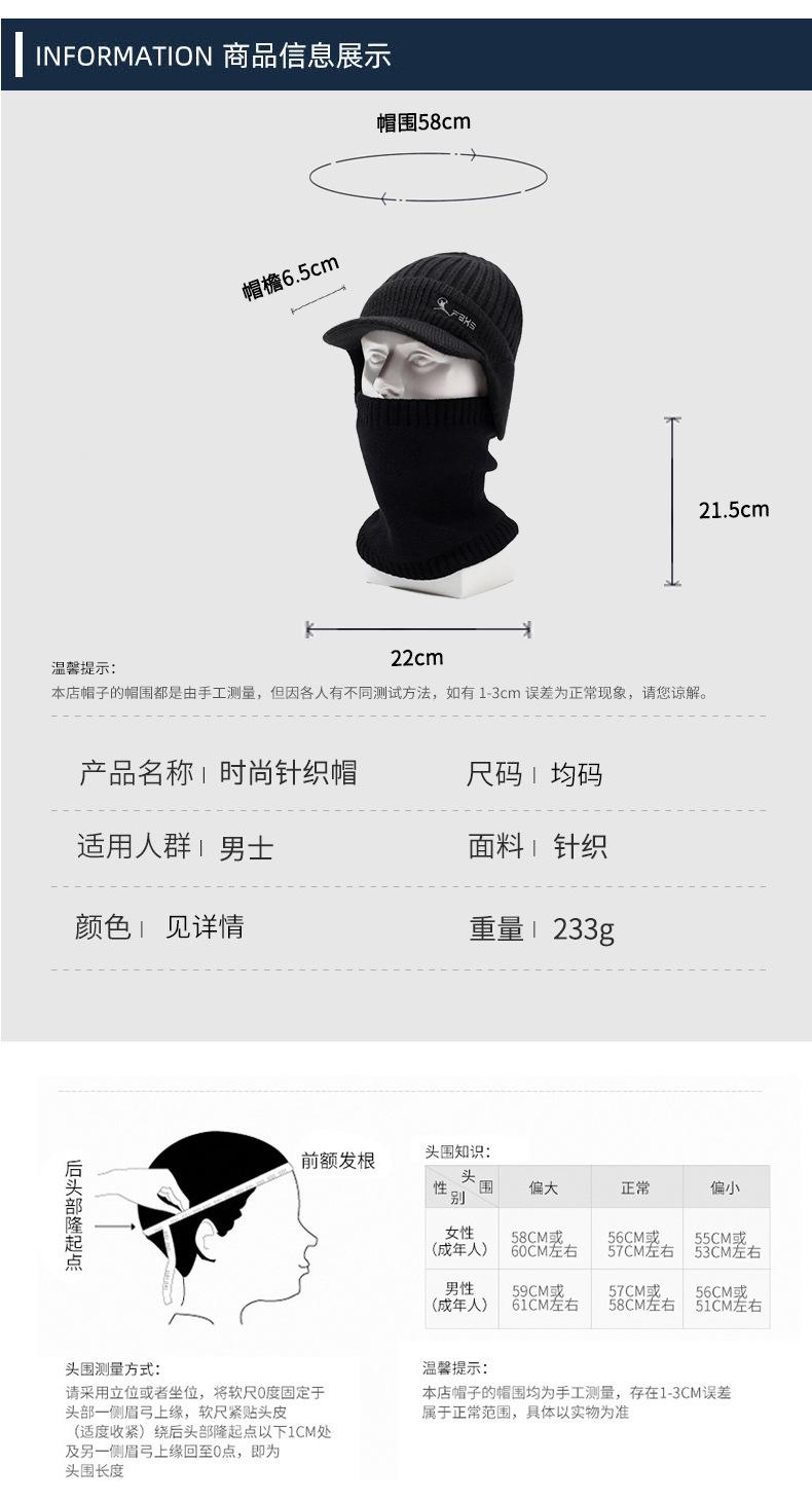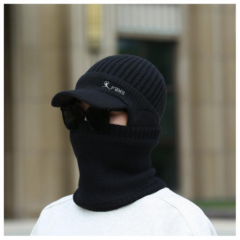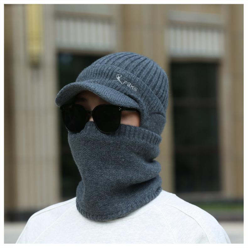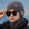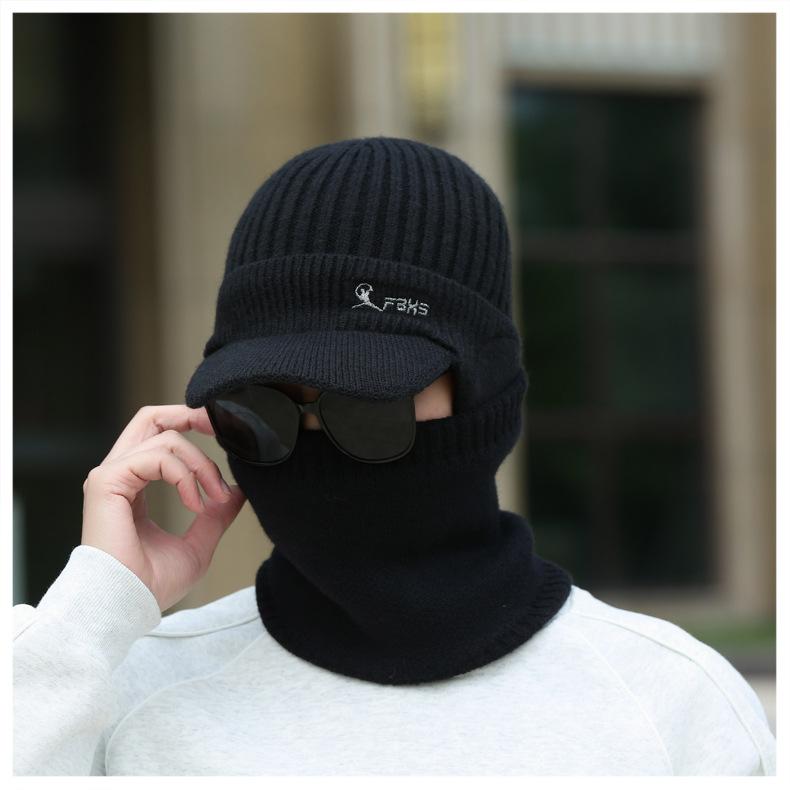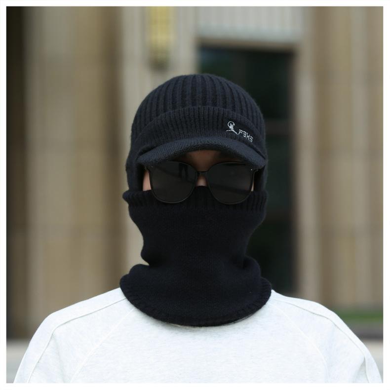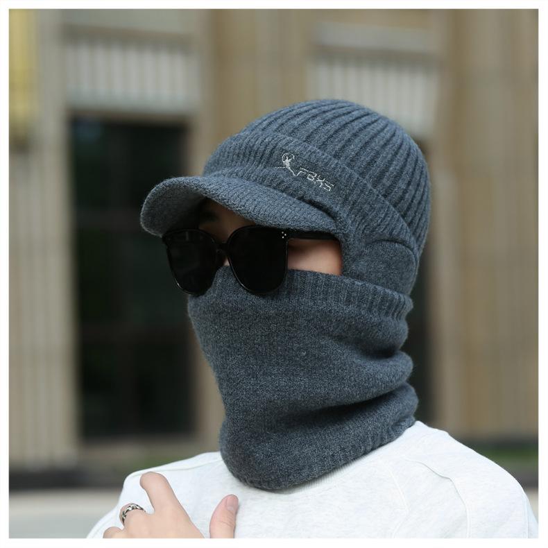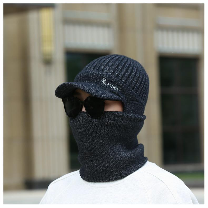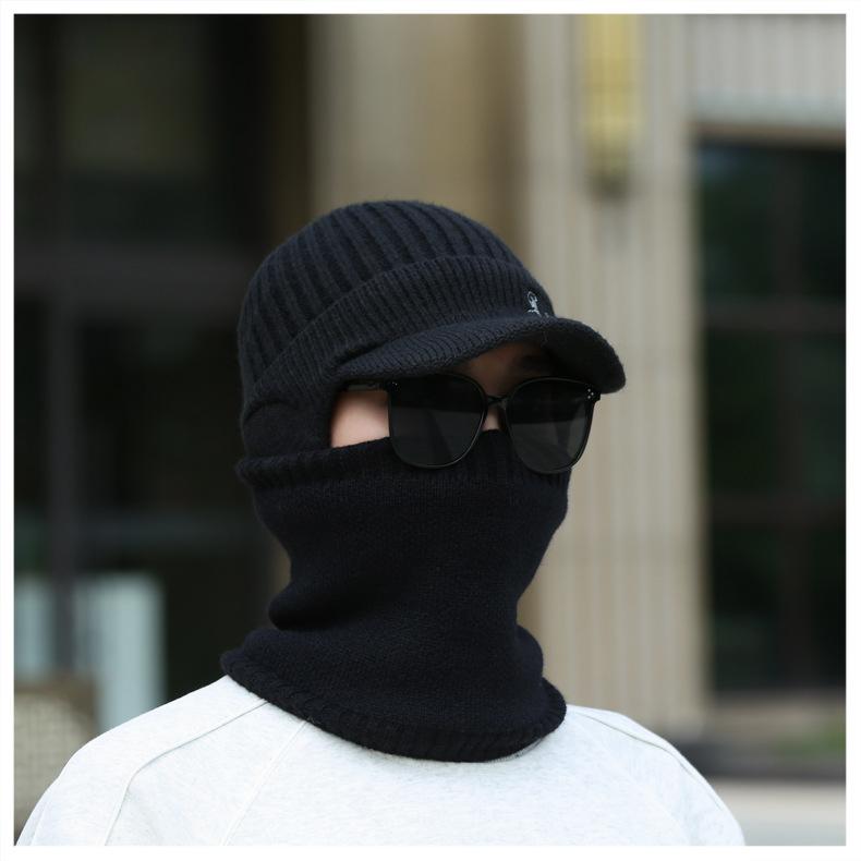 Gorro de punto para hombre con protección para las orejas forrado de polar, otoño e invierno, cálido a prueba de frío, para ciclismo, bufanda de lana, forrado de polar, exterior, tipo pulóver, con visera de pato
