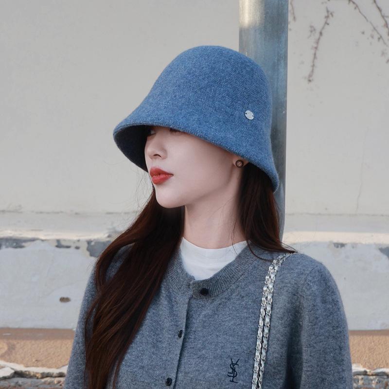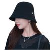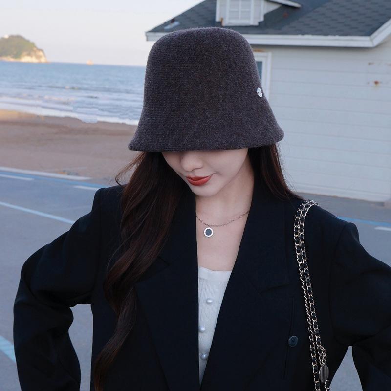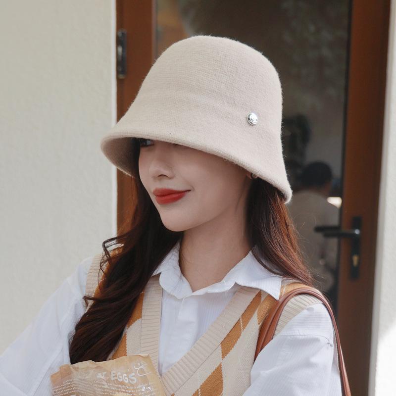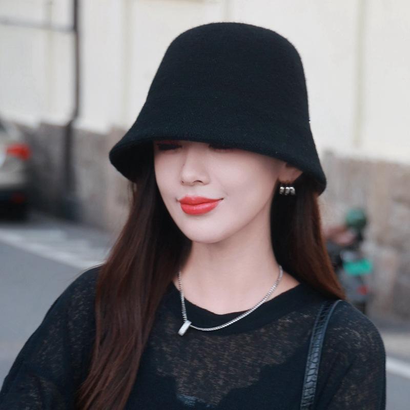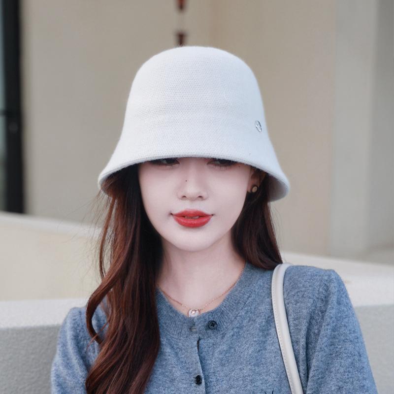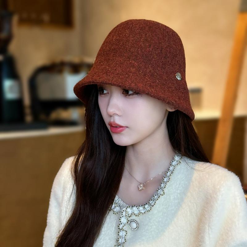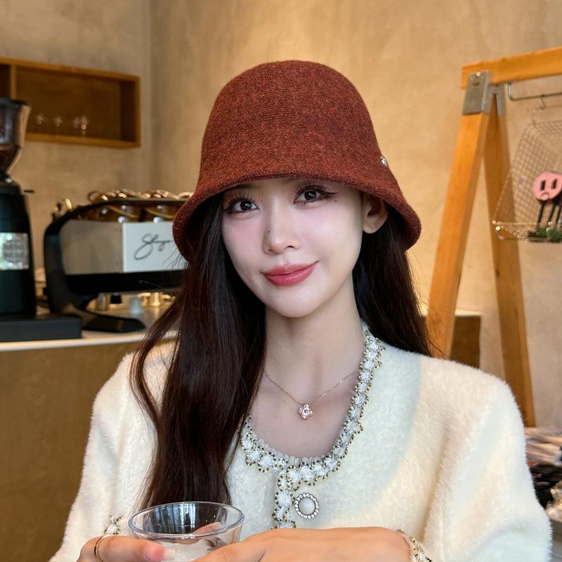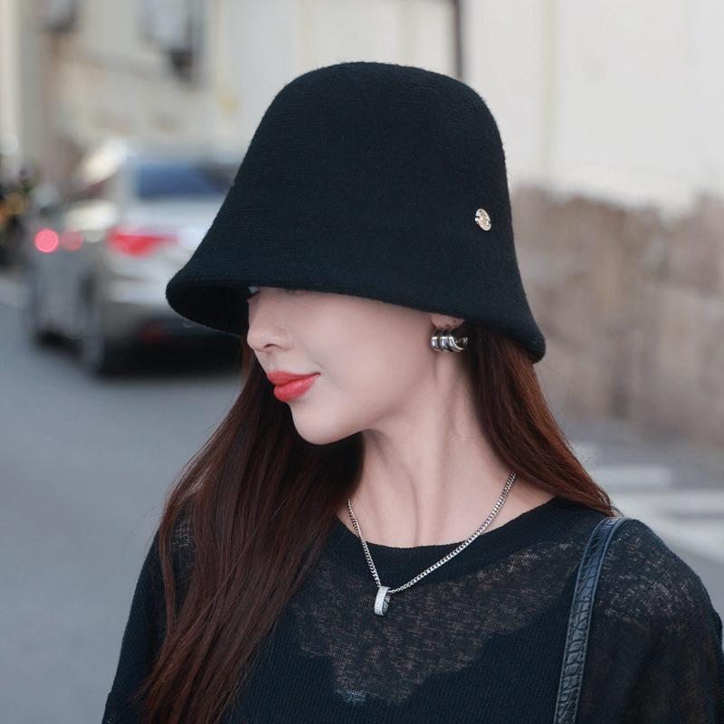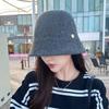 Etiqueta Redonda Pequeña 2024 Otoño e Invierno Nuevo Sombrero de Cubo Tejido Simple Moda Coreana Casual Rostro Pequeño Cálido Sombrero de Cubeta
