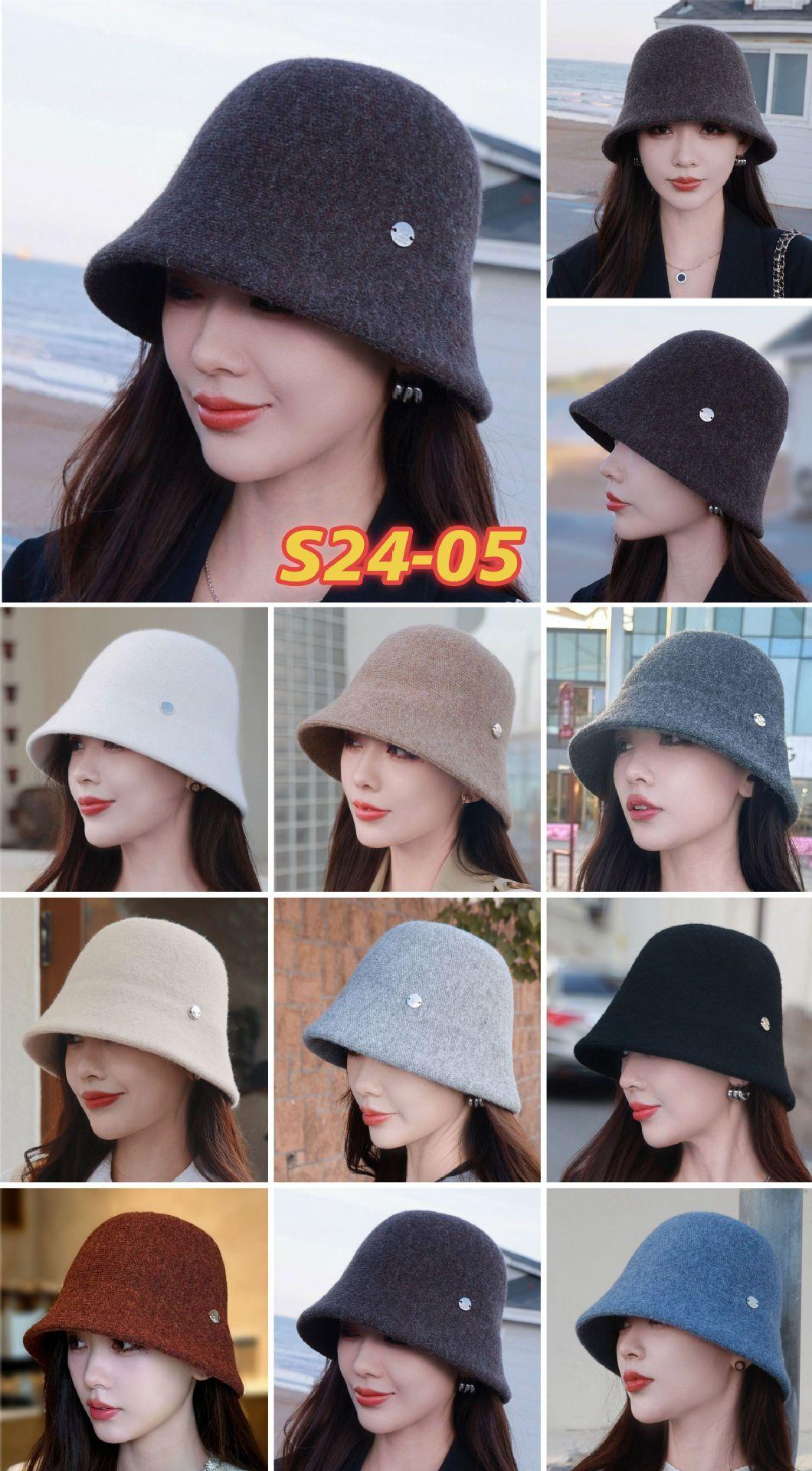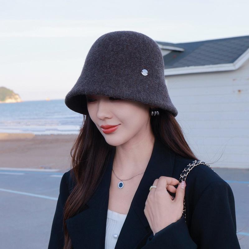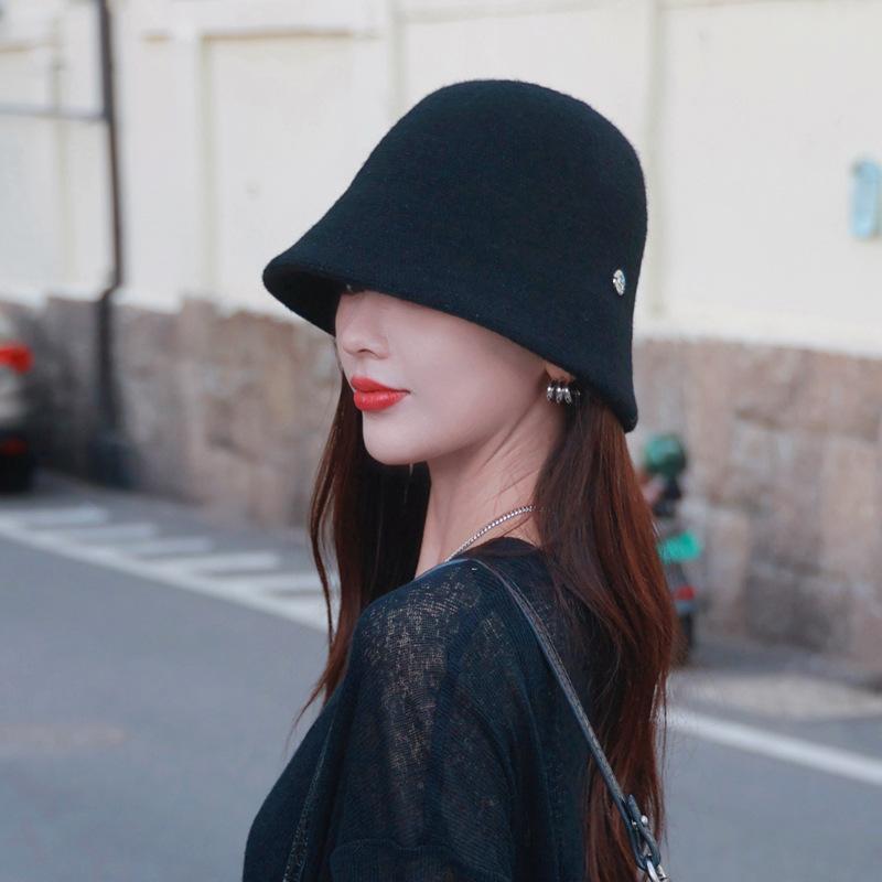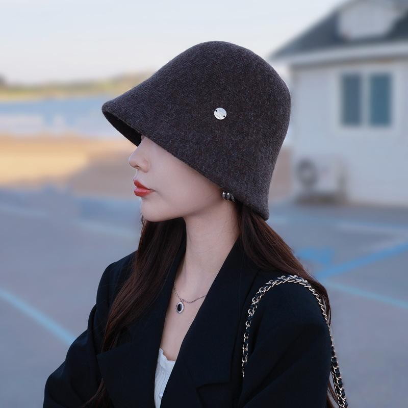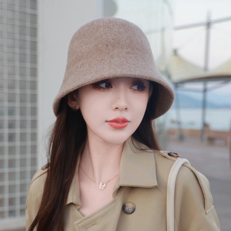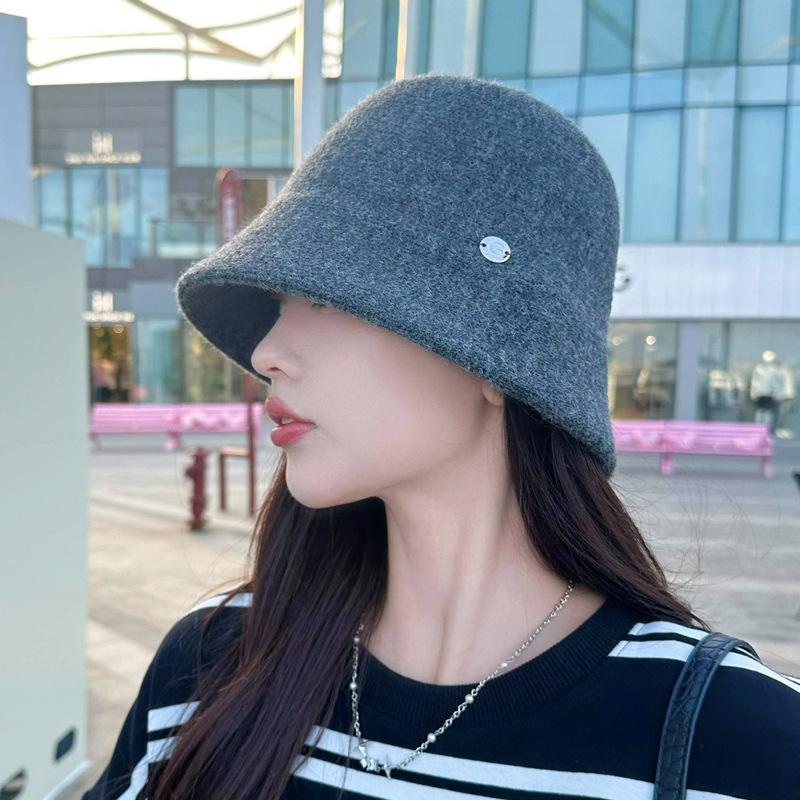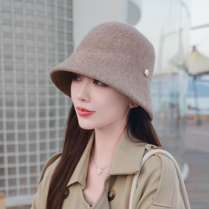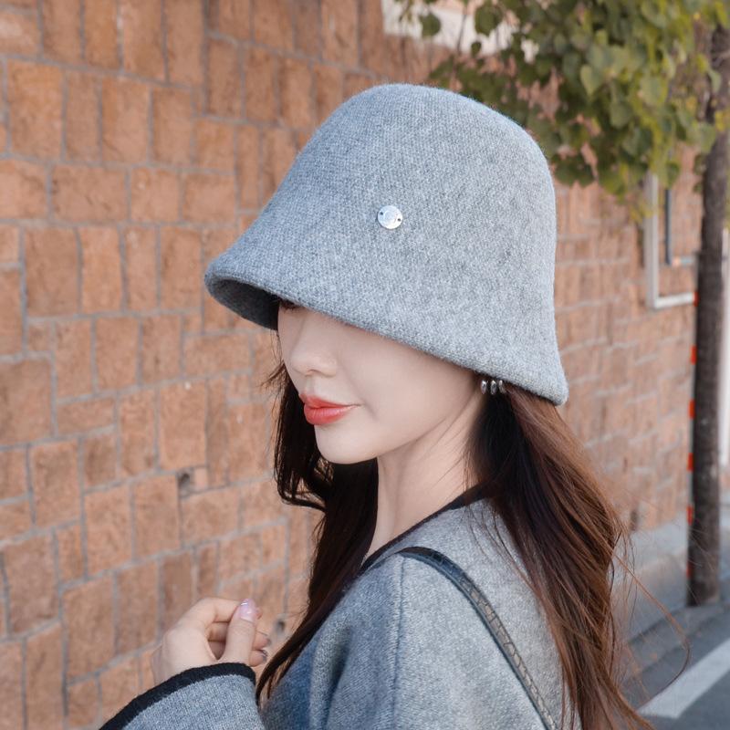 Etiqueta Redonda Pequeña 2024 Otoño e Invierno Nuevo Sombrero de Cubo Tejido Simple Moda Coreana Casual Rostro Pequeño Cálido Sombrero de Cubeta