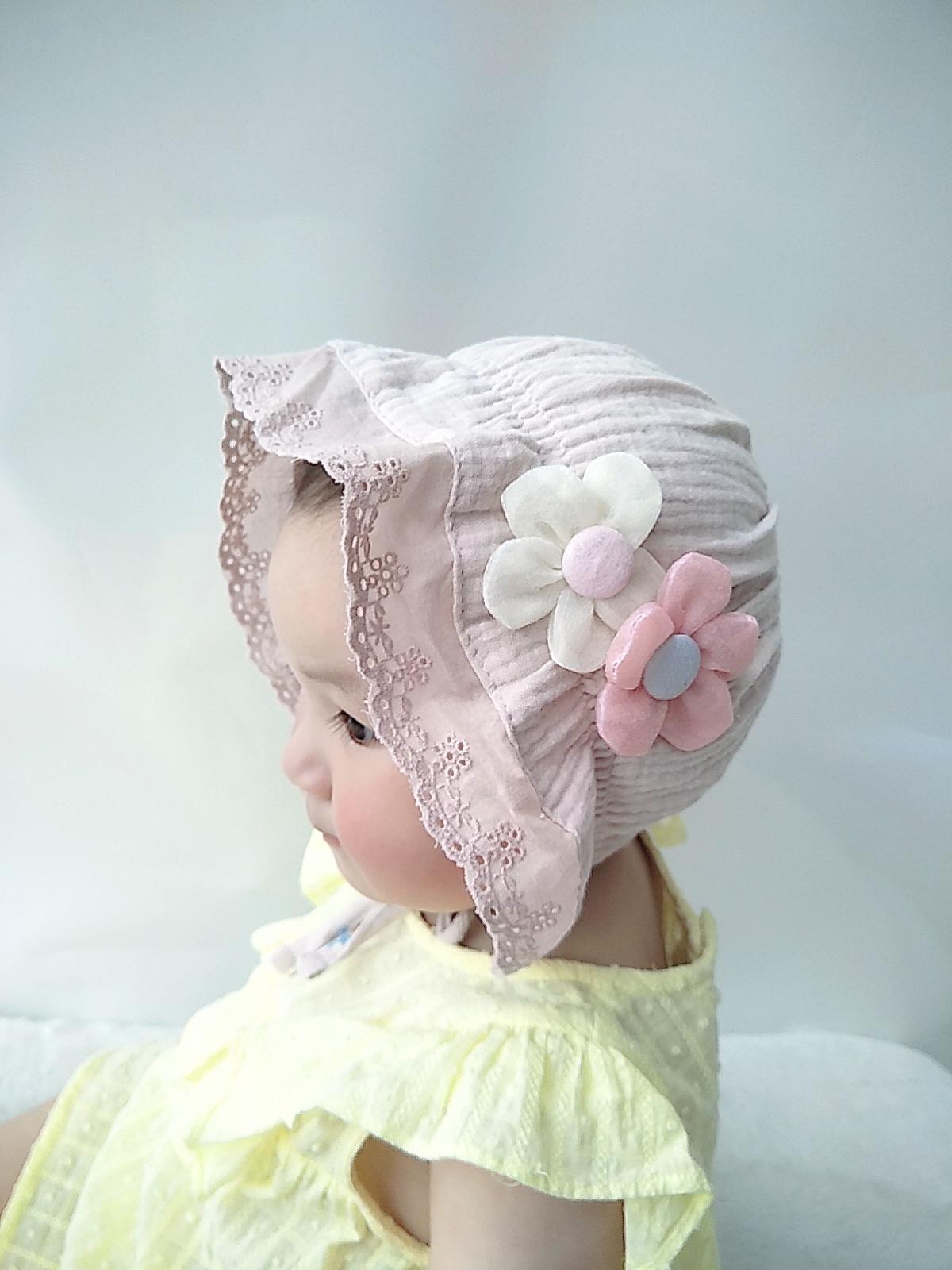 【 Nombre: 】Sombrero de corte de gasa lavada (flores doblemente bordadas)