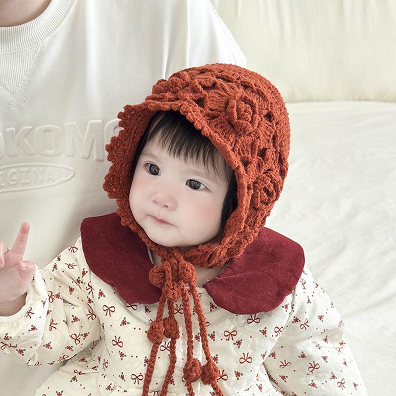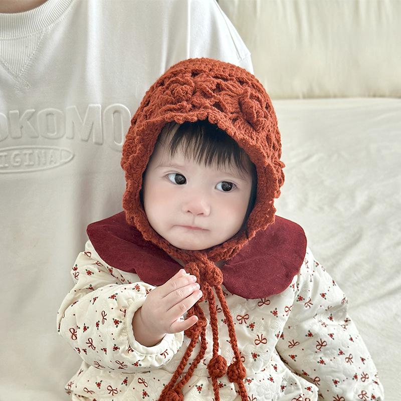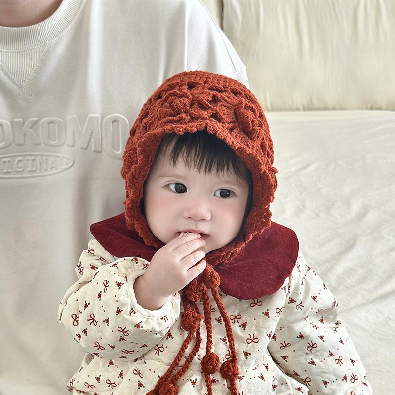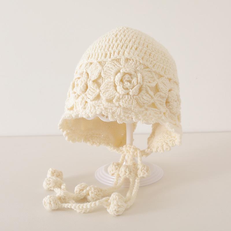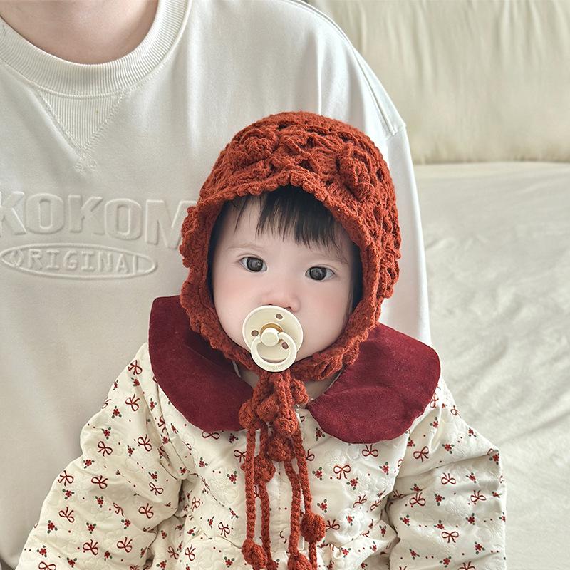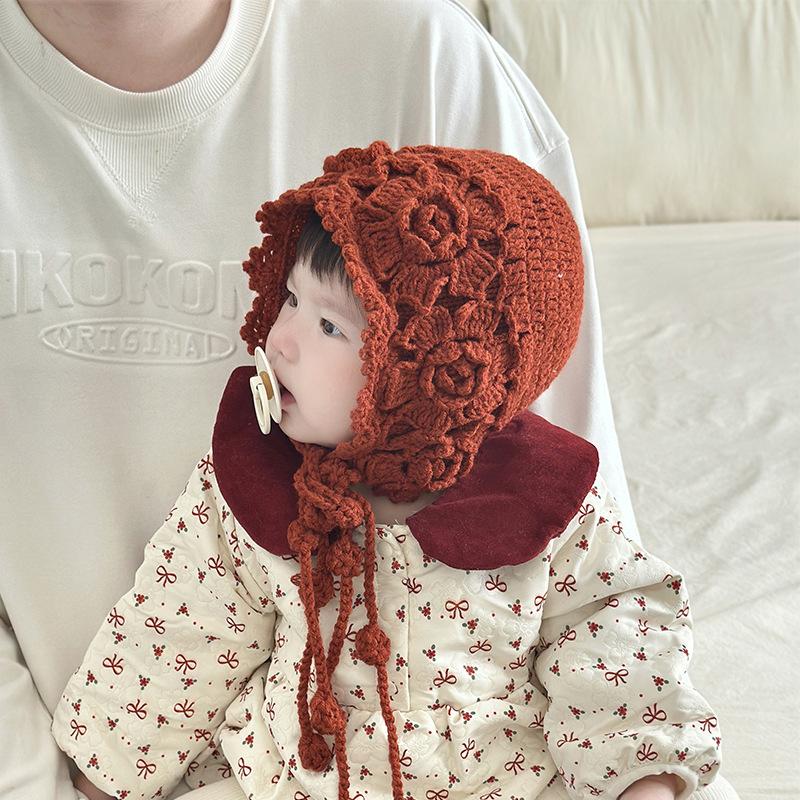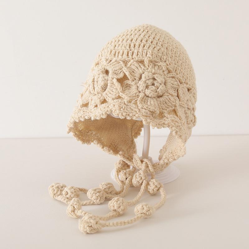 Gorro de lana para niños, otoño e invierno, bonito gorro coreano de punto a crochet, gorro de estilo occidental para niñas, gorro cálido con protección para las orejas.