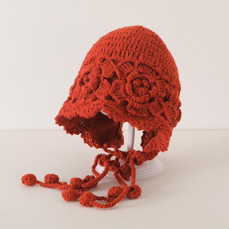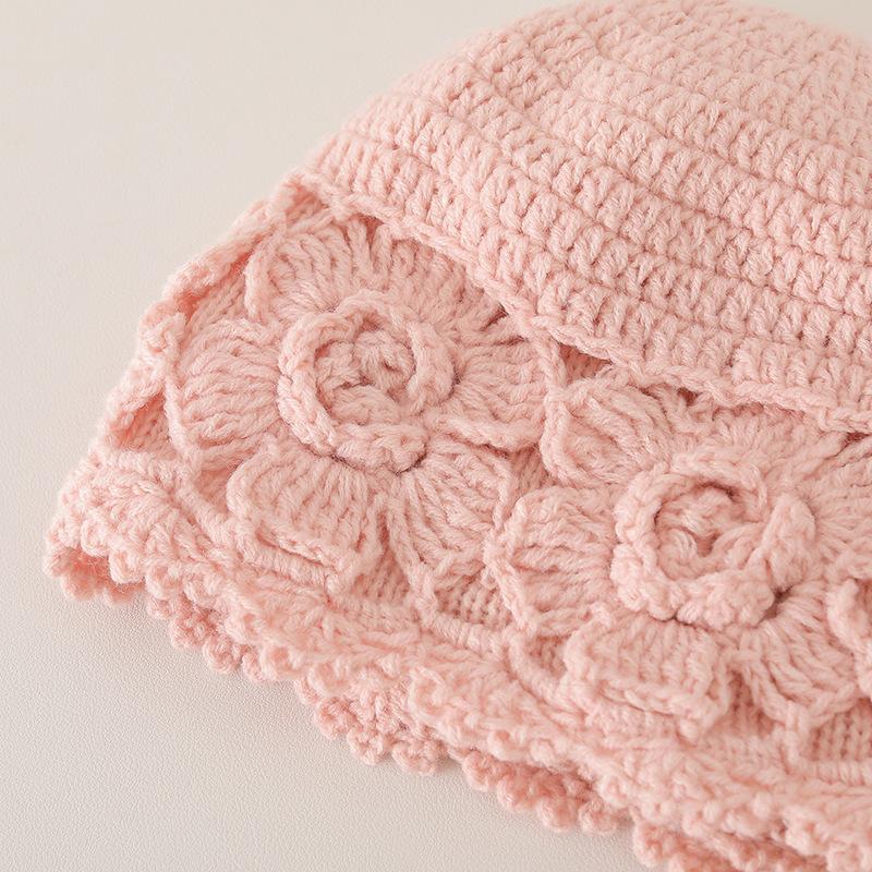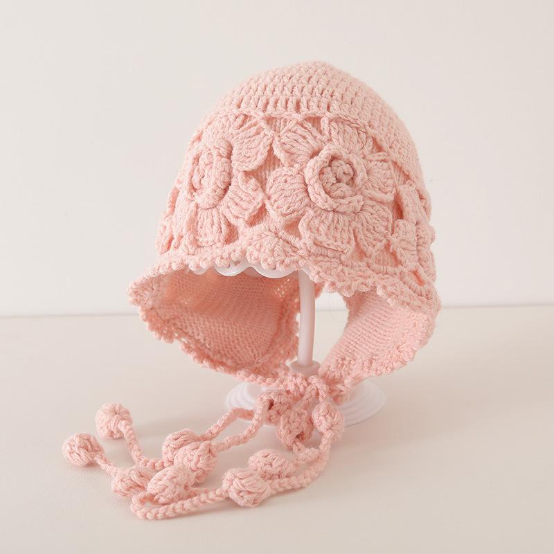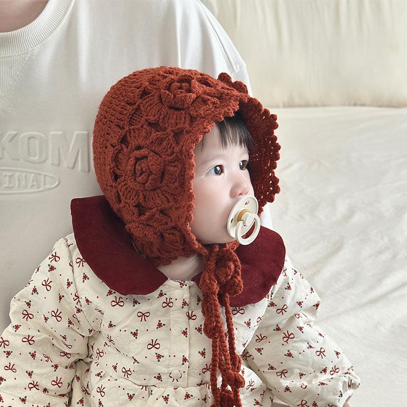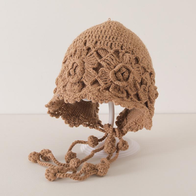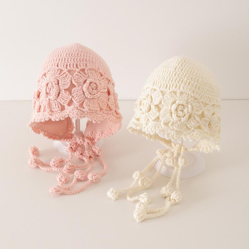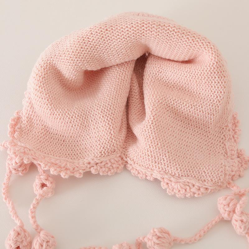 Gorro de lana para niños, otoño e invierno, bonito gorro coreano de punto a crochet, gorro de estilo occidental para niñas, gorro cálido con protección para las orejas.
