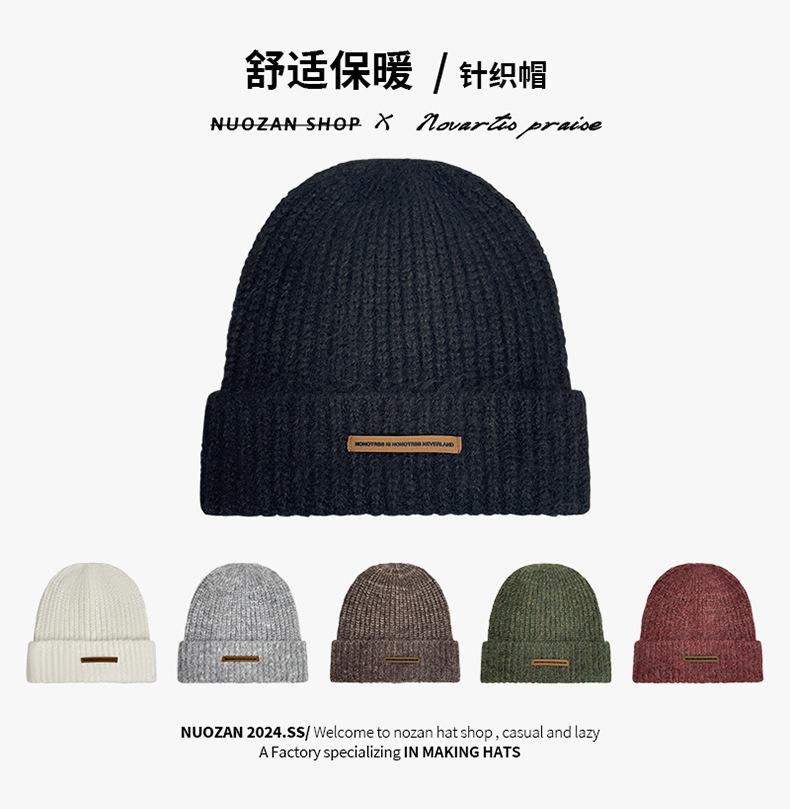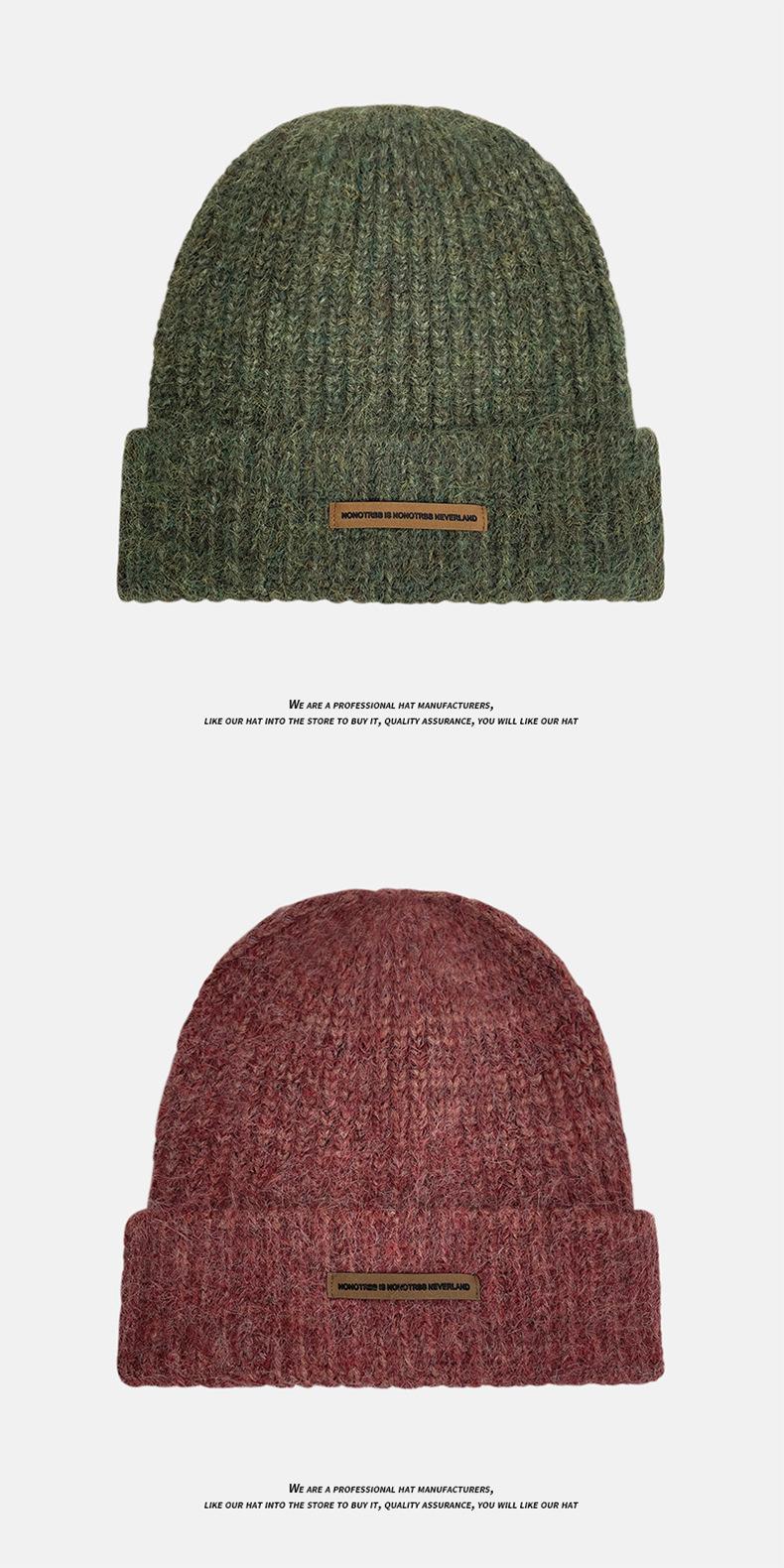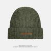 A- 609 black pu small label knitted hat, A- 609 white pu small label knitted hat, A- 609 Army Green pu small l...
