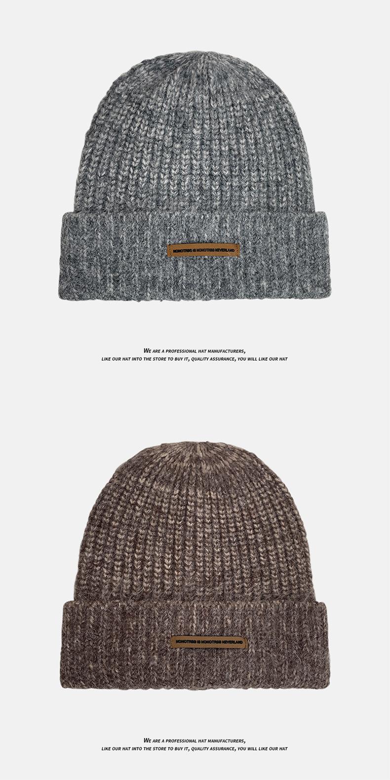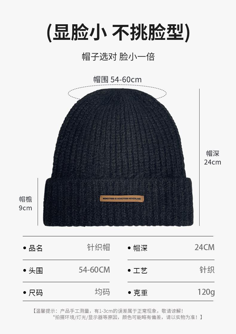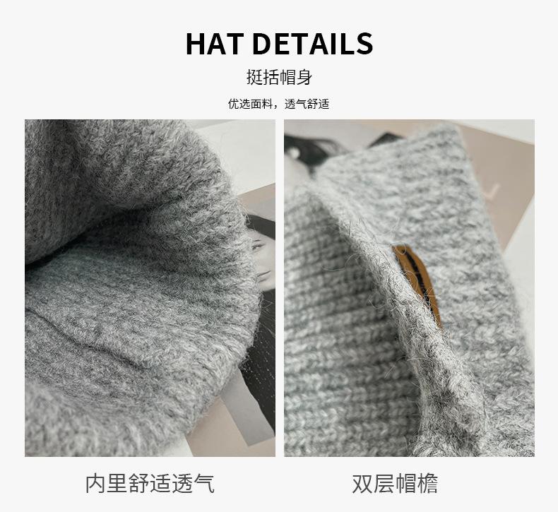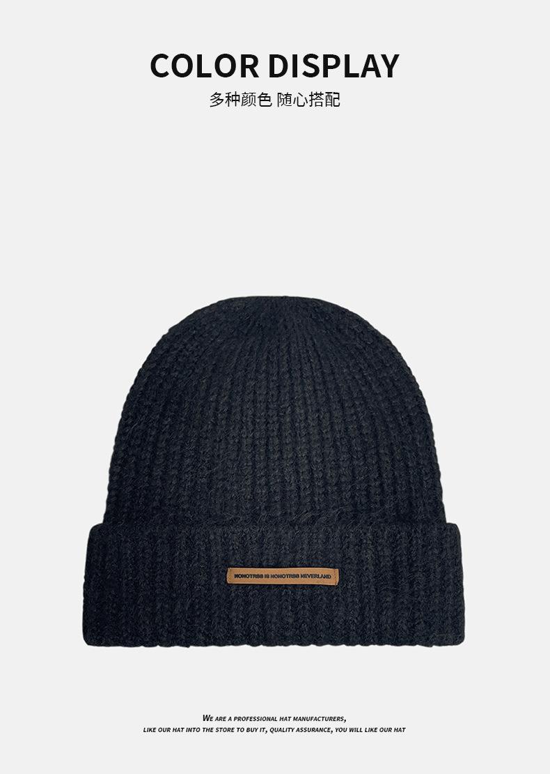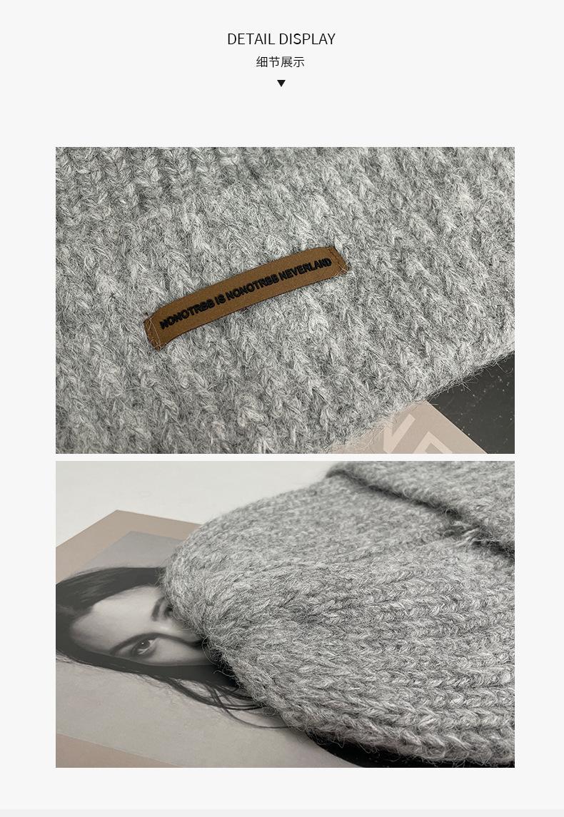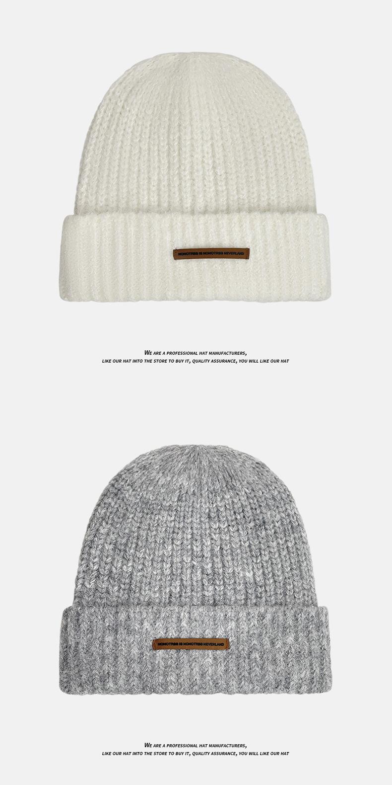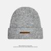 Sombrero de Lana de Otoño e Invierno Nuevo Simple PU Etiqueta Pequeña Letra Sombrero Tejido Versátil Casual Cálido Sombrero de Montón para el Frío para Mujer