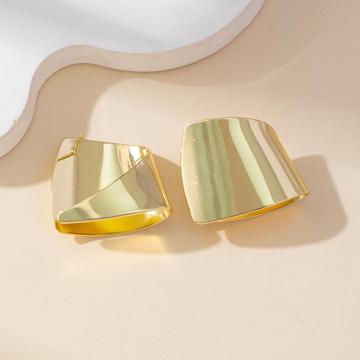Compra Pendientes de estilo europeo y americano con textura avanzada y geometría brillante exagerada para mujer, diseño de nicho cuadrado dorado, joyería para las orejas al por mayor en Joom.pro