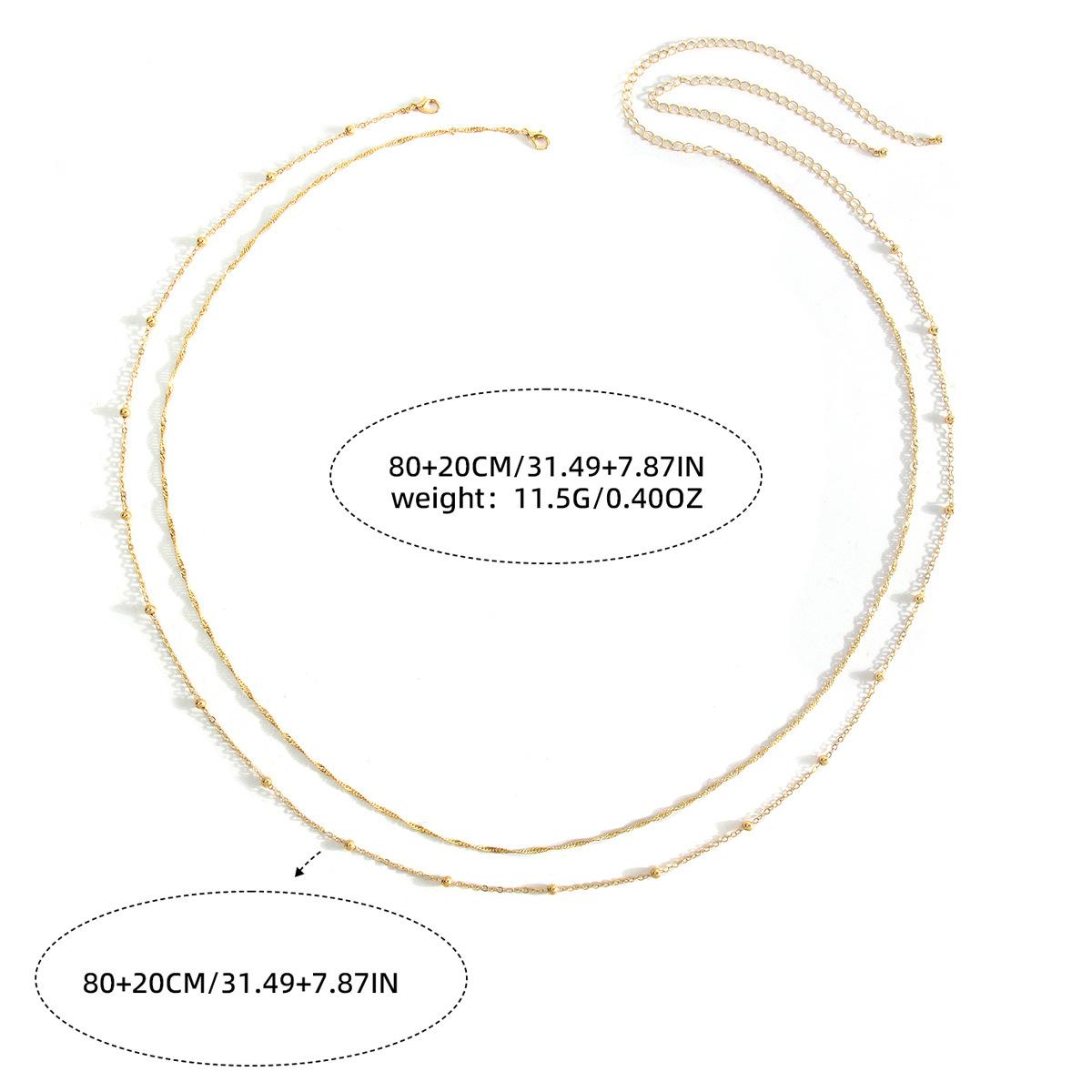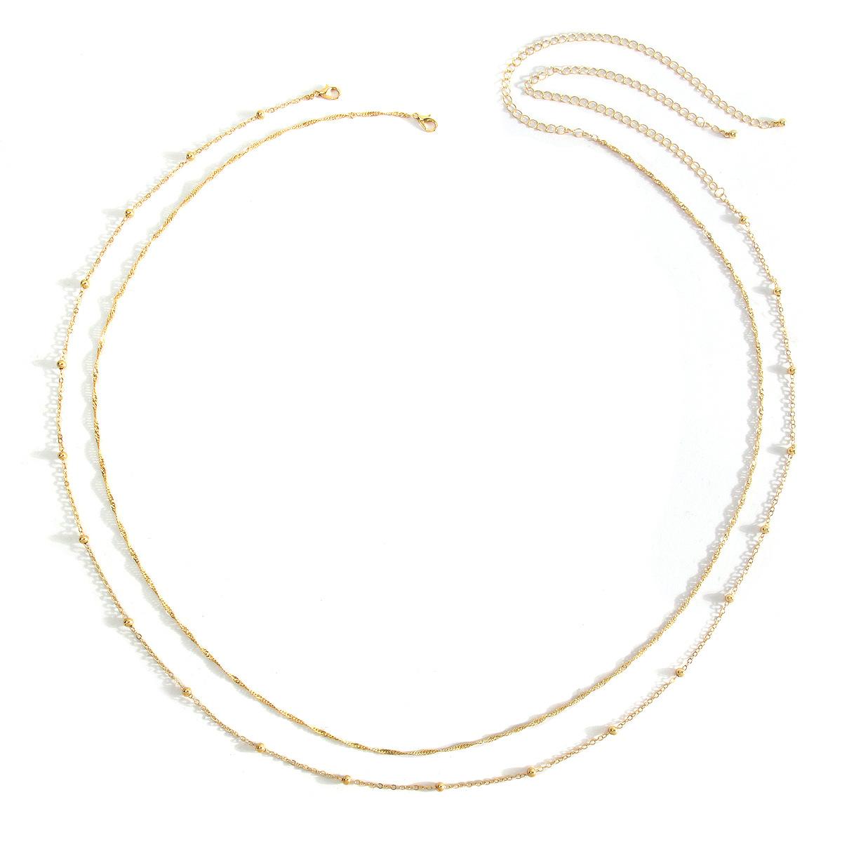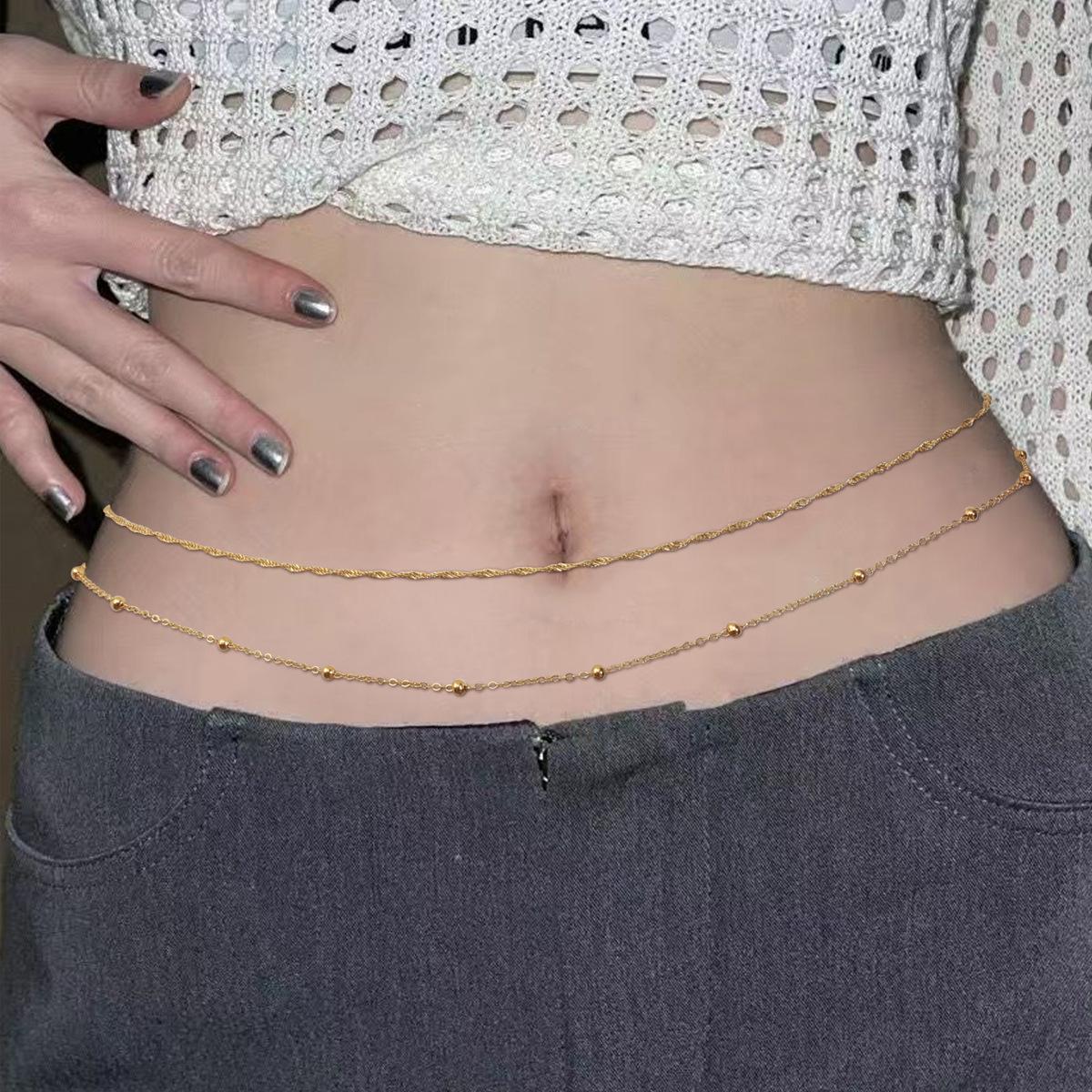 Cadena de cuentas redondas de moda transfronteriza europea y americana para mujer, cadena de cintura doble, cadena de metal, cadena corporal, cadena decorativa para el ombligo.