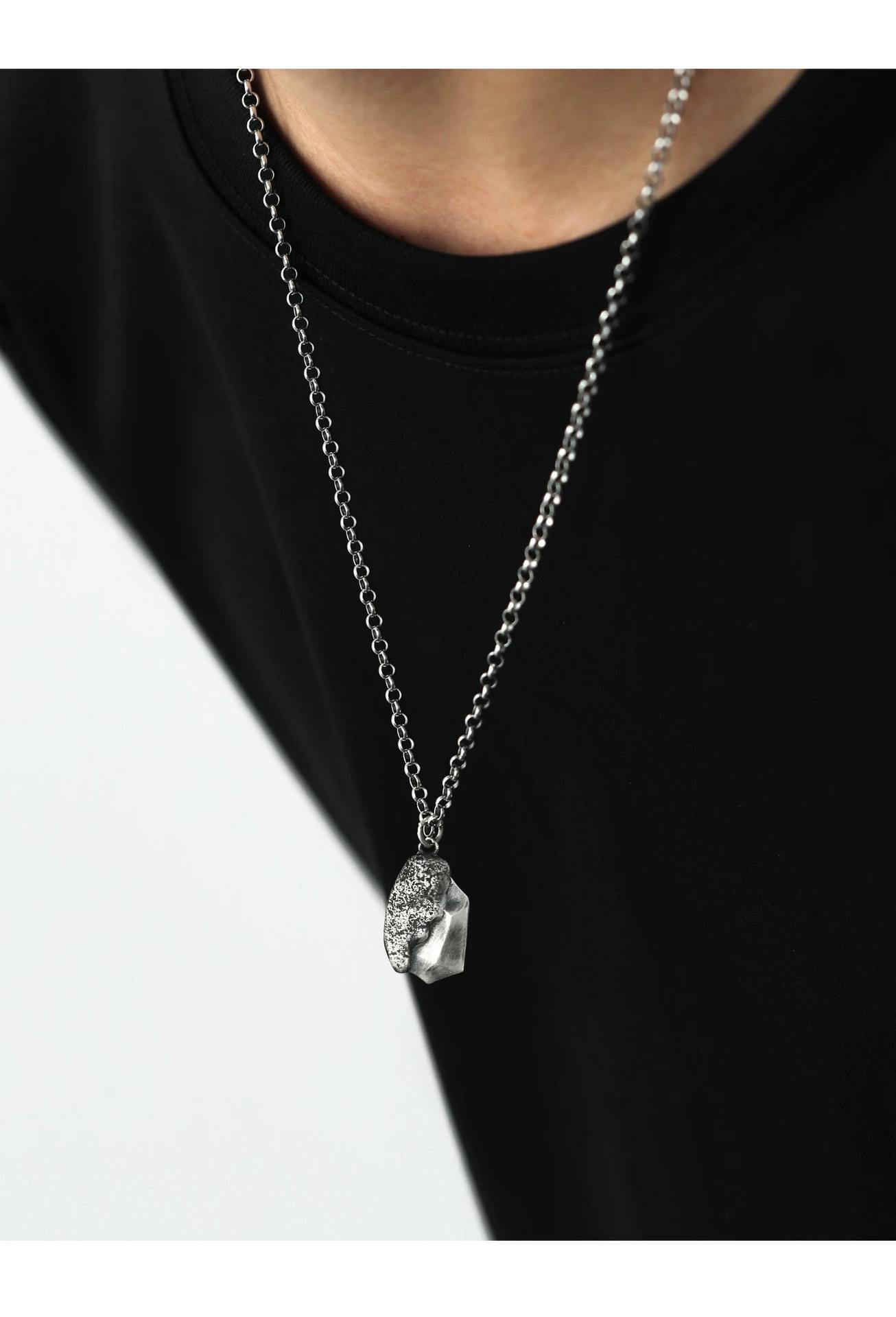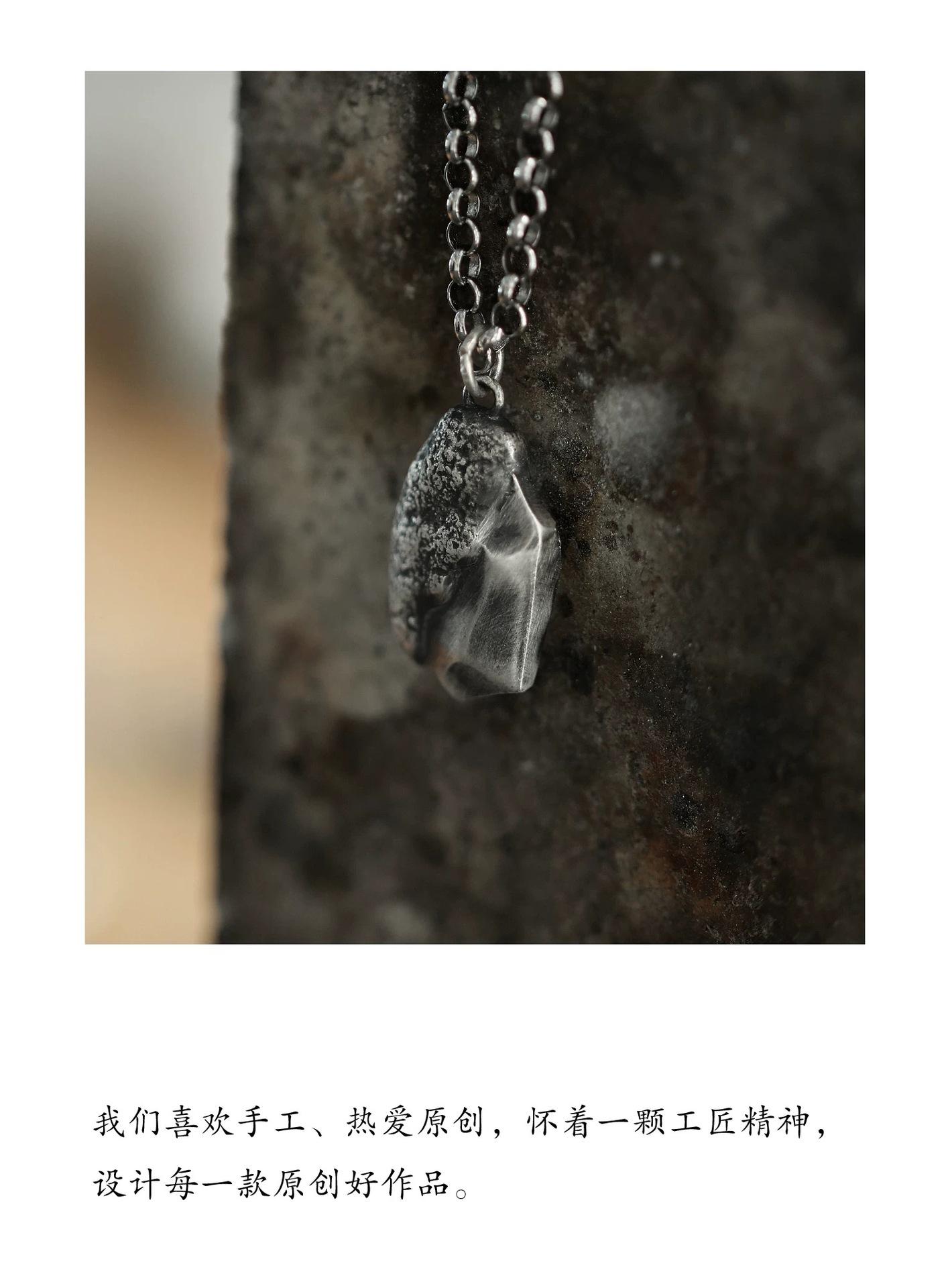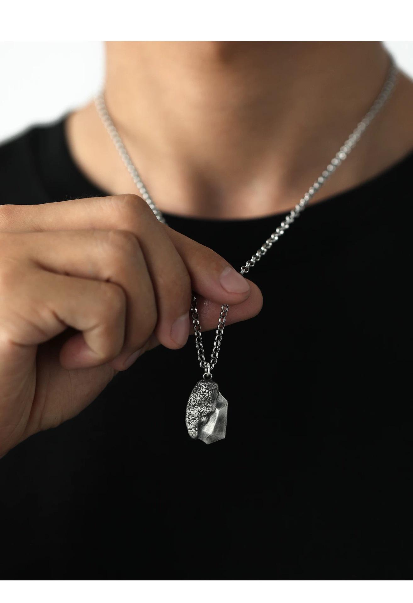 Colgante original de plata pura 999 con dos meteoritos rotos, collar de plata rota con dos meteoritos, marca de moda que combina con todo para hombre, colgante avanzado Ins