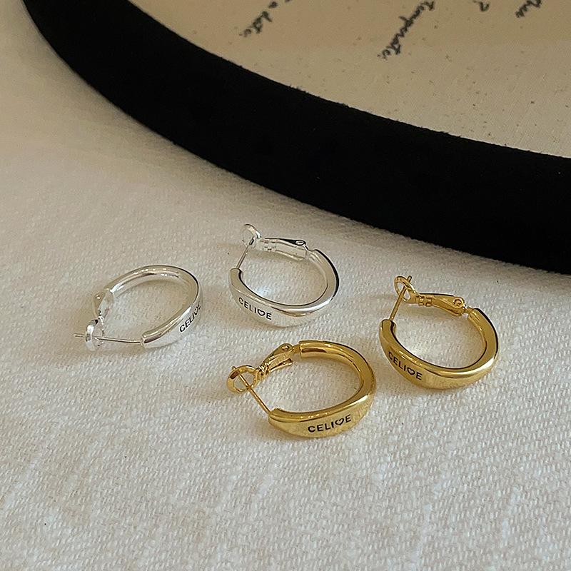 Aretes de Aro Liso con Letra Retro para Mujer, Diseño Simple y Nicho, Temperamento de Viaje a la Moda, Aretes y Pendientes Versátiles