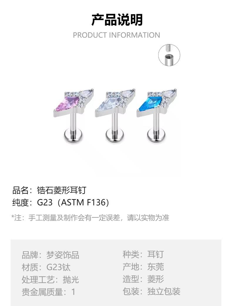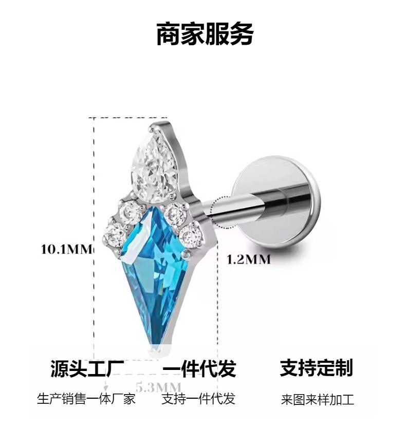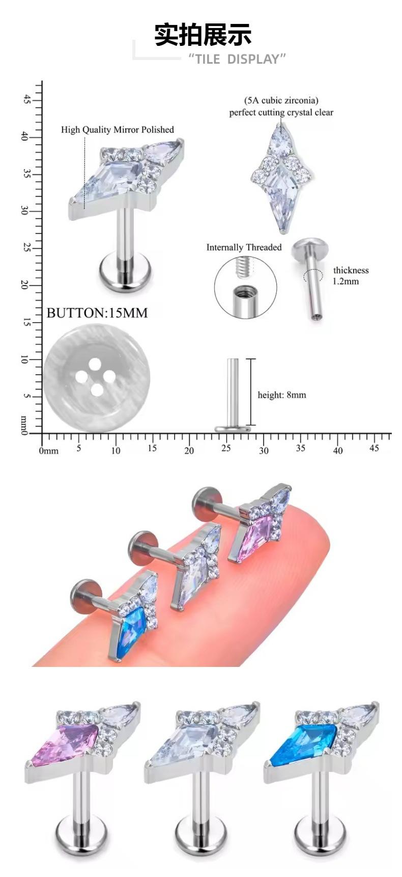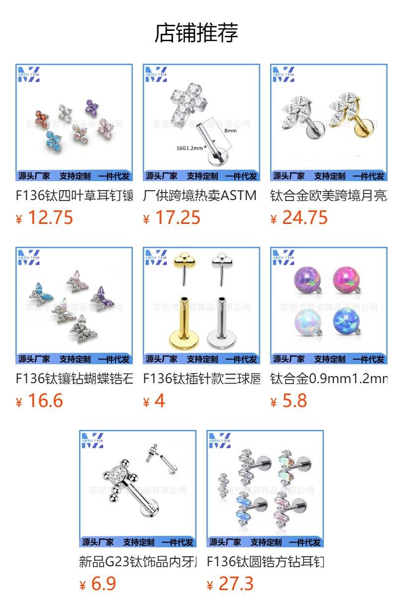 F136 titanio diamante circón clavo para hueso de oreja transfronterizo G23 aleación de titanio cuerpo humano perforación joyería hueso de oreja uña labio uña