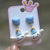 Estudiante Lindo Resina Conejo Brillante Gato Yugui Perro Dibujos Animados Clip para la Oreja Colgante de Flor Aretes Accesorios para Niña