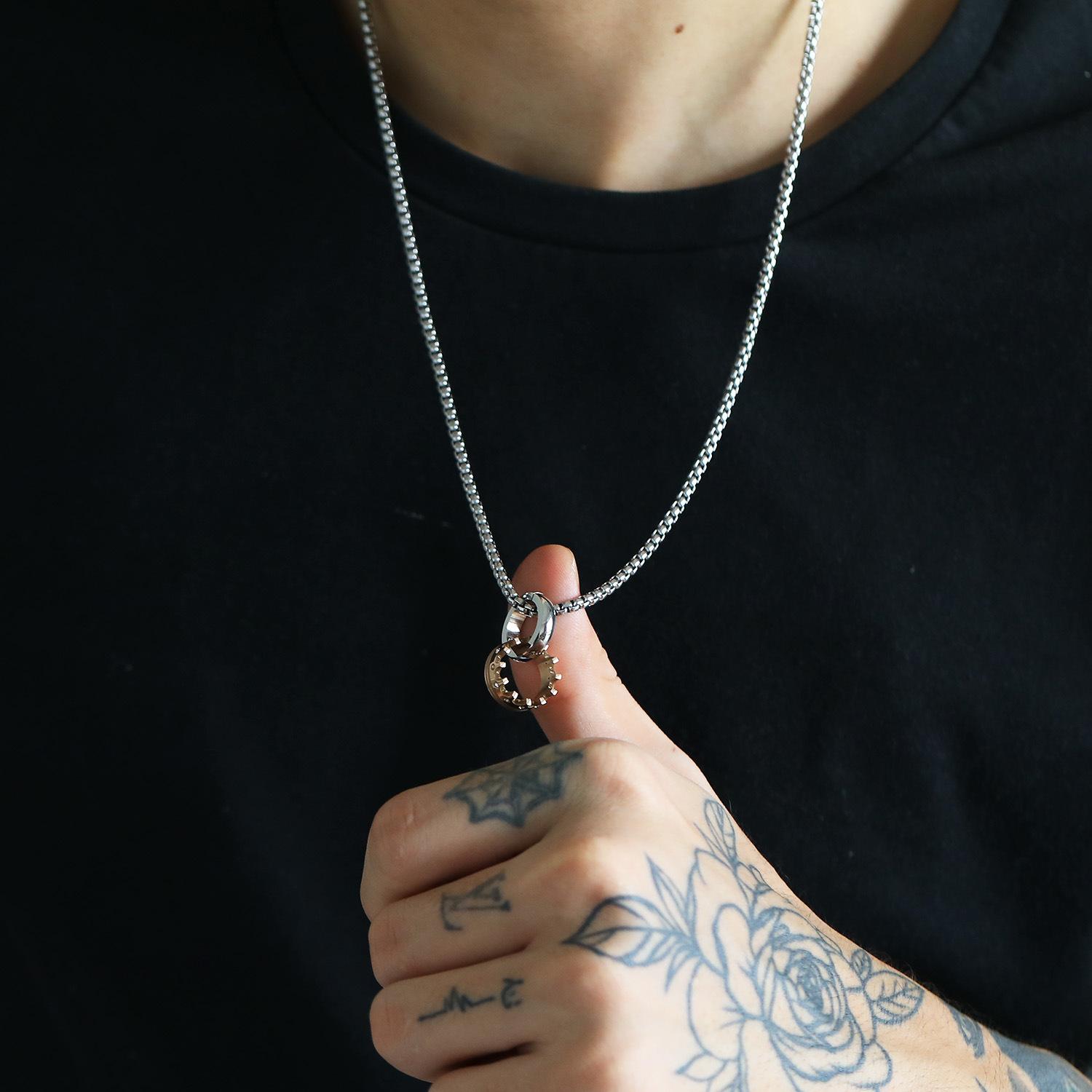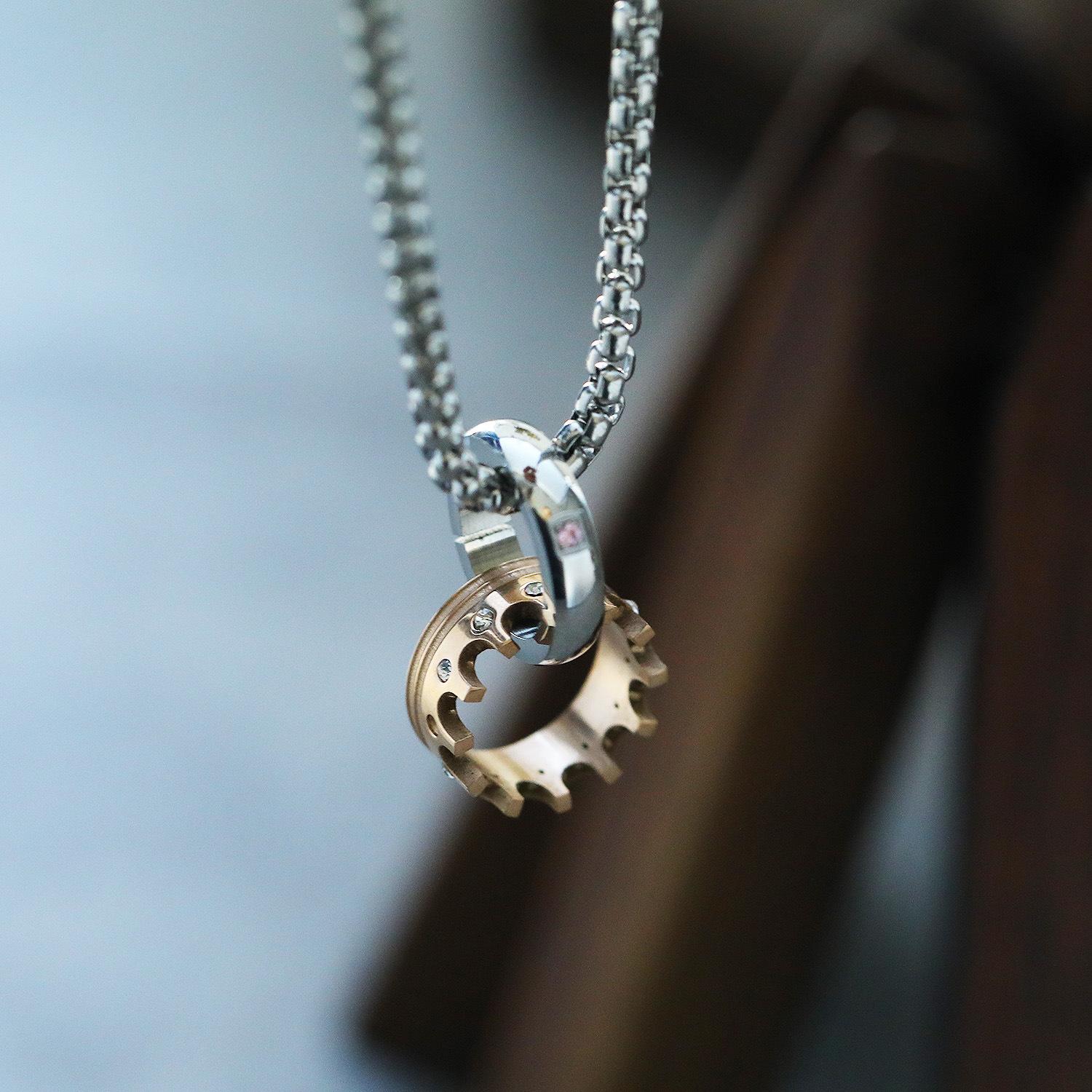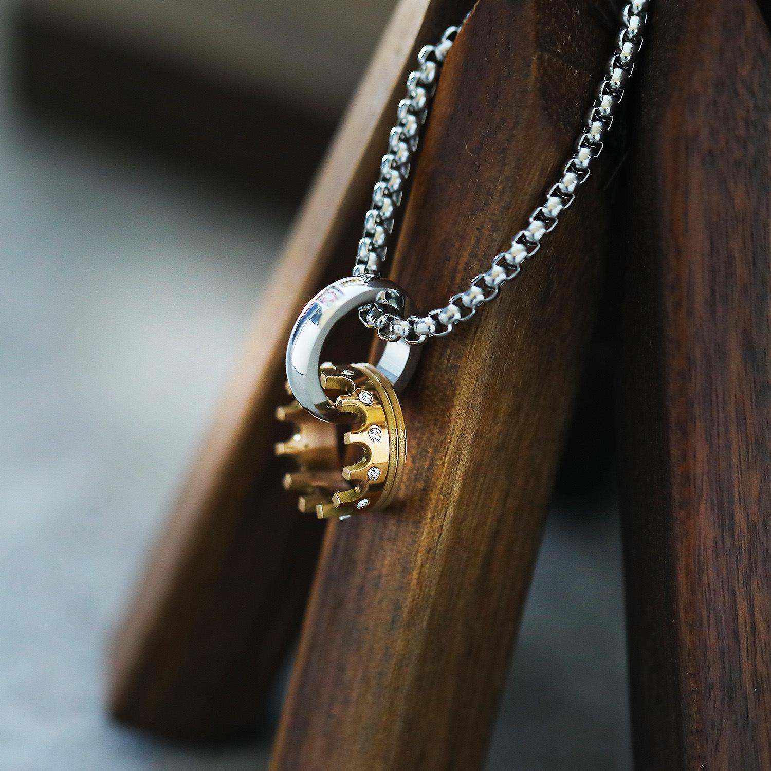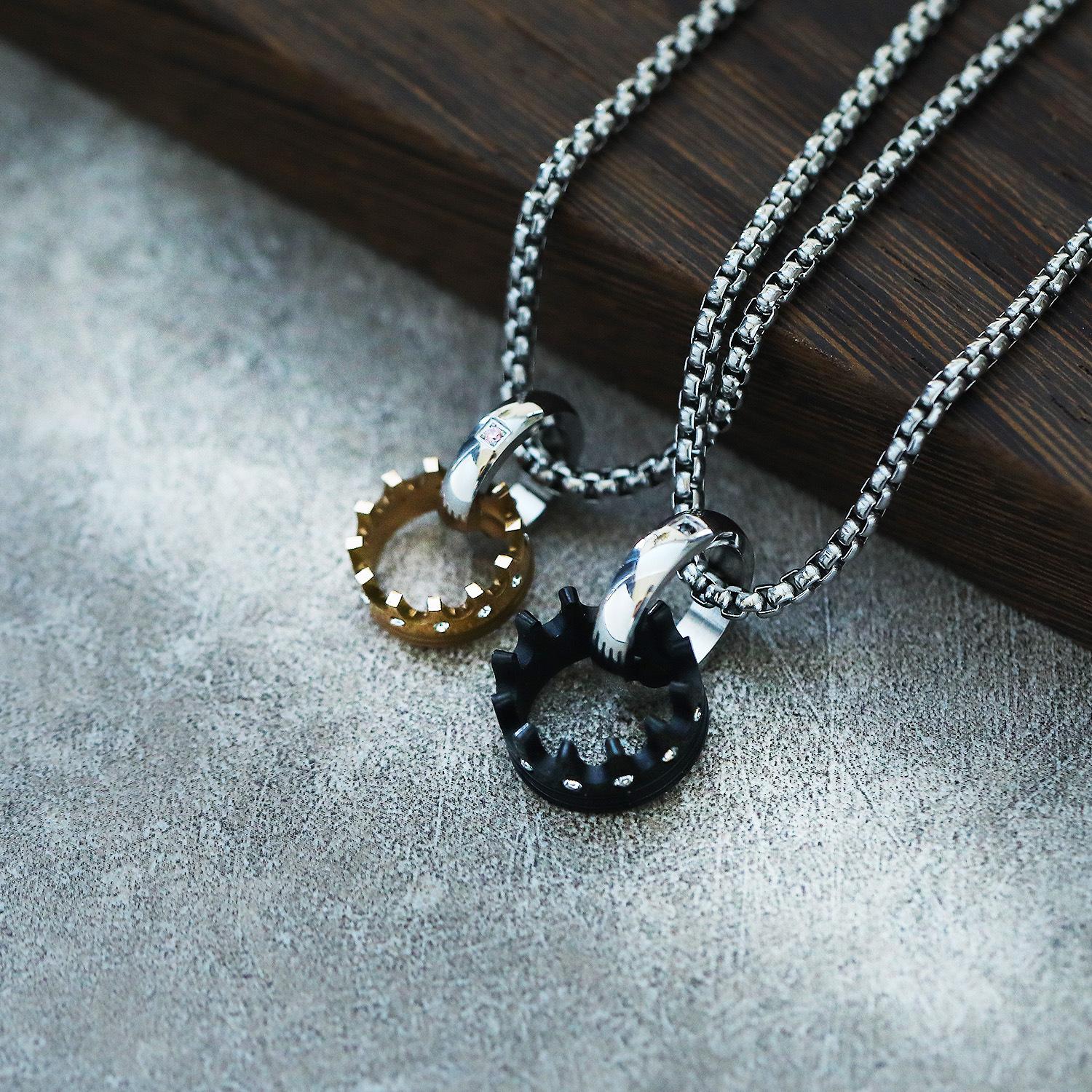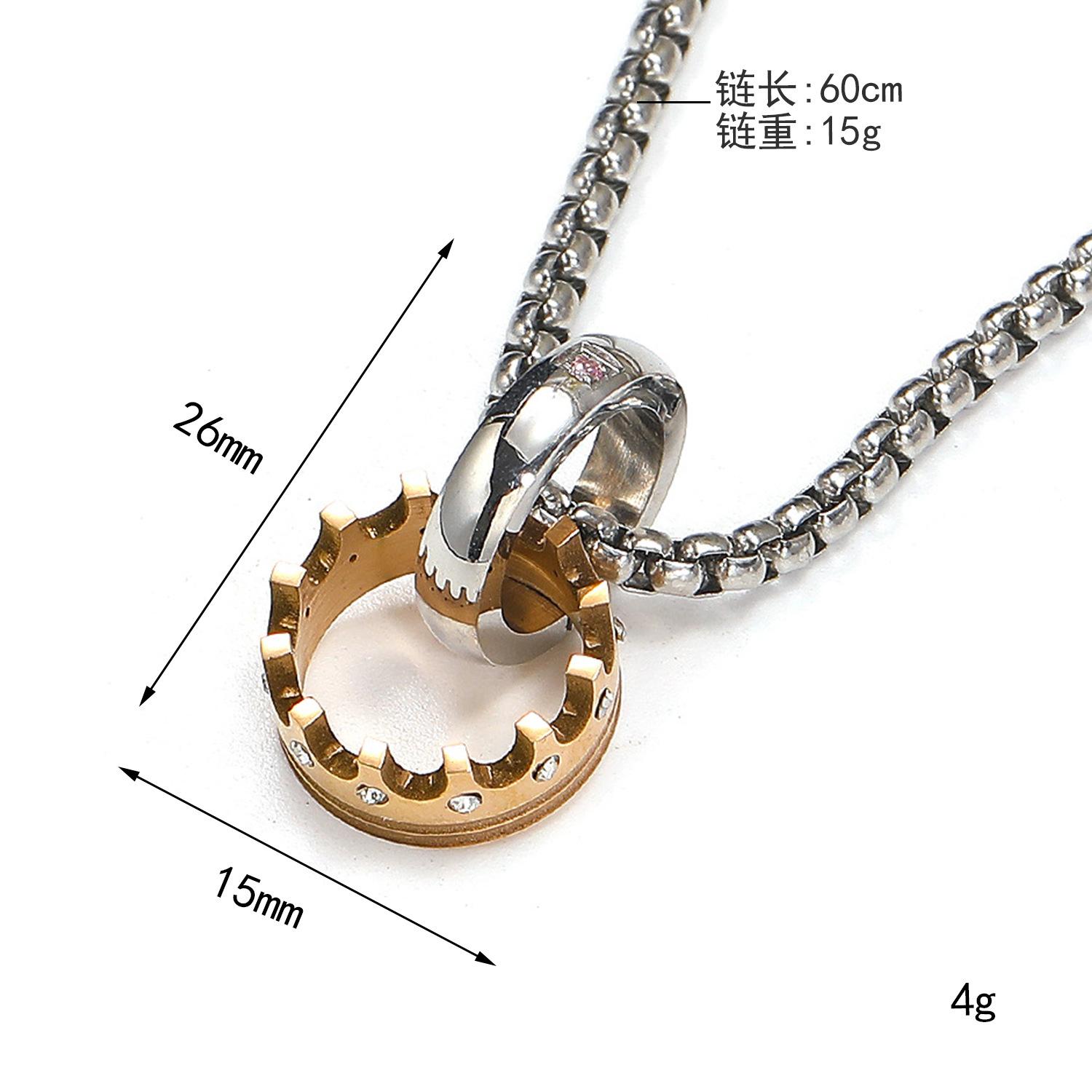 Compra Collar de acero de titanio con corona incrustada de diamantes de lujo de moda europea y americana, anillo doble, temperamento de anillo doble, colgante que combina con todo, venta directa al por mayor en Joom.pro