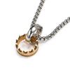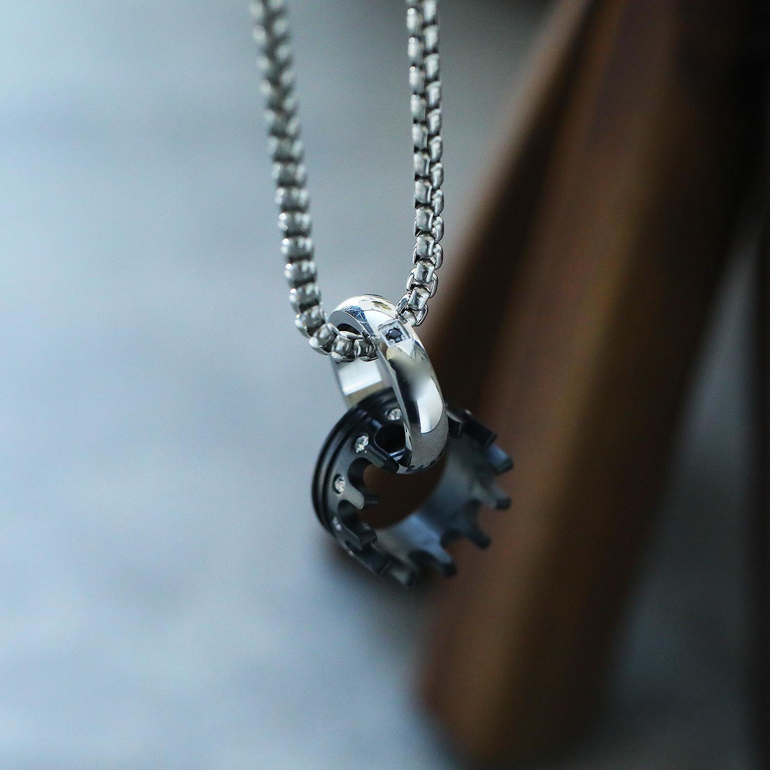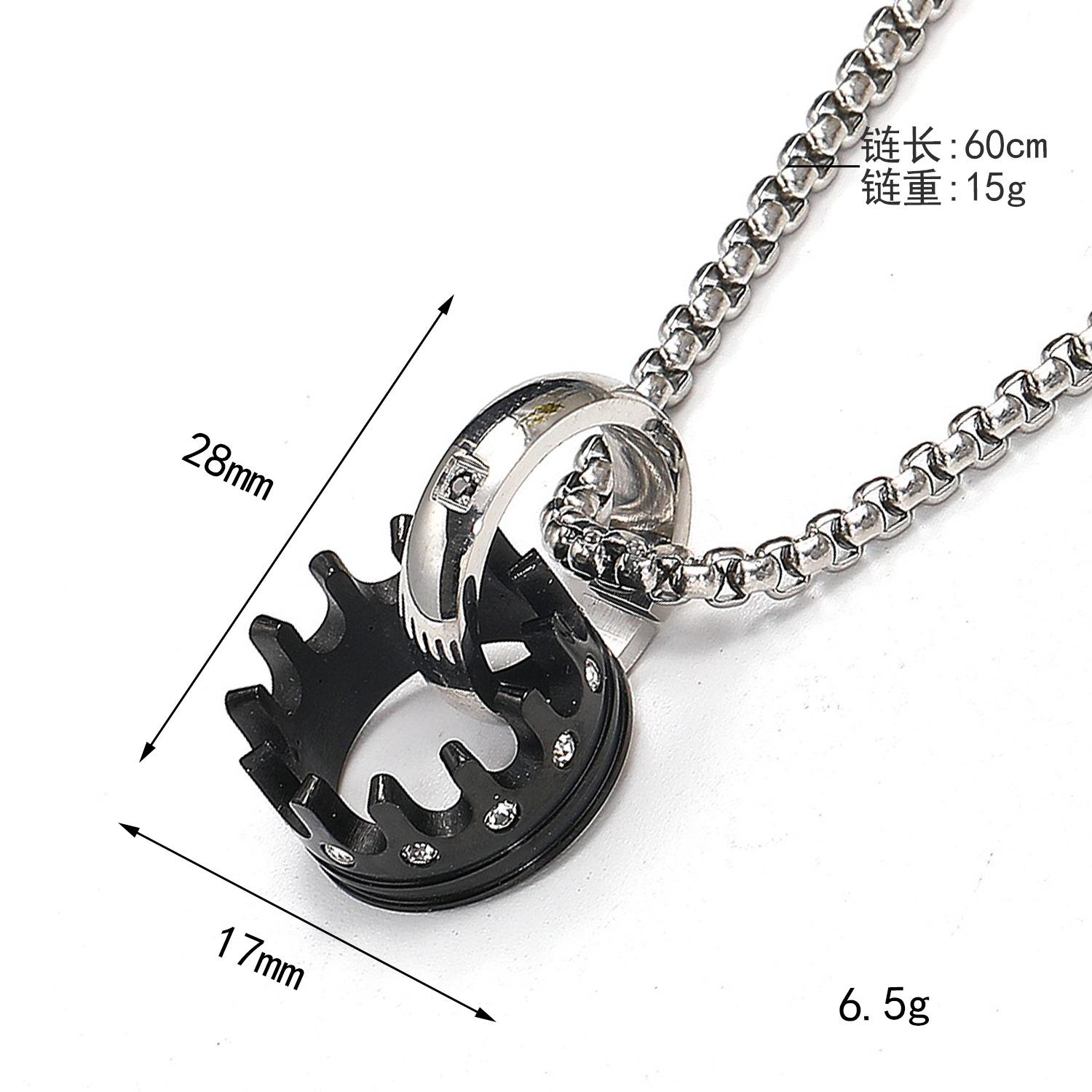 Collar de acero de titanio con corona incrustada de diamantes de lujo de moda europea y americana, anillo doble, temperamento de anillo doble, colgante que combina con todo, venta directa